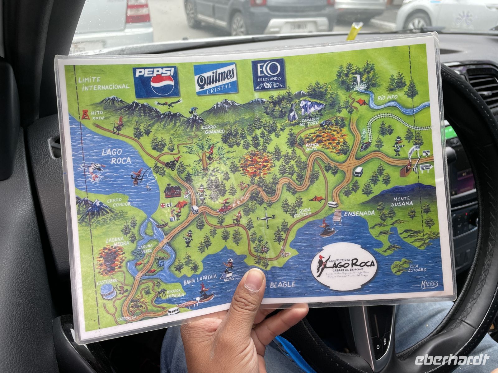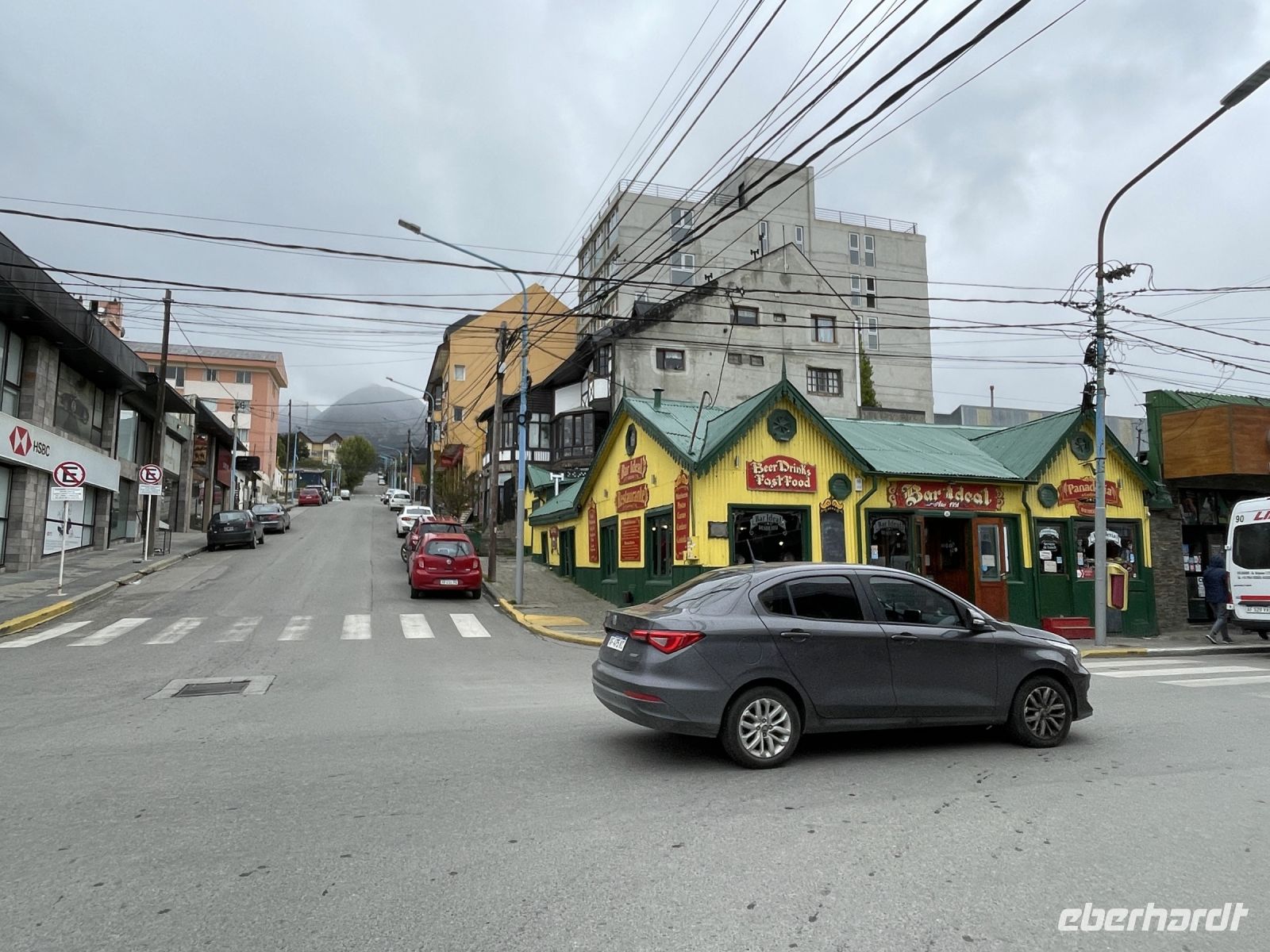Unser vierter Tag beginnt sehr früh am Morgen mit einem kleinen Frühstück und anschließender Fahrt zum Flughafen von Buenos Aires. Unsere Koffer mussten wir bereits einen Abend zuvor vor die Tür stellen und unsere Bordkarten erhielten wir bereits im Bus, weshalb der Check-in reibungslos verlief. Nach einem 3,5-stündigen Flug landen wir gegen 11 Uhr in Ushuaia. Dort angekommen unternehmen wir mit einer örtlichen Reiseleiterin eine kleine Orientierungsfahrt durch Ushuaia und halten dann nahe dem Hafen. Wir spazieren durch die Innenstadt, besuchen ein paar Souvenirshops und kehren dann zum Mittagessen in ein Restaurant ein. Nach ein paar Stunden treffen wir uns alle wieder, um auf das Schiff zu gehen. Auch hier läuft der Check-in reibungslos und ohne Warten ab. Wir steigen über die Gangway auf Deck4 ins Schiff ein, zeigen unseren Reisepass, lächeln in die Kamera und schon erhalten wir unsere Kabinenkarte. Wir bringen unser Handgepäck auf die Kabinen und nehmen unsere Koffer vor der Kabinentür in Empfang. Nach etwas Freizeit, probieren wir auf Deck 5 gleich unsere roten Explorerjacken an, die wir vor Hurtigruten geschenkt bekommen.