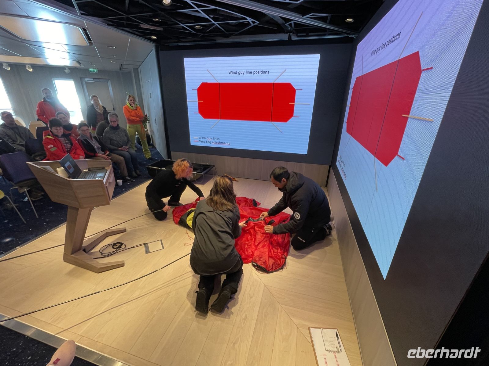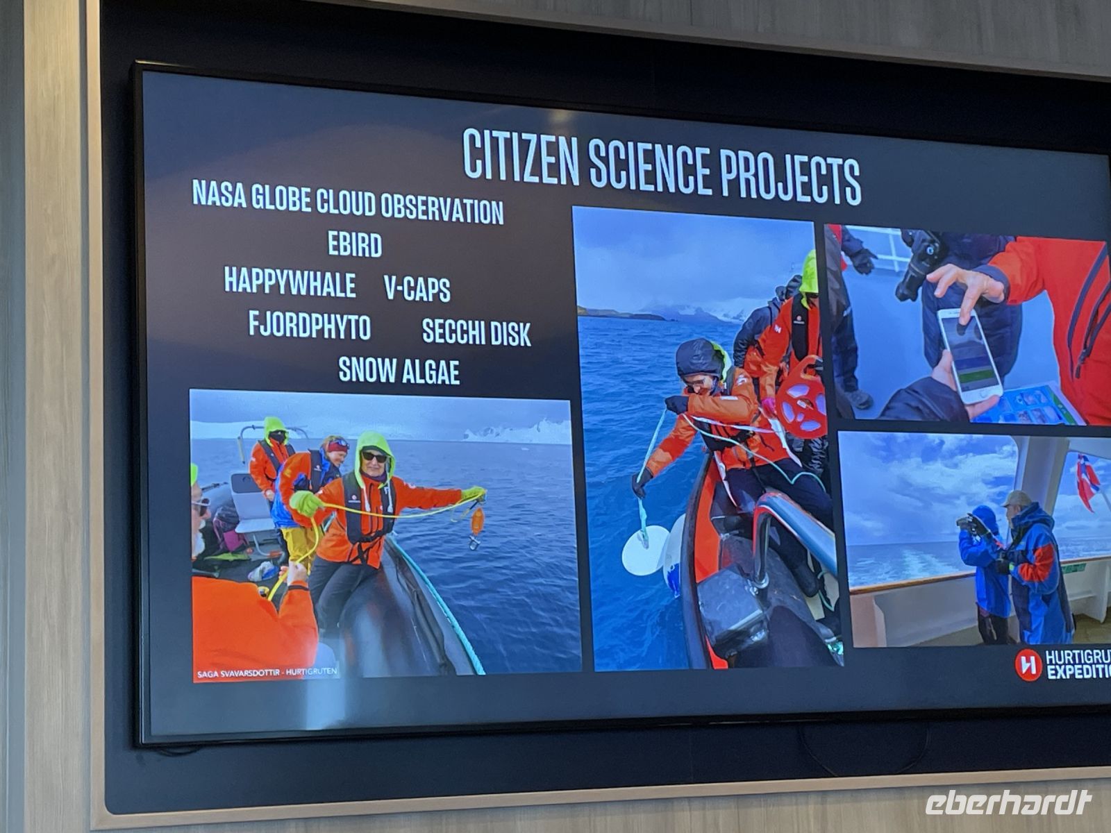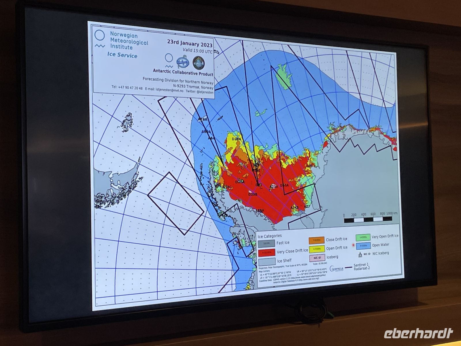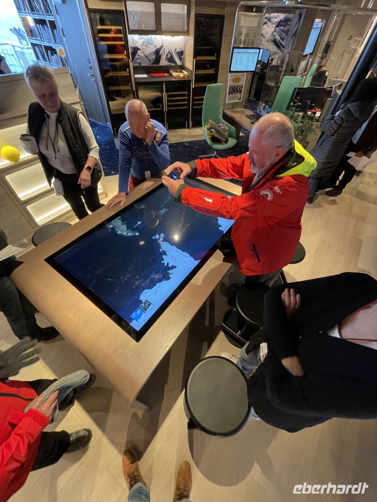 Anschließend werden wir beim verpflichtenden IAATO Briefing auf Deck 6 im Science Center über die Verhaltensregeln bei den Landgängen in der Antarktis aufgeklärt. Die Organisation IAATO, legt die Richtlinien für Reisen in die Antarktis fest. Jeder Reisegast muss sogar dafür unterschreiben, dass er beim Briefing gewesen ist. Danach werden wir bei weiteren Infoveranstaltungen über die Zusatzausflüge und die nächsten Tage in der Antarktis aufgeklärt.