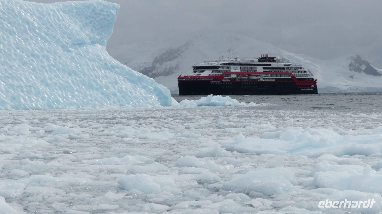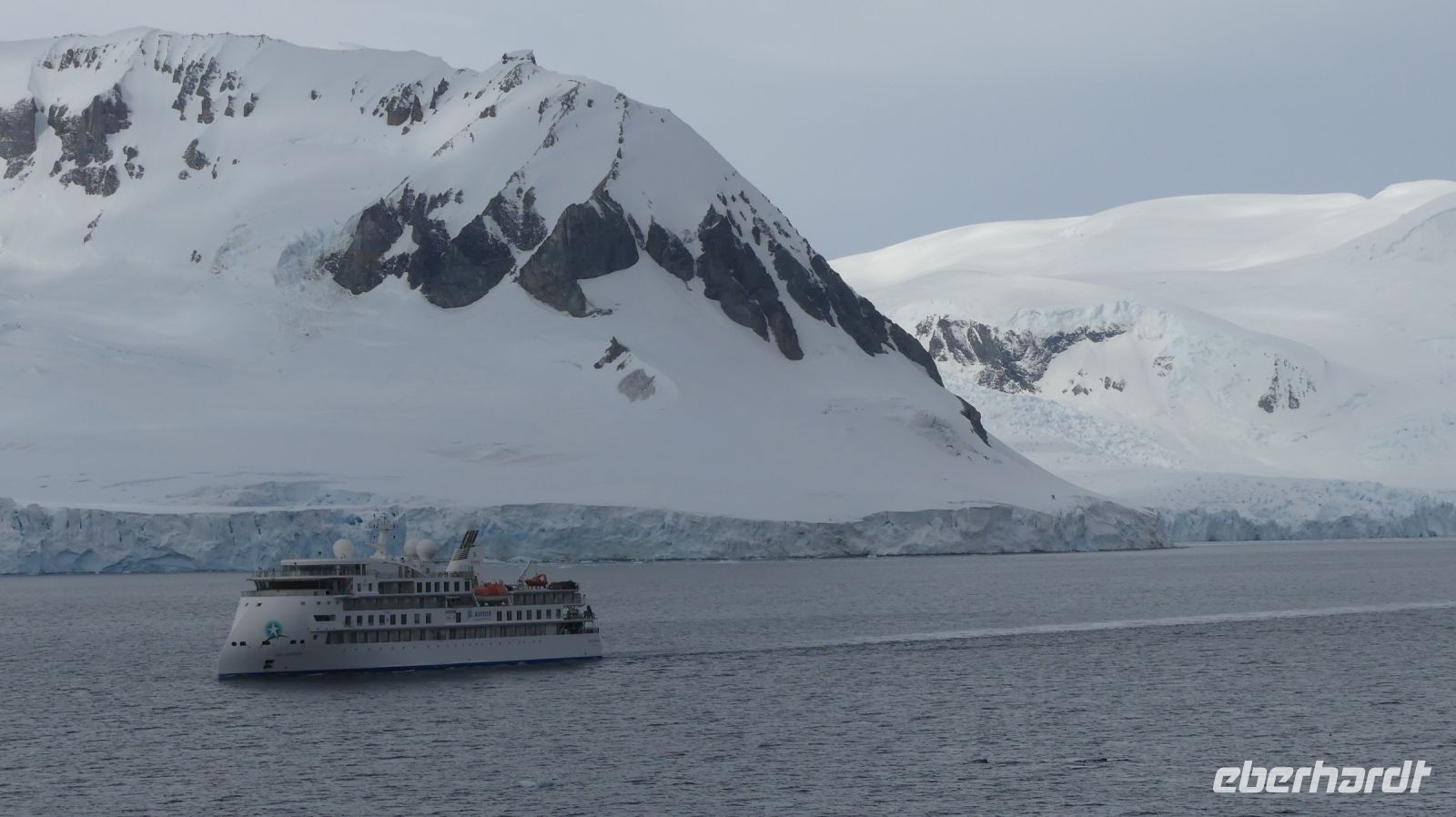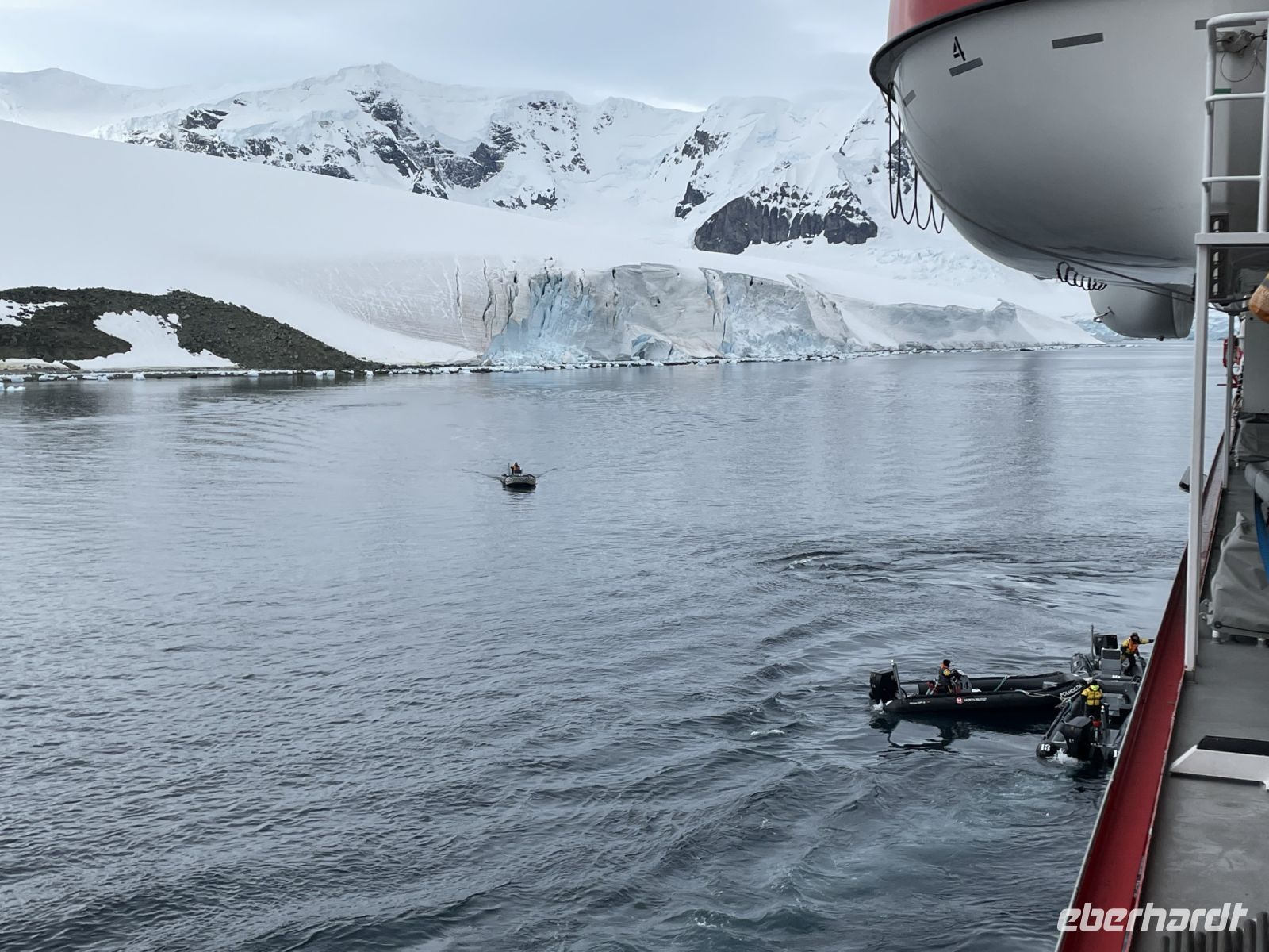 Heute ist es endlich soweit und wir sehen bereits früh die ersten Eisberge und gigantischen Gletscher an uns vorbeiziehen. Ursprünglich war eine Anlandung in Orne Bay geplant, doch dies ist aufgrund von starker Vereisung an der Anlandungsstelle nicht möglich. Zum Glück gibt es immer einen Plan B, C oder D. ;-)