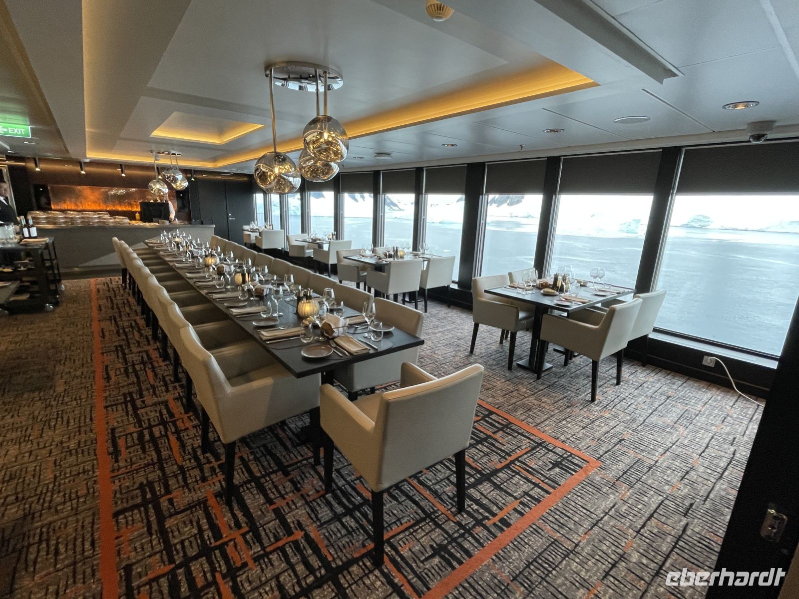 Nach dem Mittagessen können wir uns für die Zusatzausflüge wie Kajakfahren, Eis ÜN und Fahrten mit Wissenschaftsbooten anmelden. Wir erhalten noch weitere Informationen über Bürgerwissenschaftsprojekte in der Antarktis und sitzen nach dem Abendessen gemütlich in der Explorer Lounge zusammen. Beim heutigen Kapitänsempfang werden wir von Hurtigruten auf ein Glas Sekt eingeladen und die Crew stellt sich zusammen mit dem Expeditionsteam vor.