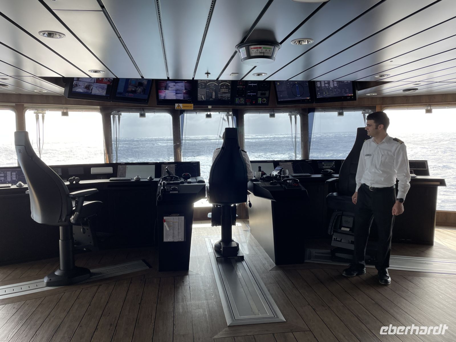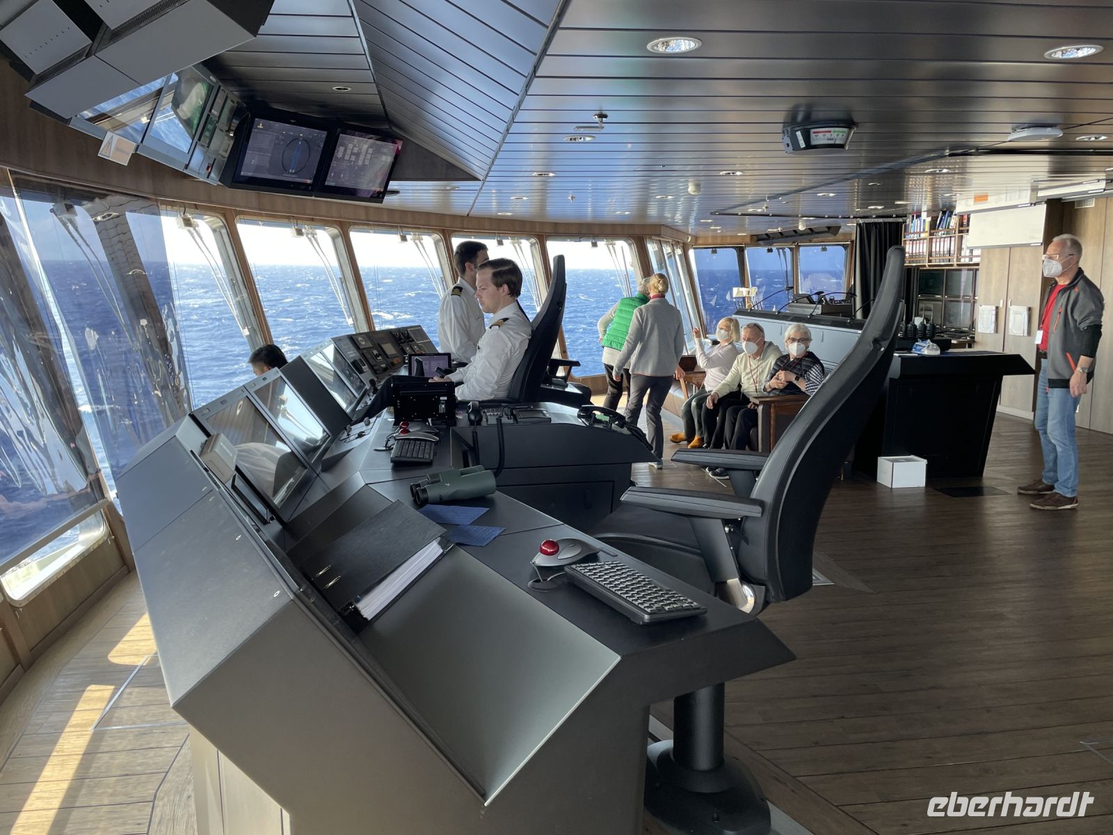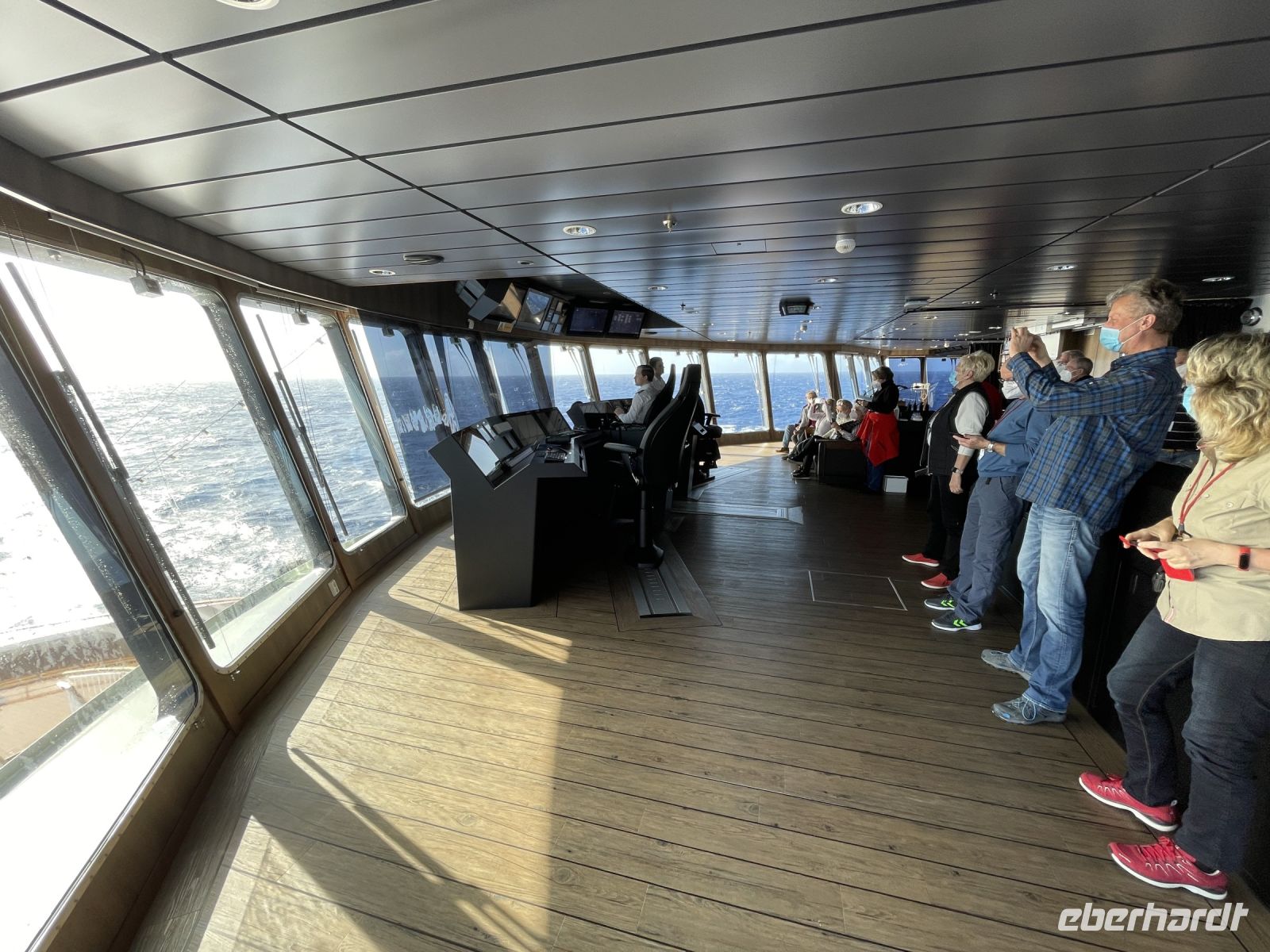 Am Sonntag geben wir unsere Kajak-Ausrüstung zurück und besuchen nach dem Mittagessen die Brücke und lernen das Herzstück des Schiffes kennen. Eine Führung auf der Brücke ist nur bei sehr wenigen Reedereien möglich, deshalb sind wir alle begeistert. Wir erhalten einige kurze Informationen über die Technik und die Arbeit auf der Brücke. Bevor wir unser Abendessen im Aune Restaurant wieder treffen, können wir noch an weiteren interessanten Vorträgen teilnehmen. Bei einem Cocktail lassen wir in der Explorer Lounge die Reise noch einmal Revue passieren.