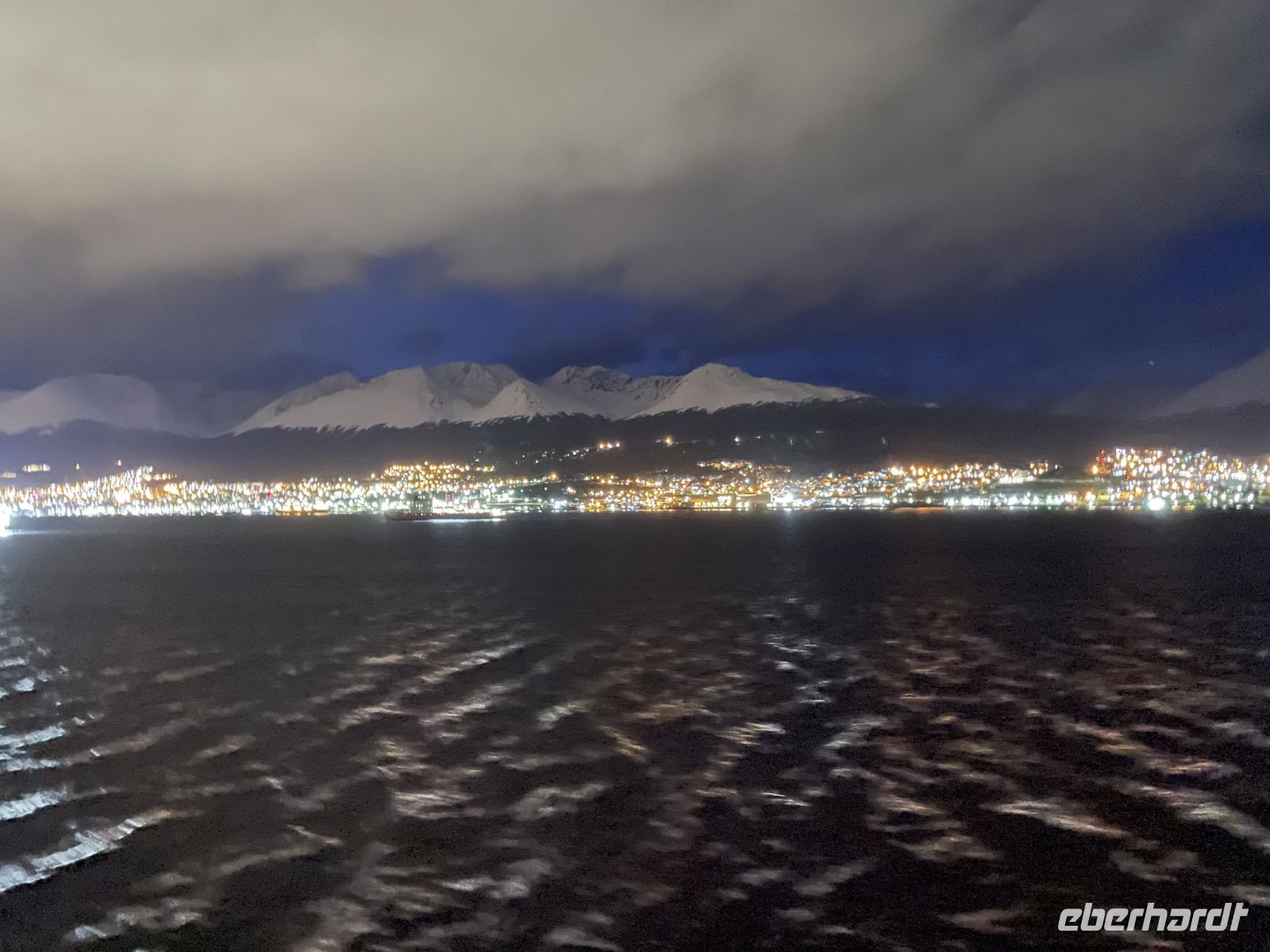 Nach dem Abendessen müssen wir schon unsere Koffer vor die Tür stellen und zum Abschluss schauen wir uns noch meine gedrehten Videos von der Reise im Science Center an. Dann erreichen wir gegen 21:30Uhr den Hafen von Ushuaia. Wir verbringen die letzte Nacht auf dem Schiff und wer will der kann heute Abend sogar nochmal an Land gehen.