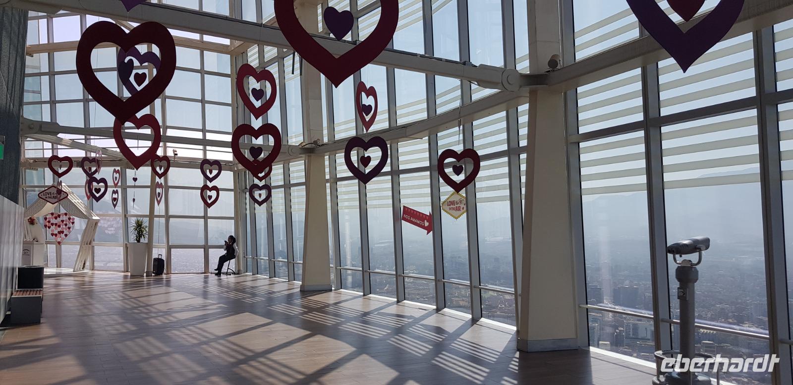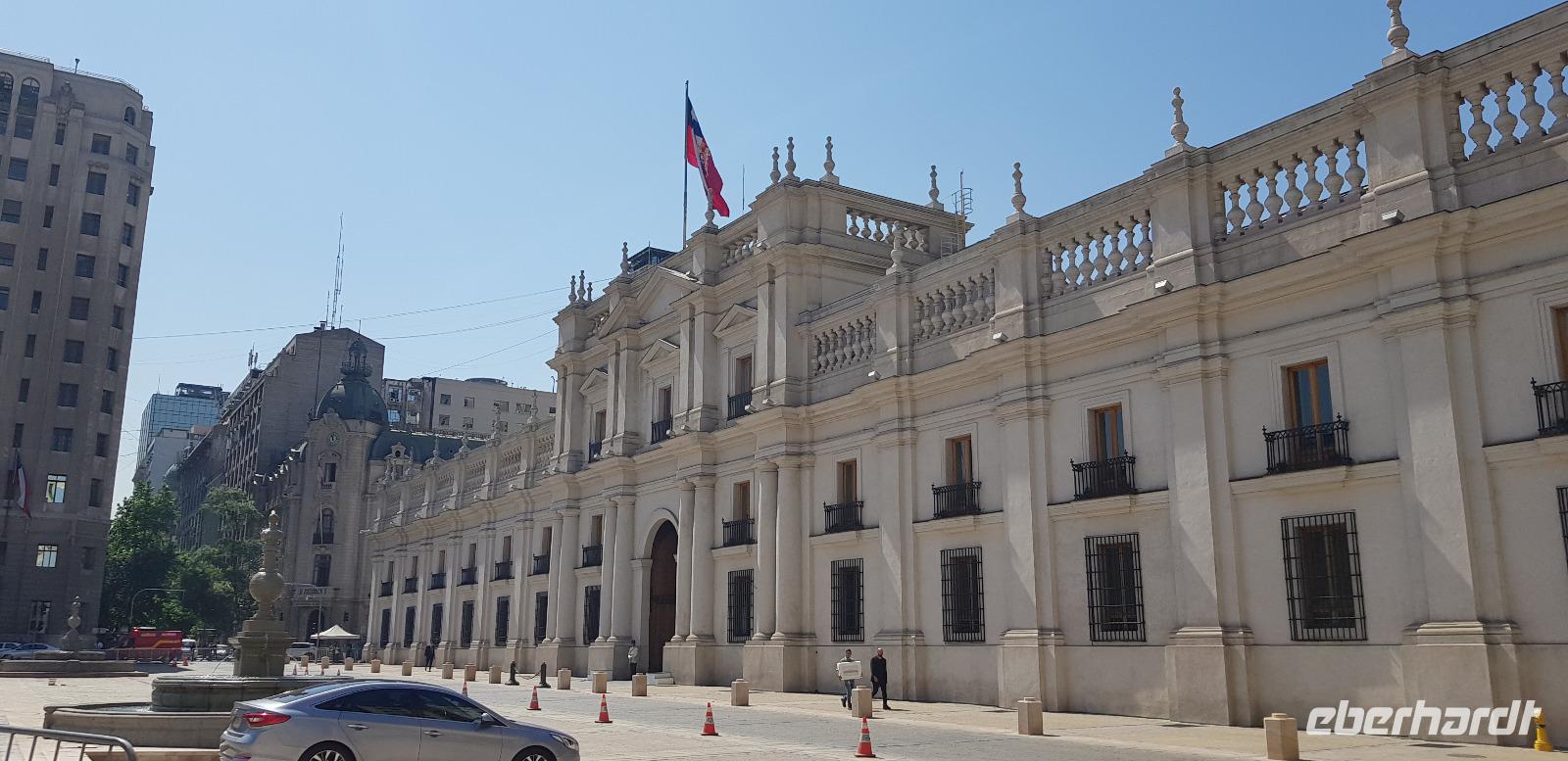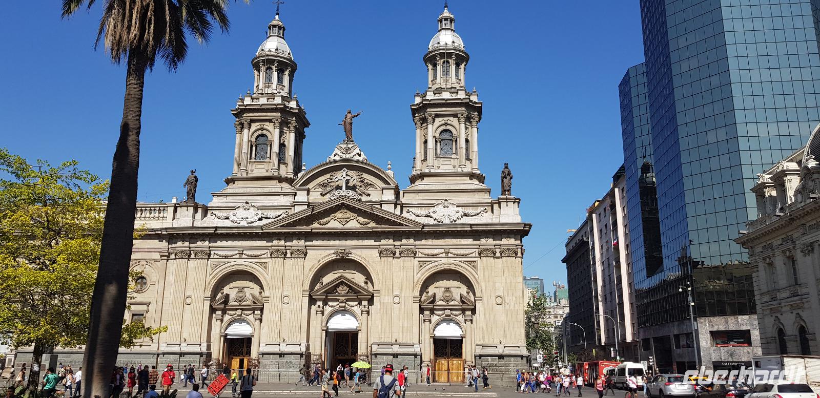 Nach einem recht angenehmen Flug landen wir pünktlich in der Hauptstadt Santiago de Chile. Nach der Gangway sammeln wir uns und gehen gemeinsam die langen Gänge zur Einreisekontrolle, zum Kofferband und schließlich zur Zollkontrolle, wo wir etwa eine Stunde lang anstehen müssen. Danach nimmt uns unsere Reiseleiterin Jana in Empfang. Wiedersehen macht Freude... erst im November 2019 war ich ihm Rahmen einer Weltreise in Santiago de Chile und hatte die Ehre mit Reiseleiterin Jana.Nach einer halbstündigen Fahrt erreichen wir das Stadtzentrum und den „Mercado Central de Santiago" eine Markthalle, mit dem hervorragenden Restaurant „El Galeon", wo wir erst einmal eine ausgiebige Mittagspause einlegen.Nach einem leckeren 3 Gänge Menü, geht es nun gut gestärkt auf eine kleine Stadtrundfahrt.Zuerst besuchen wir den Plaza de Armas - dem Hauptplatz des historischen Stadtzentrums, die Kathedrale von Santiago und „La Moneda" den alten Regierungspalast. Hier kam es im Jahr 1973 zum tödlichen Bombenangriff von Pinochet auf Salvador Allende.Weiter geht es zum Berg „San Cristobal", wo wir mit einer Gondelbahn hinauf fahren und von knapp 700m Höhen über die ganze Stadt blicken.Die Sicht ist heute einfach klasse, wir sehen selbst die gigantischen und weißen Bergketten der Anden am Horizont. Hinunter fahren wir dann mit einer alten Standseilbahn.Gegen 17Uhr erreichen wir dann schließlich unser schickes 4 Sterne Hotel „InterContinental" im Herzen des modernen Stadtviertels Vitacura. Nach dem Check-in sind alle sehr müde, weshalb sich die meisten für eine zeitige Nachtruhe entscheiden.Nach einem ersten schönen Tag in Santiago, freuen wir uns auf unser Bett und auf den nächsten Ausflug nach Valpariso.