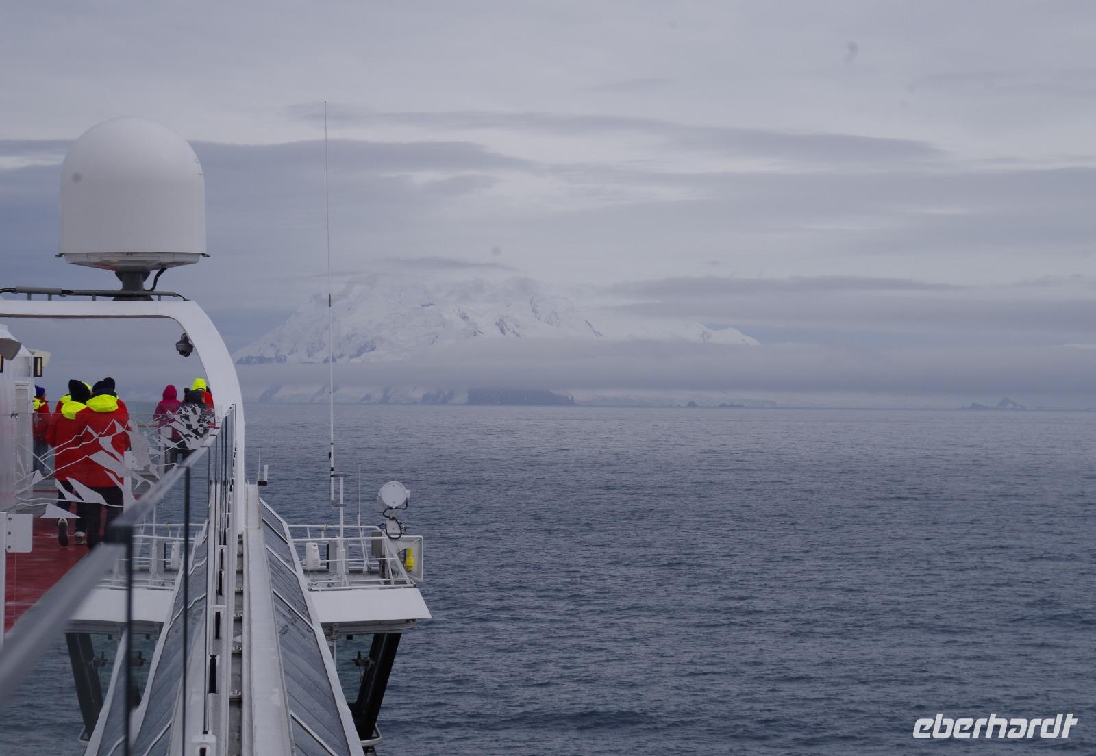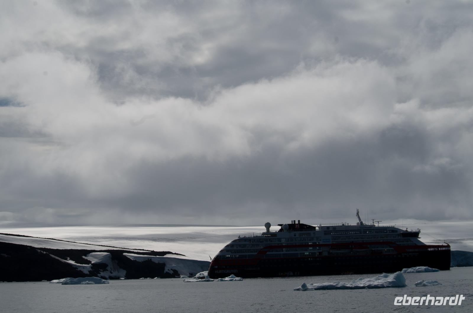 war geplant, doch dann King George IslandAn Tag 13 lauschen wir wieder spannenden Vorträgen an Bord. Diesmal über die Shackletons Endurance Expedition und die Durchquerung der Antarktis, außerdem über die letzte Überwinterung auf der Georg Forster Station 1991. Nachmittag geht es nicht wie ursprünglich geplant nach Yankee Harbour, sondern in Richtung King George Island, eine Insel rund 200 km südlich des antarktischen Festlandes. Die Anlandungen in Yankee Harbour müssen leider wegen starkem Seegang und Wind ausfallen, Sicherheit geht vor. Wir fahren hinein in die Bucht. Hier werden uns die verschiedenen Antarktis Stationen erklärt, welche von vielen Nationen betrieben werden, wie die „Ferraz Station" (Brasilien), „Machu Pichu" (Peru), „Bellinghausen" (Russland) oder Station „Frei" (Chile).