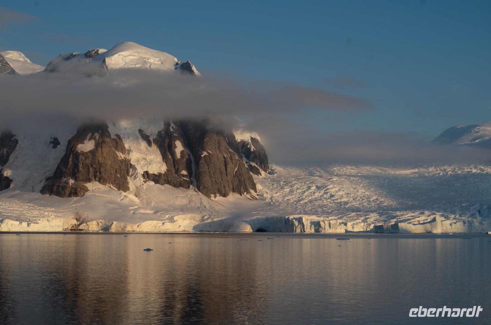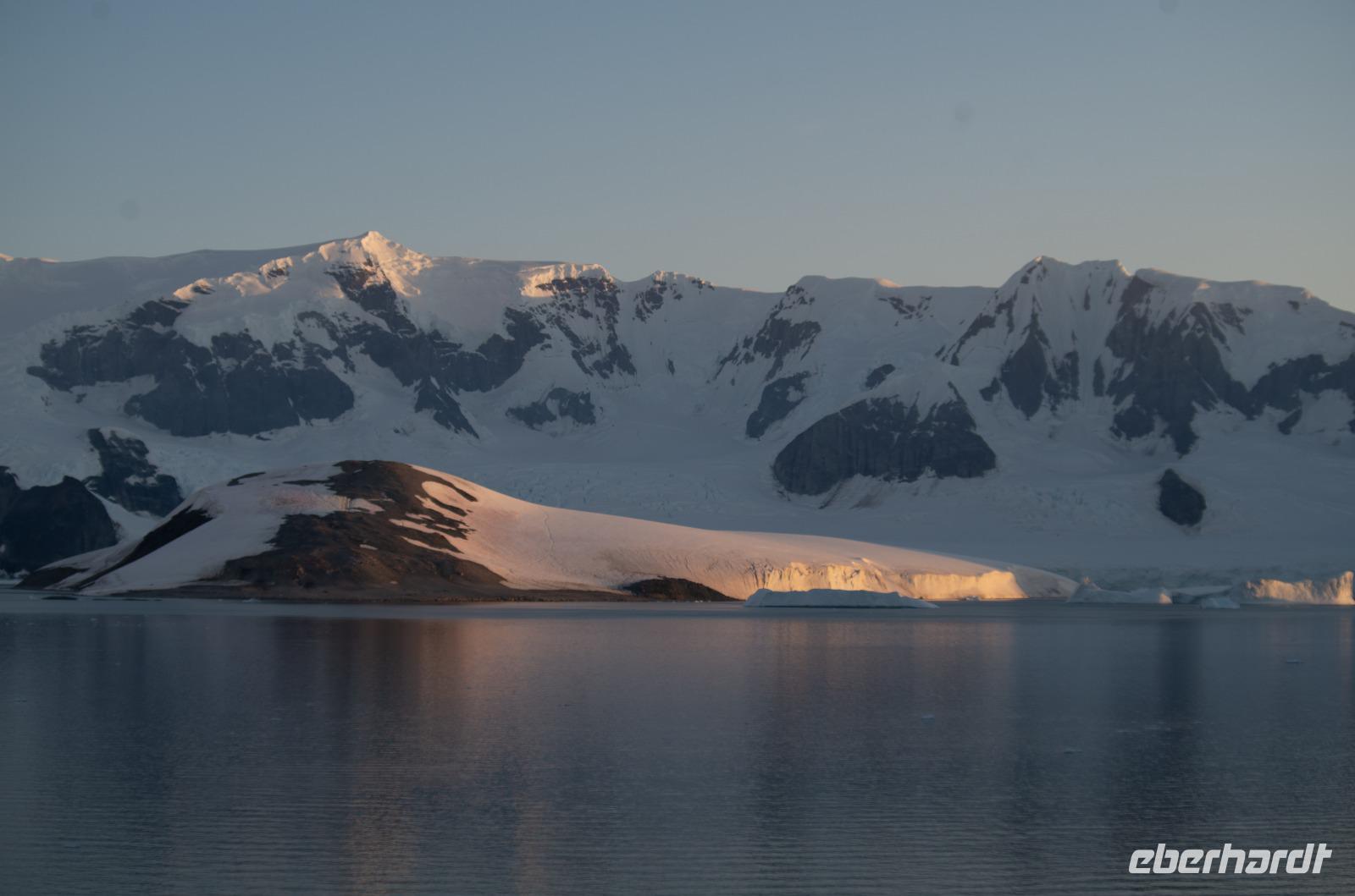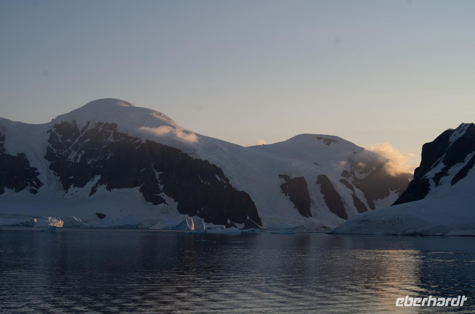 Jede Reise durch die Antarktis ist eine Expedition. Eine Entdeckertour durch Eisberge und Eisschollen. Das erleben wir besonders an Tag 8 bei der beeindruckenden Fahrt durch den Antarktik-Sound. Von Deck aus blicken wir auf die gigantischen Eisformationen und freuen uns auf unsere bevorstehende Bootsfahrt. Nach dem Mittagessen geht es endlich los. Wir gehen warm angezogen, mit Gummistiefeln und Schwimmweste auf Bootstour zu den imposanten und wunderschönen Eisbergen. Bei wunderbarem Wetter fahren wir durch spektakuläre Eisberglandschaften und Eisschollen. Dabei sehen wir immer wieder einheimische Tiere wie Vögel und Pinguine in ihrer natürlichen Umgebung... perfekte Fotomotive also. Die Gruppe ist ausnahmslos begeistert.Wieder an Board können wir heute gleich zwei interessanten Vorträgen lauschen: Ein Vortrag über Wale und Robben und eine Präsentation der Antarktis Entdecker Anfang des 19. Jahrhunderts.Wieder ein unglaublicher Tag in einer anderen Welt. Nach dem Abendessen steht noch das tägliche Infobreefing für den nächsten Tag an, bevor wir danach noch nach einigen Eisbergen Ausschau halten und schließlich zu Bett gehen.