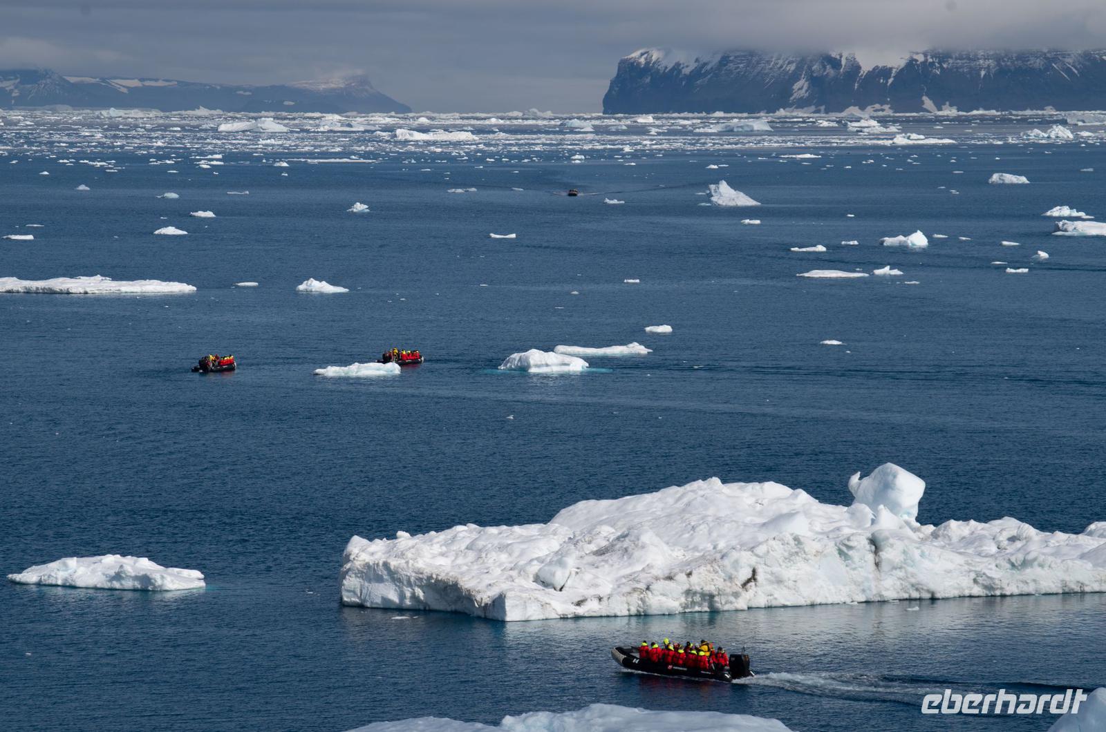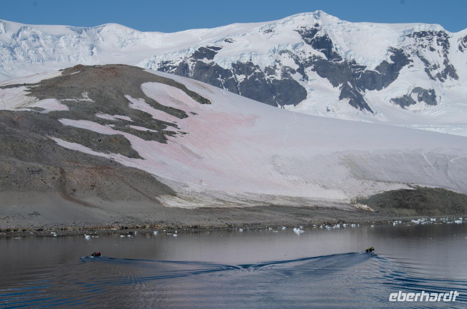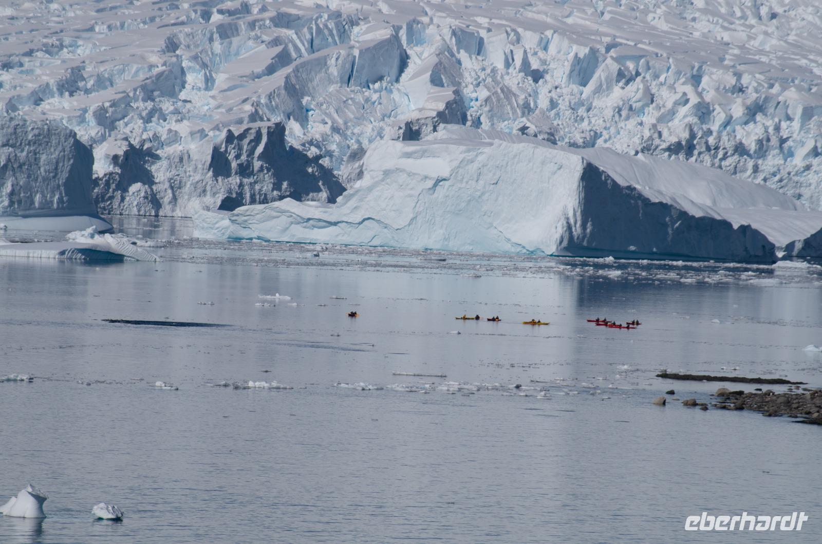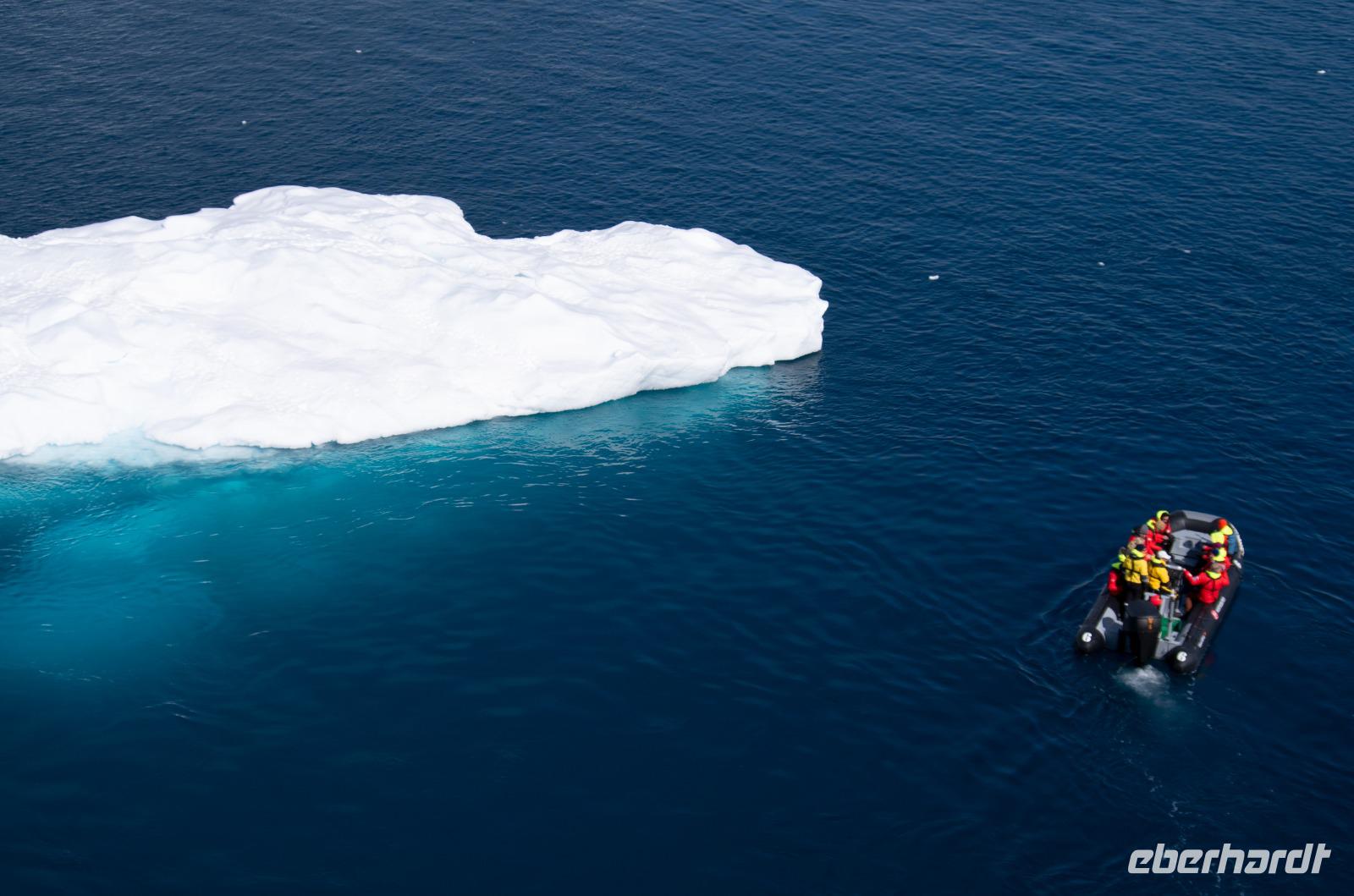 Jede Reise durch die Antarktis ist eine Expedition. Eine Entdeckertour durch Eisberge und Eisschollen. Das erleben wir besonders an Tag 8 bei der beeindruckenden Fahrt durch den Antarktik-Sound. Von Deck aus blicken wir auf die gigantischen Eisformationen und freuen uns auf unsere bevorstehende Bootsfahrt. Nach dem Mittagessen geht es endlich los. Wir gehen warm angezogen, mit Gummistiefeln und Schwimmweste auf Bootstour zu den imposanten und wunderschönen Eisbergen. Bei wunderbarem Wetter fahren wir durch spektakuläre Eisberglandschaften und Eisschollen. Dabei sehen wir immer wieder einheimische Tiere wie Vögel und Pinguine in ihrer natürlichen Umgebung... perfekte Fotomotive also. Die Gruppe ist ausnahmslos begeistert.Wieder an Board können wir heute gleich zwei interessanten Vorträgen lauschen: Ein Vortrag über Wale und Robben und eine Präsentation der Antarktis Entdecker Anfang des 19. Jahrhunderts.Wieder ein unglaublicher Tag in einer anderen Welt. Nach dem Abendessen steht noch das tägliche Infobreefing für den nächsten Tag an, bevor wir danach noch nach einigen Eisbergen Ausschau halten und schließlich zu Bett gehen.