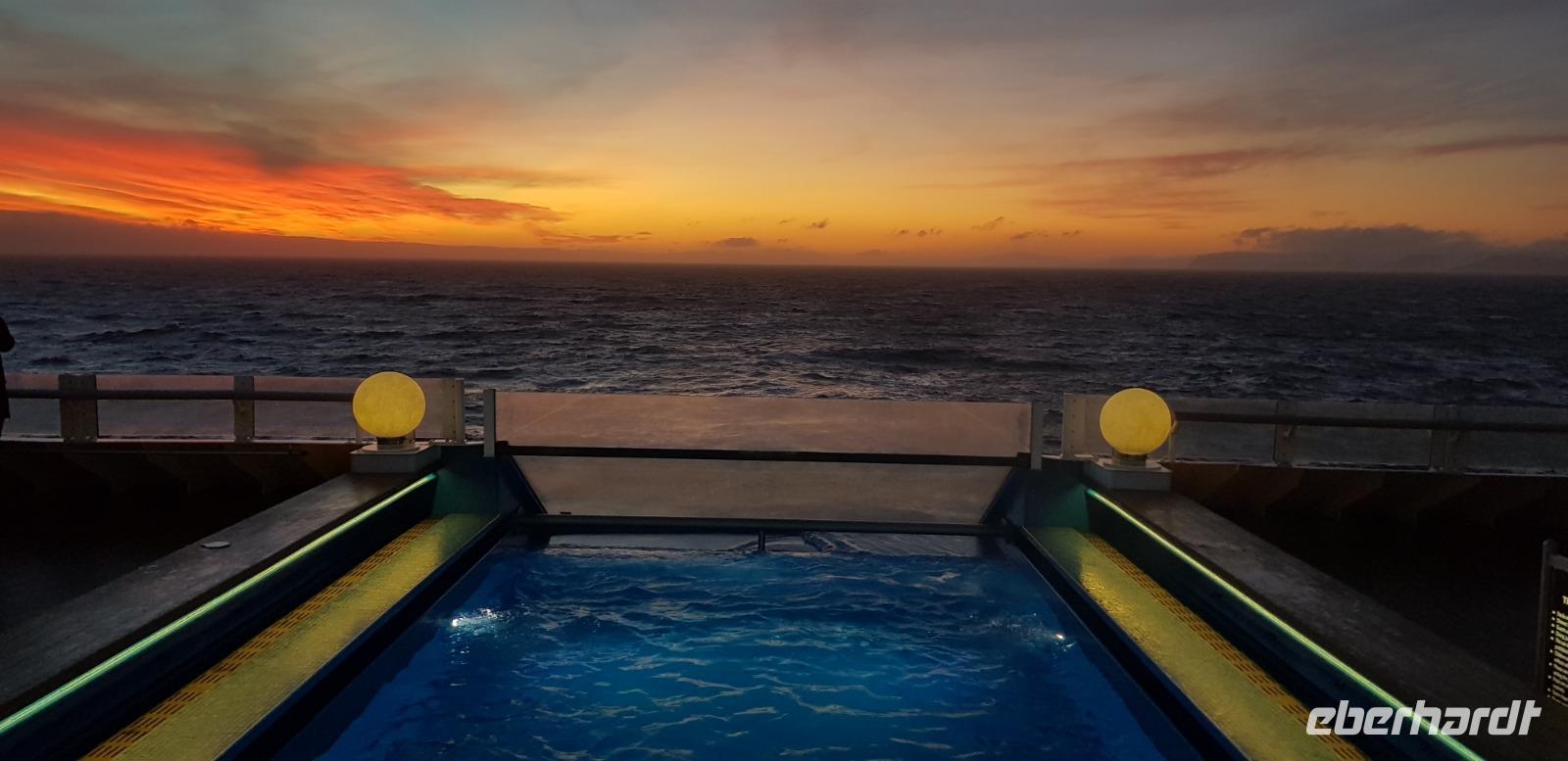 Der vorletzte Tag an Bord ist erneut ein Seetag. Ein letzten Mal hören wir spannende Vorträge. Diesmal zu den Themen Magellan Expedition vor 500 Jahren und über Gunther Plüschow, dem Silberkondor über Feuerland. Außerdem haben wir heute nochmal Zeit im Pool baden zu gehen und wer kann schon sagen in der Antarktis gebadet zu haben. Eine wundervolle Kulisse. Beim gemeinsamen Abendessen lassen wir die Reise noch einmal Revue passieren bevor sich der Kapitän von uns verabschiedet. Ab 22:30 müssen wir dann unsere Koffer vor die Tür stellen, da die über Nacht gesammelt und für die Ausschiffung vorbereitet werden.
