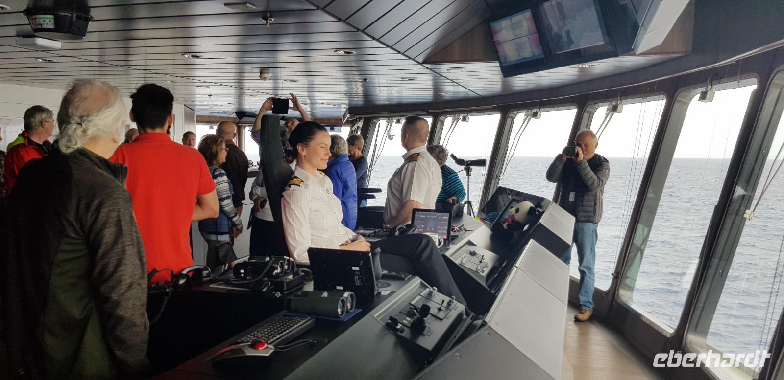 Der heutige Tag verläuft eher gemütlich und wir erleben unseren zweiten Seetag auf der MS Roald Amundsen. Zeit, das Schiff zu genießen und um frische Seeluft zu schnuppern. Wir fahren durch die Drakestraße, einem Teil des antarktischen Zirkumpolar Stroms, gen Osten. Nach dem gemeinsamen Mittagessen an Board, hören und sehen wir einen interessanten Vortrag über die Antarktis und freuen uns nun noch mehr auf die bevorstehenden Tage.