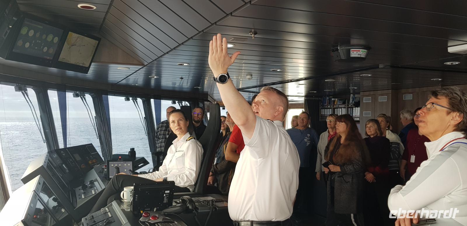 Heute steht unser erster Seetag auf dem Programm, wo wir mit unserem Schiff an den chilenischen Gletschern im Beagel Kanal vorbei gleiten.Nach dem Frühstück probieren wir unsere speziellen Gummistiefel an, die wir für die Landgänge benötigen, dann muss man sich seine Größe merken und auf Deck 3 in dieExpedition Launch seine passenden Stiefel abholen. Anschließend unternehmen wir einen halbstündigen Schiffsrundgang auf allen Decks. Da ich mir das Schiff schon einmal zuvor in Hamburg ansehen durfte, kenne ich mich zum Glück schon recht gut aus. Danach treffen wir uns 11:30 wieder auf Deck 6 im Auditorium zum Vortrag über die allgemeinen Reiseinformationen und Tenderboot-Einweisung. Der Vortrag läuft zwar auf Englisch, ABER wir bekommen Kopfhörer mit einem Audiofunk, wo ein Hurtigruten Mitarbeiter simultan übersetzt. Willkommen bei Hurtigruten! ;-)Ab 12:30 treffen wir uns dann zum Mittagessen im Aune - Buffetrestaurant und danach gibt es ausnahmsweise Mal etwas Freizeit für unsere Gäste. :-DAm späten Nachmittag treffen wir uns wieder im Science Center, um etwas über die Mikroskop-Arbeiten und sonstigen wissenschaftlichen Projekte zu erfahren. Hier stehen kompetente Wissenschaftler zur Verfügung, die meist alle Fragen beantworten können. Auch anderen Schiffen gibt es ein Theater... hier gibt es eben das großartige Science Center.Anschließend nehmen wir auf Deck 10 in der Explorer Bar am Kapitäns Empfang teil.Jeder bekommt gratis ein Glas Sekt und die Crew sowie das Expeditionsteam werden vorgestellt. Der wichtigste Mann an Bord kommt wie immer zum Schluss.... Der Chefkoch aus Deutschland wird mit großem Applaus begrüßt. Nach dem Show-Ereignis gibt es endlich Abendessen. (gab ja lange nix....) Danach sitzen wir noch in gemütlicher Runde in der Explorer Bar zusammen und die Firma Eberhardt lädt ein auf eine Runde Bier oder Wein.Zum Wohl und auf eine unvergessliche Kreuzfahrt.