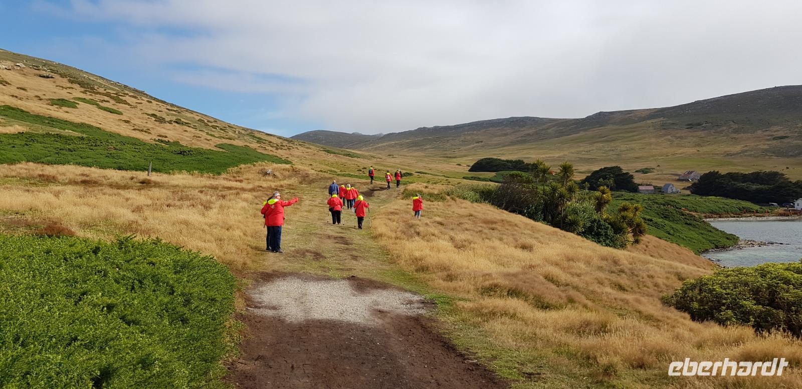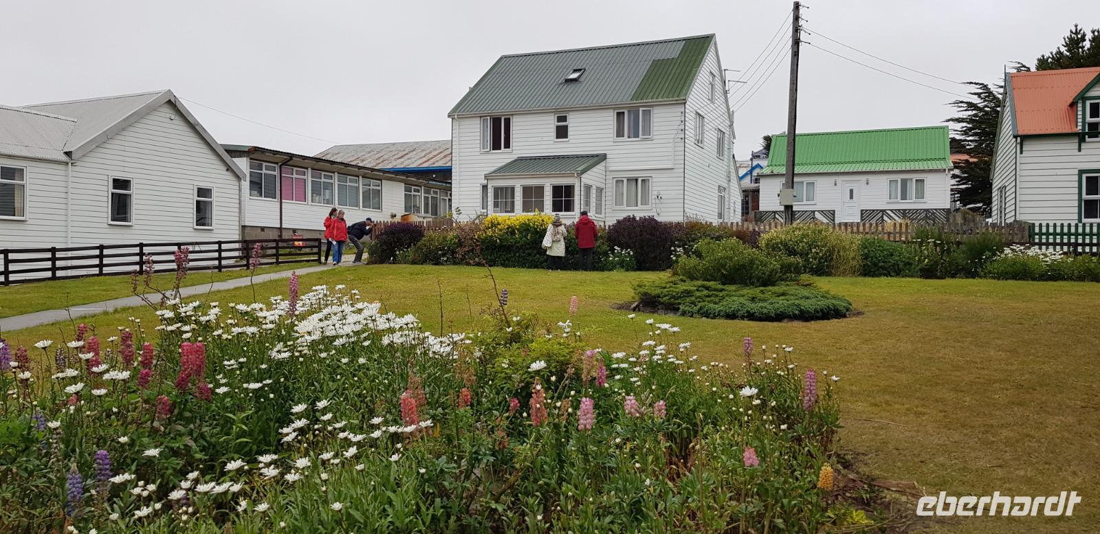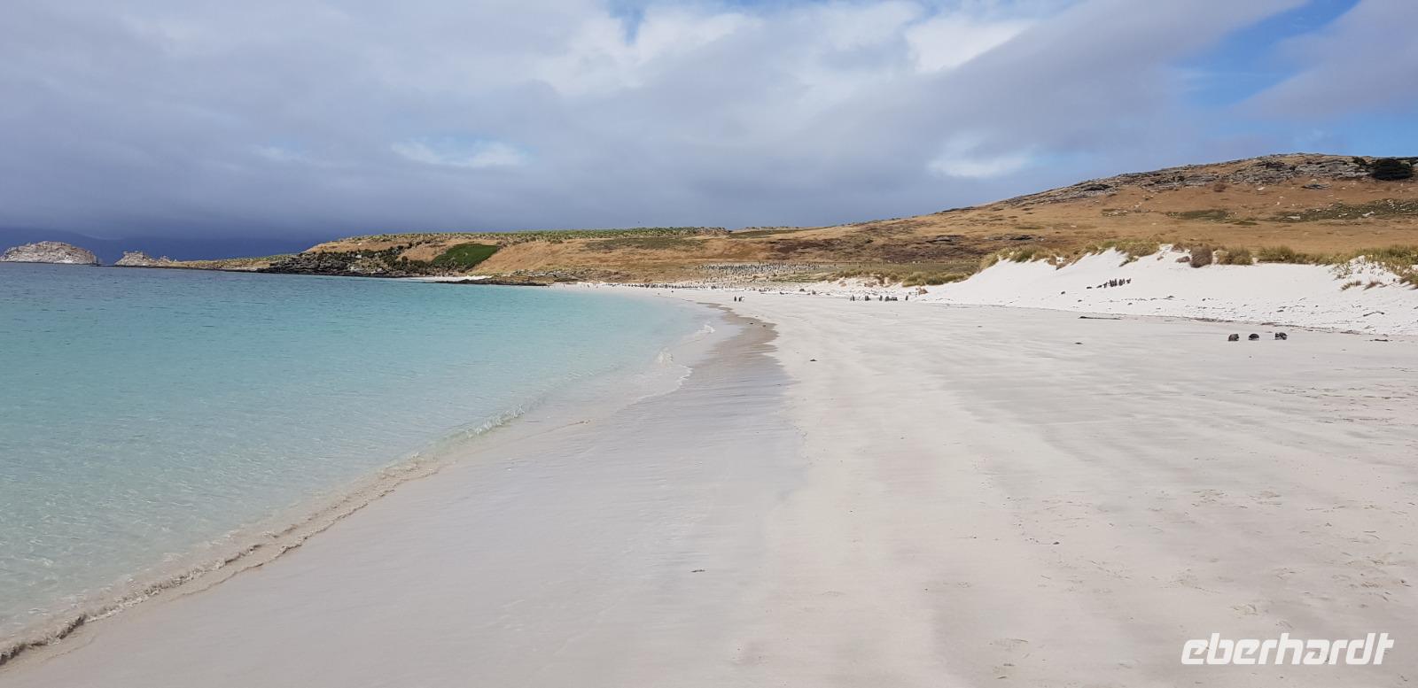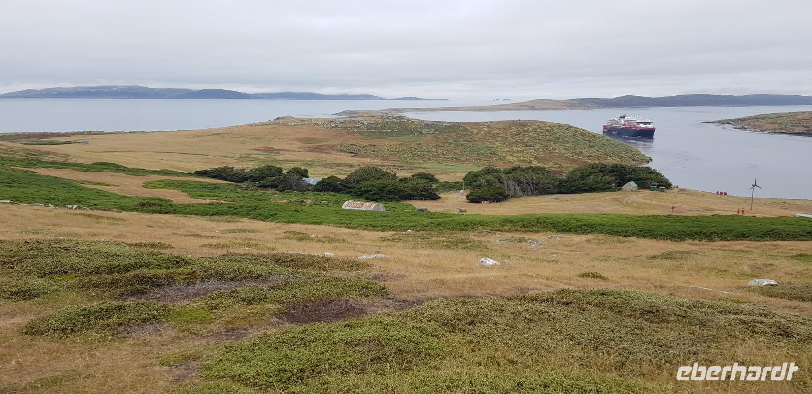Neue Insel, neue Erlebnisse: Heute gehen wir in Carcass Island an Land. Wir unternehmen eine Wanderung zur anderen Seite der Insel und spazieren gemütlich auf weichem Grasboden entlang. Unterwegs sehen wir die eine Gentoo Pinguinkolonie. Angekommen an Leopard Beach sehen wir weitere Gentoo Pinguine am Strand und eine Kolonie von Magellan Pinguinen. Alle Gäste nehmen sich viel Zeit die Pinguine anzuschauen und zu fotografieren. Danach laufen wir gemütlich zurück. In der kleinen Siedlung gibt es eine Pension, die für alle Schiffsgäste Kaffee und Kuchen kostenfrei anbietet. Wir kehren ein und sind von dem schönen Ambiente begeistert. Den Nachmittag und Abend können alle Gäste individuell auf dem Schiff gestalten.