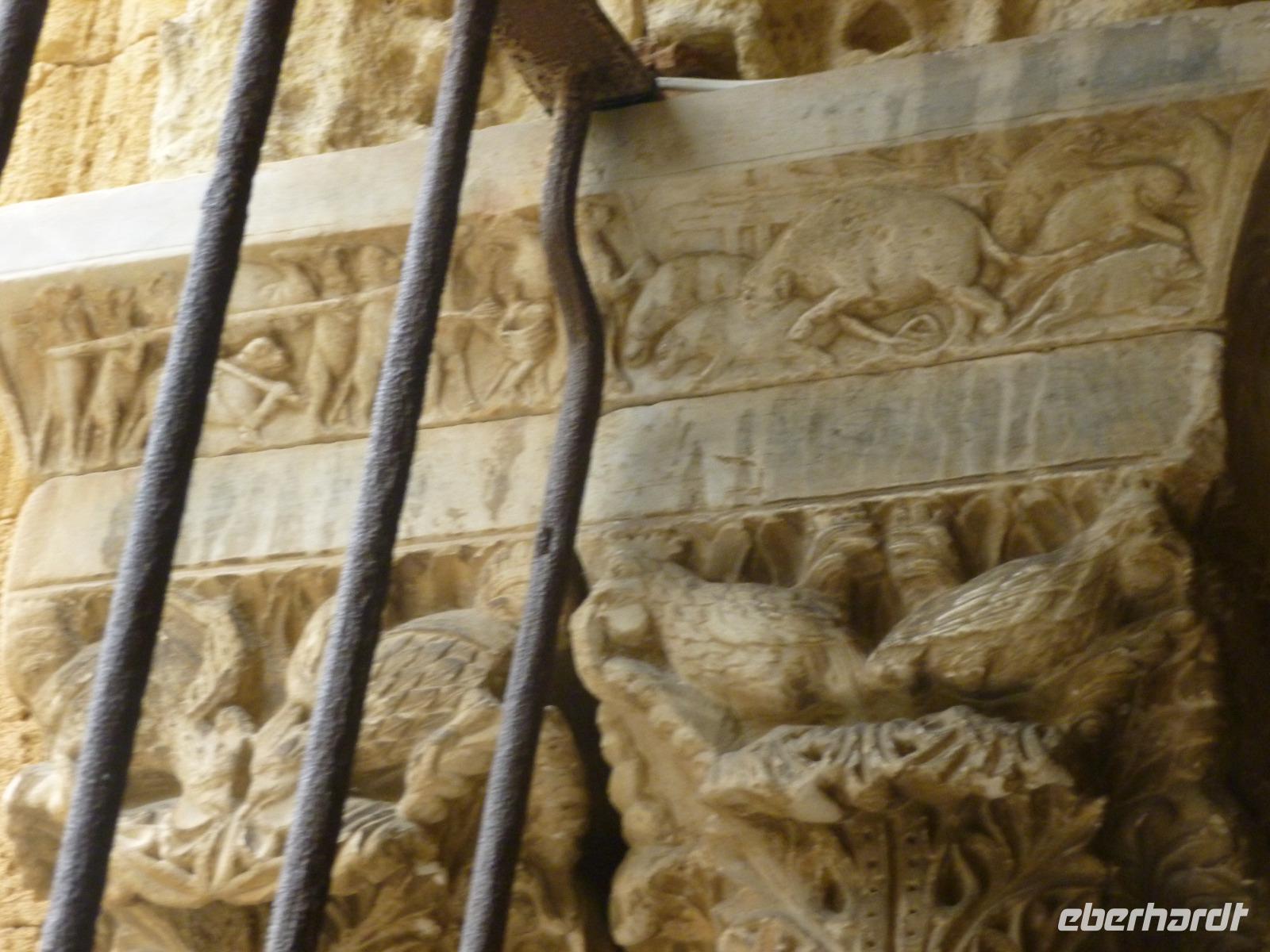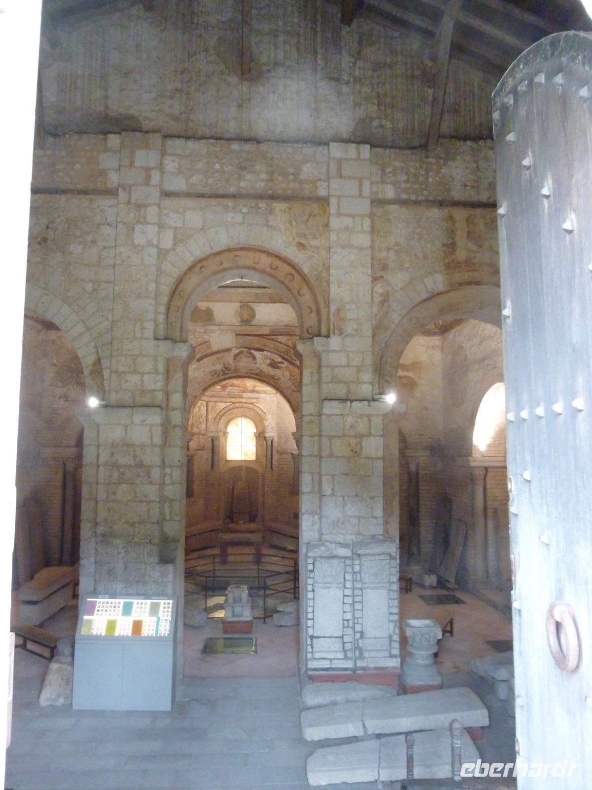 Auf dem Monte Narranco nahm der Regen noch zu, doch wir erwanderten tapfer die beiden asturischen romanischen Kleinodien Santa Maria del Narranco und San Miguel de Lillo - dafür belohnten uns Kircheninners samt asturischen Wächter, der uns manches erzählte.