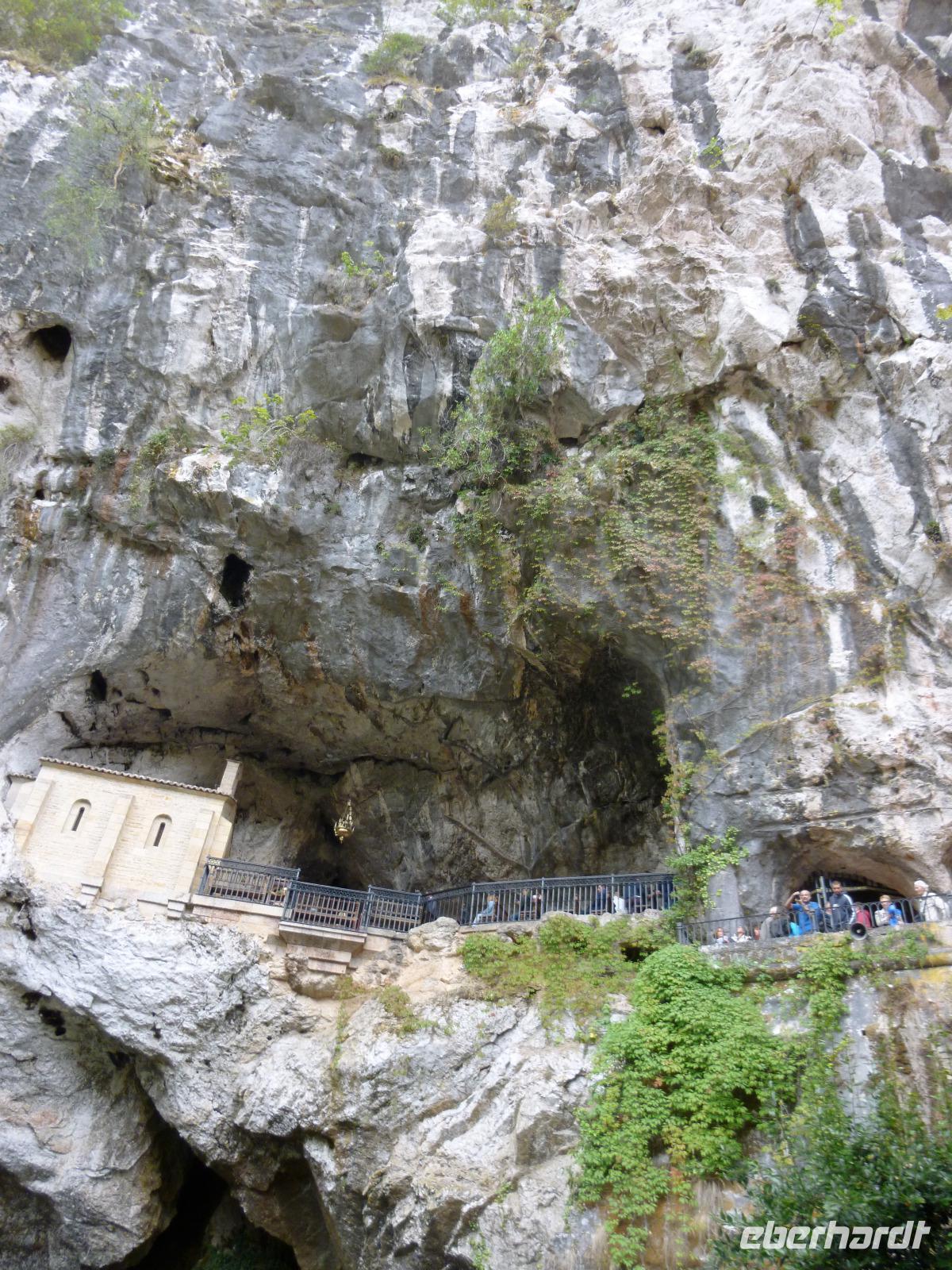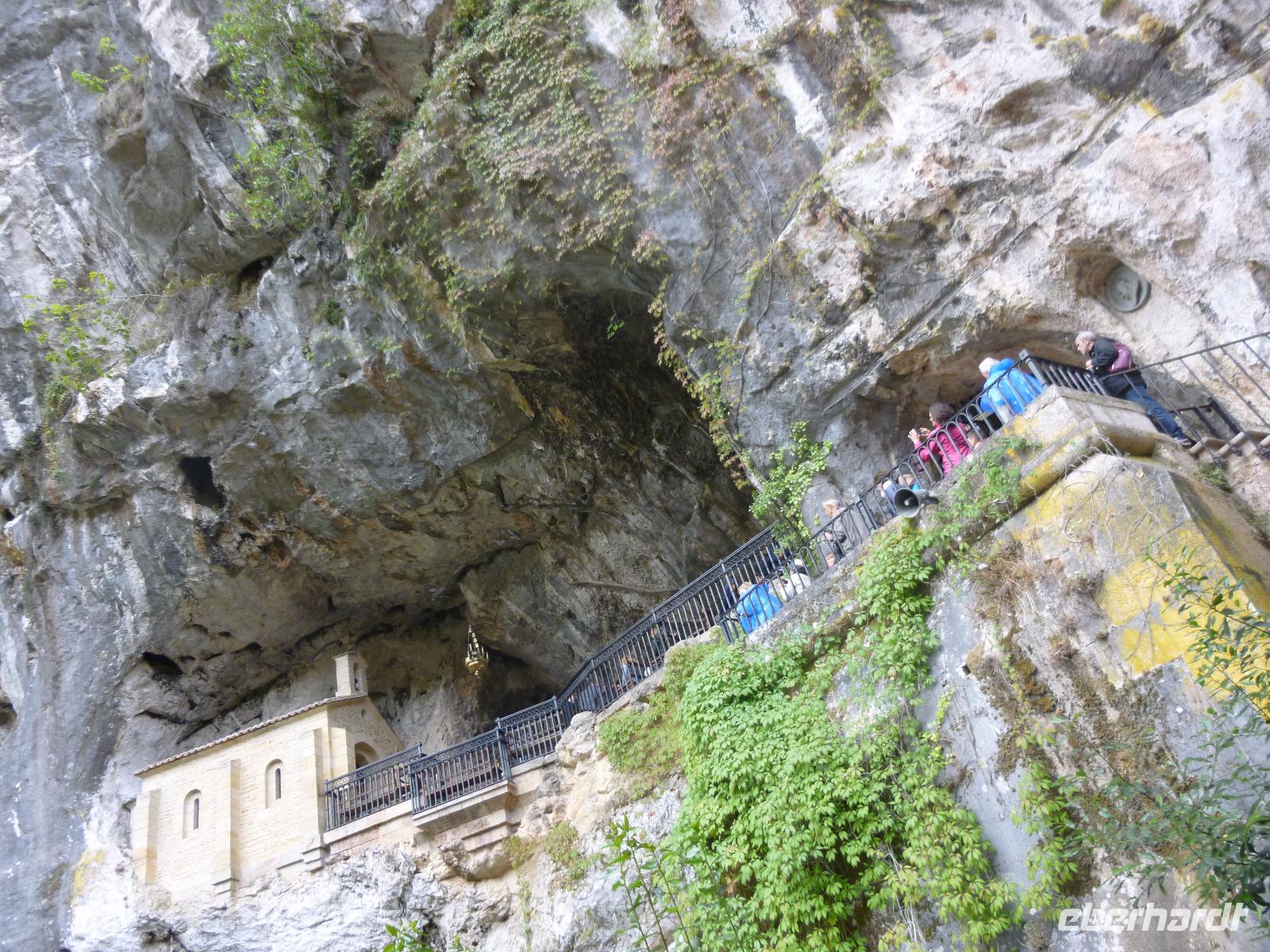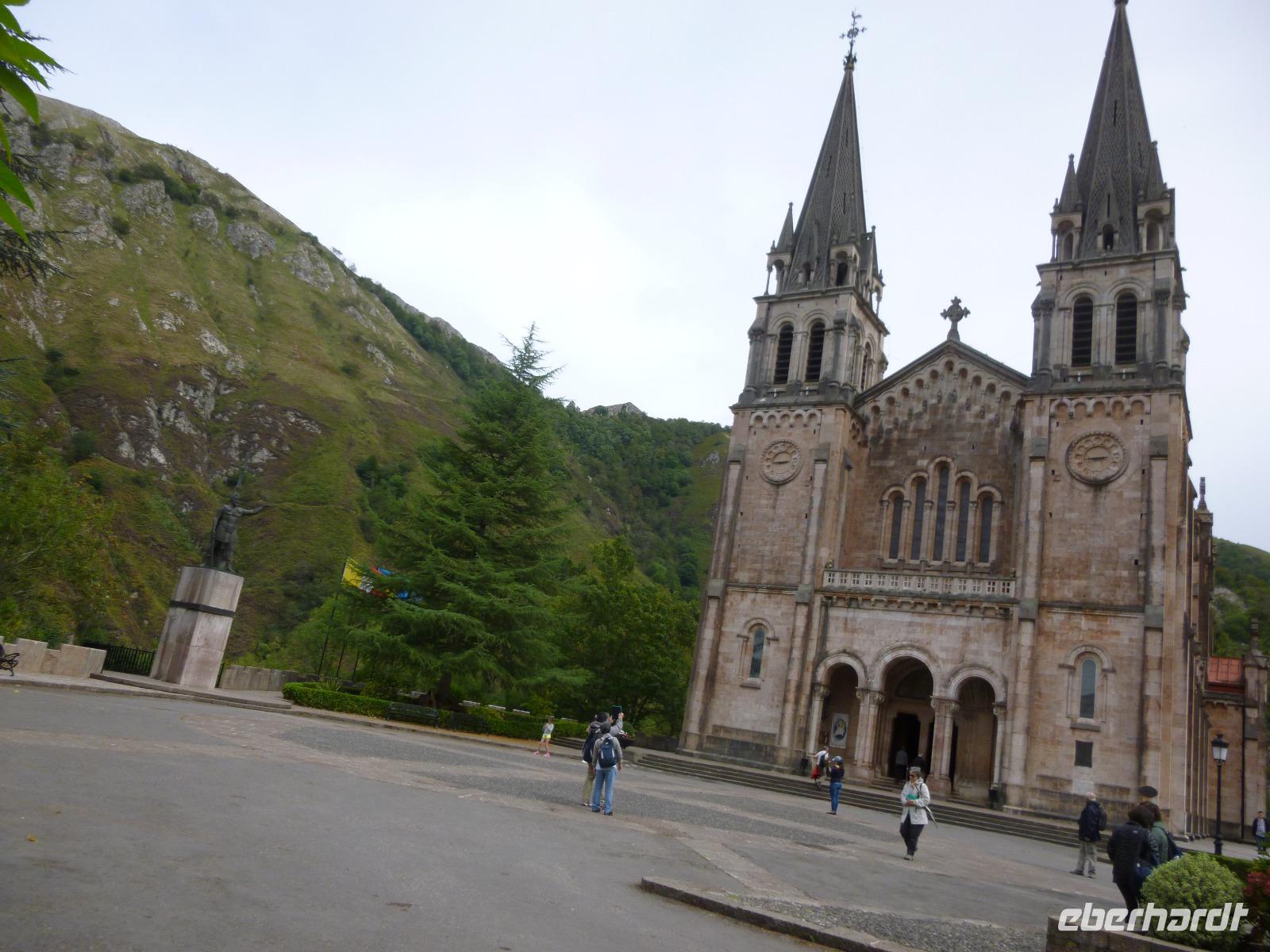 Wer nach Covadonga kommt, sucht die historischen Wurzeln Spaniens: eine Höhle in den steilen Hängen der Sierra de Covadonga mutet romantisch an. Hier versammelte der vermutlich westgotische Pelayo um 722 seine Getreuen, gesucht von den Arabern als Aufrührer und geflohene Geisel. Ihm erschien Maria in höchster Not und das im Gebet erschienene Kreuz führte ihn zum Sieg (heute in der Camera Santa in Oviedo zu bewundern). Dieses asturische Siegeskreuz ist mitten im Wappen Spaniens. Das christliche Spanien sieht dies als Beginn der Reconquista, die bald zum Programm asturischer Könige wurde. Doch die alten Bauten sind praktisch vernichtet, in der neoromanischen Felskapelle findet sich vor allem Zeitgenössisches. Dennoch zieht es die Menschen eher zum Nationalheiligtum in die Höhle als zum Marienheiligtum, der nahen neoromanischen Basilia auf dem Fels über dem Tale.