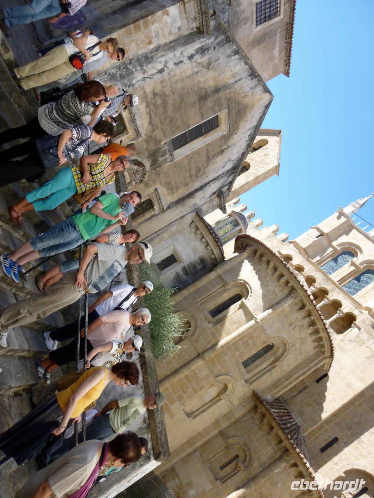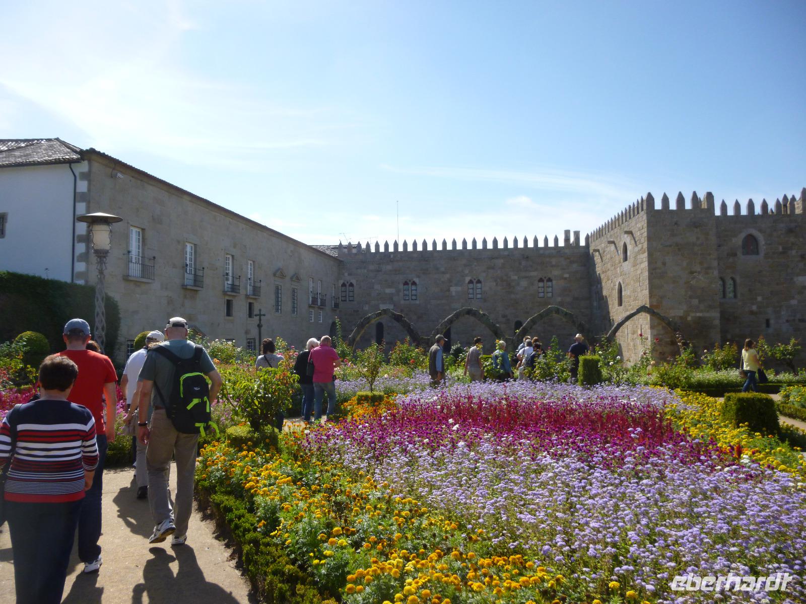 Die Wiege der Nation an den Ausläufern der Serra de Santa Catalina präsentierte sich uns mit einem gut erhaltenen Stadtkern inmitten der Stadtmauern, vom Kastell und der wohl königlichen Taufkapelle Sao Miguel oberhalb beschirmt. Wir spazierten aus der Kapelle bis zum Markt mit dem Olivenbaum und dem Kloster Nossa Senhora da Oliveira, in der Freizeit besuchten einige das Franziskanerkloster jenseits der Stadtmauer.