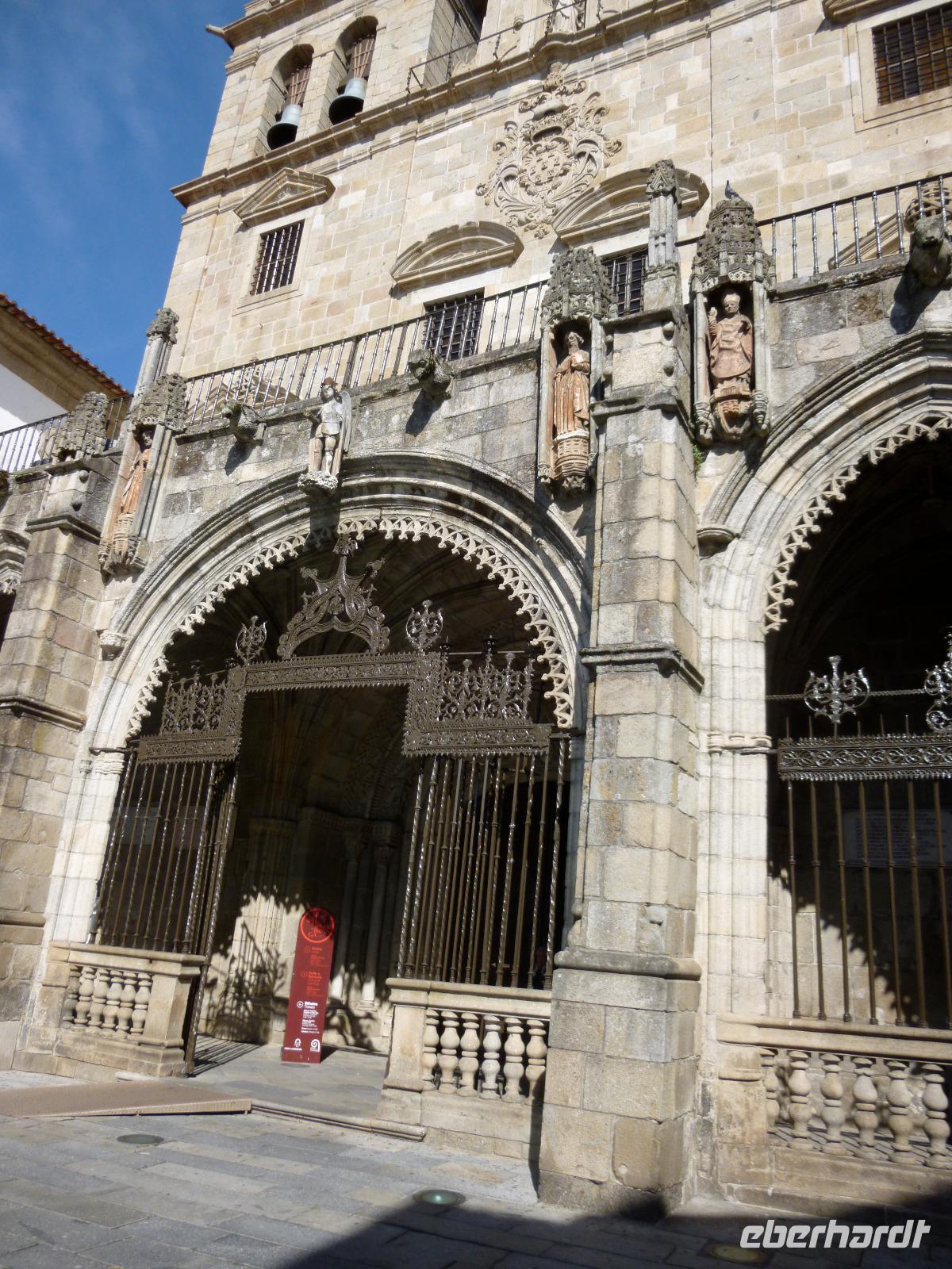 Santiago de Compostela gründete sich auf dem Ziel, die asturische Kirche unabhängig von Rom zu machen. Das christliche Spanien stellte sich also zunächst unter den Schutz des Apostels Jakob, dann erst wurde sein Grab gefunden - natürlich in Asturien. Jakob wurde zum Schutz und Schirm der Maurentöter, die Stadt Santiago zu dessen Verehrungsstätte. Pilgerstadt ist sie noch heute, doch auch Universitätsstadt, Regierungssitz und barock überformte UNESCO-Stadt. Unbestrittener Höhepunkt: die barocke Westfassade der Kathedrale, die bedeutende romanische Porta de la Gloria schützend. Um sie herum westlich, nördlich, östlich und zum Schluß südlich führte uns Franceso kenntnisreich durch die Altstadt zu den Markthallen, bevor wir individuell noch das Kathedralinnere erkundeten.