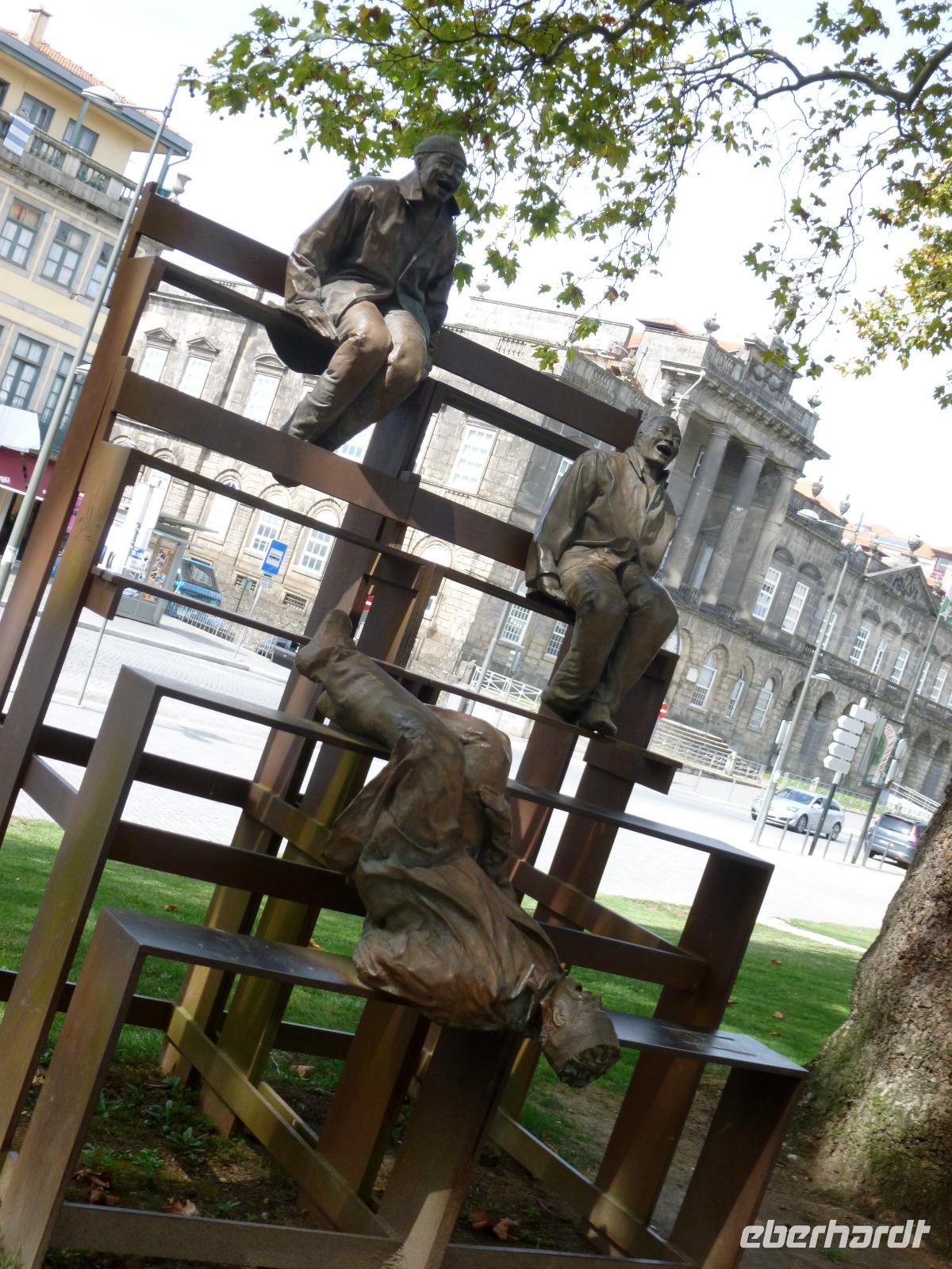 Im malerisch am Douro gelegenen Porto erwartete uns Luisa bereits am Torre dos Clerigos, am Wahrzeichen der UNESCO geschützten Altstadt. Die zweitgrößte Stadt des Landes vereint Industrie und Charme, wie uns die lustigsten Männer (Bronzekunstwerke) bestätigten. Wir erkundeten zu Fuß den Kathedralbezirk, bevor wir das Viertel am Fluß mit den Portweinkellern (Ribeiras) zur Verkostung betraten. Portwein wurde im 17. Jahrhundert von englischen Kaufleuten "entdeckt", die Dourowein mit Schnaps versetzten und so haltbarer machten. Heute wird Flaschen- und Fassgereifter Portwein (rot und weiß) angeboten.