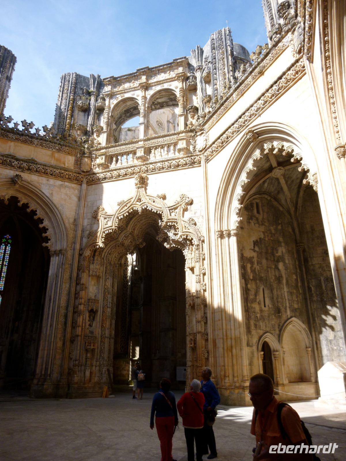 Die Dominikanerkirche und UNESCO-Welterbe geschützte Santa Maria da Vitoria ist eine Perle des spätgotisch manuelinischen Stils. Während unseres geführten Rundgangs bestaunten wir die Gründerkapelle mit der königlichen Grablege, die Kirche mit dem reich verzierten Kreuzgang und die unvollendeten Kapellen mit dem herrlichen manuelinischen Portal von Mateus Fernandes (1509). Das Kloster Batalha symbolisiert die portugiesische Souveränität und die Macht des Königshauses Avis.