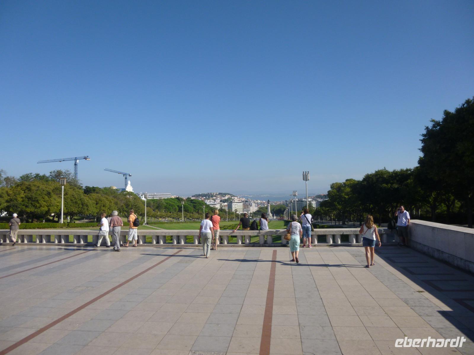 Am eingerüsteten Padrao dos Descobrimentos standen wir auf dem großen Mosaik-Kompass mit Routen der Entdecker des 15. und 16. Jahrhunderts.