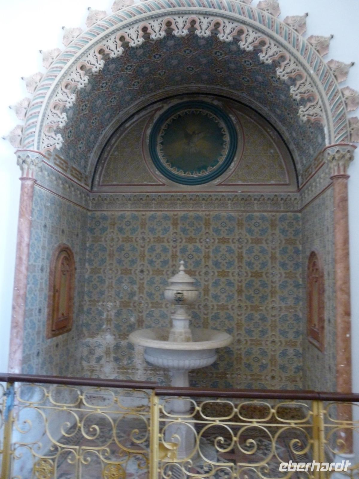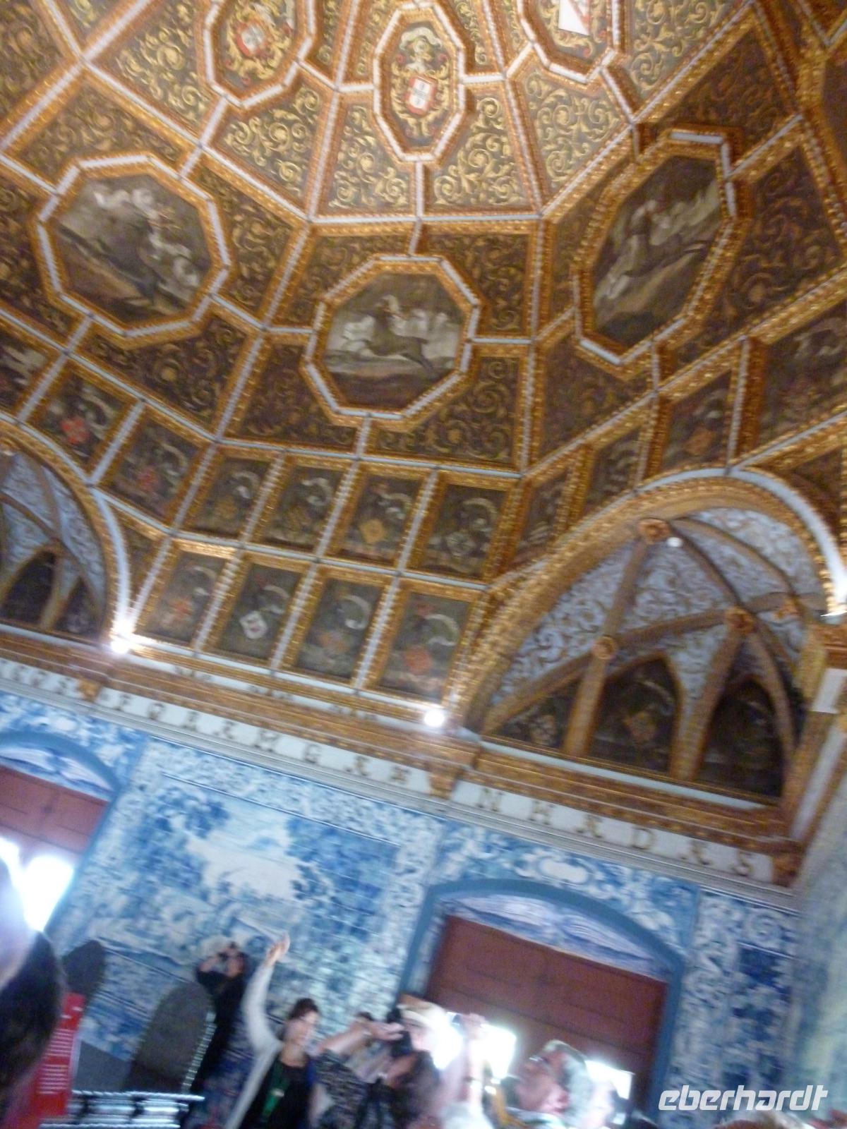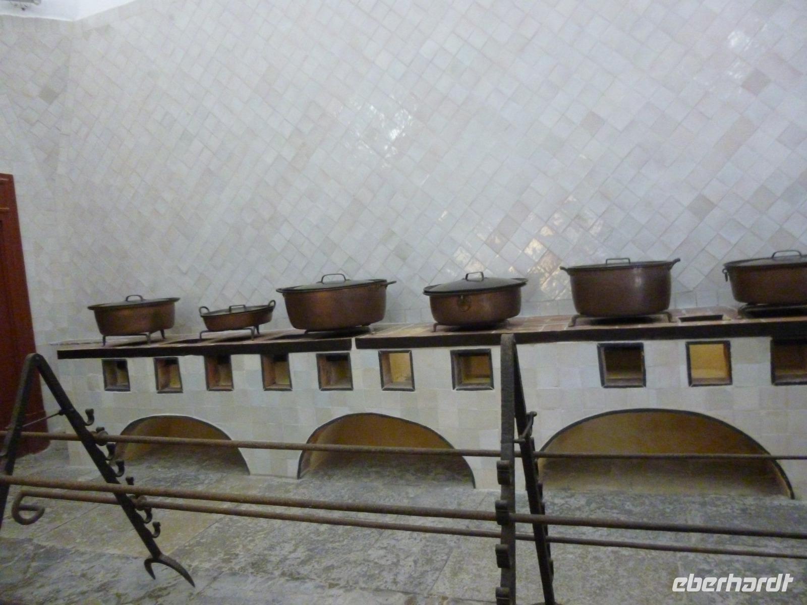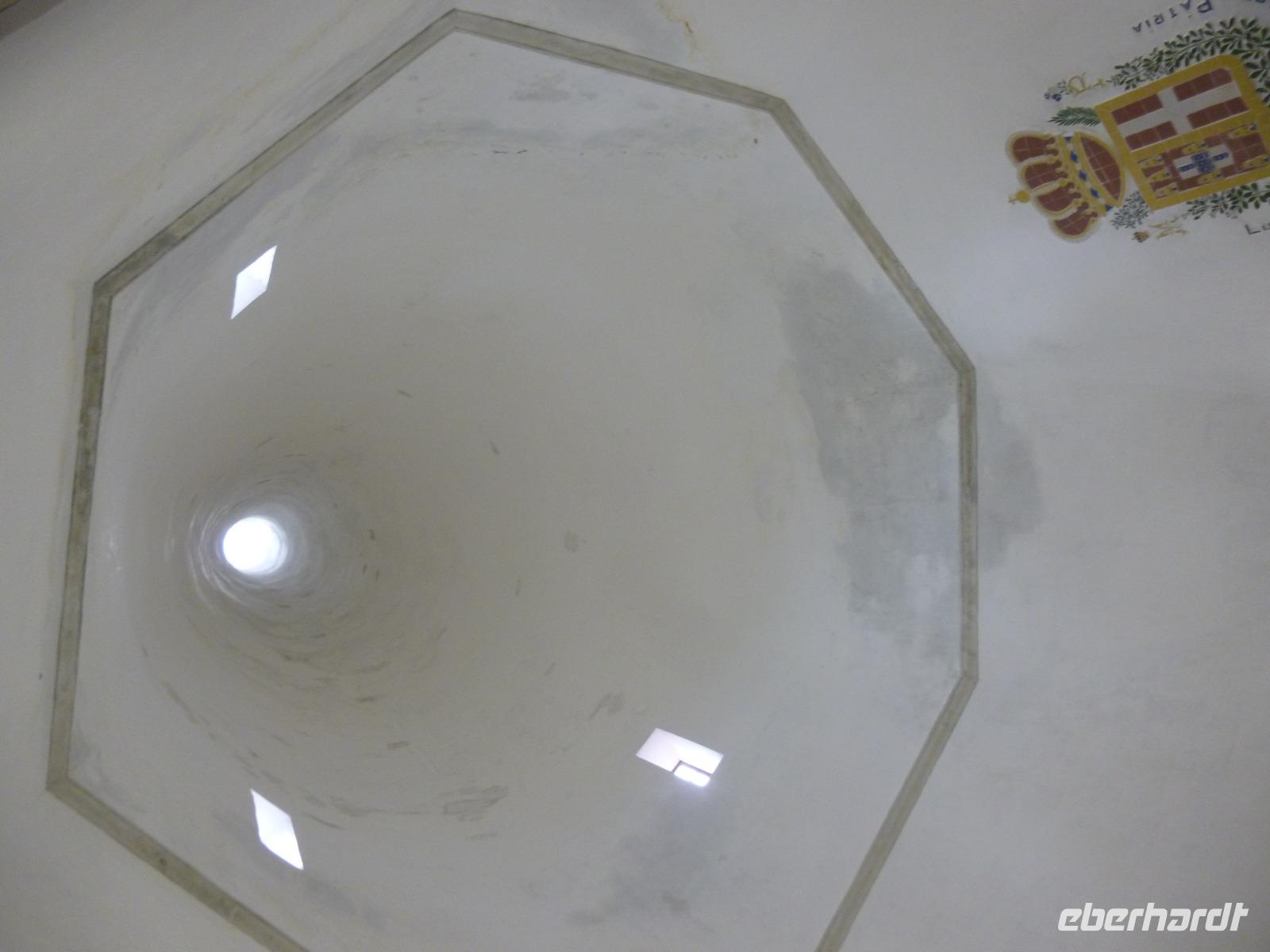 In Sintra besuchten wir mit Ines nicht den eklektischen Neuschwansteinpalast de Pena, sondern den gotischen Palast in der Altstadt mit den bizarren beiden weißen Küchen-Schornsteinen. Wir bestaunten dort den Schwanen-, Elstern- und Wappensaal sowie das Gefängnis eines Königs und die Küche. Wer wollte, betrat noch den Garten mit Wasserspielen und dem Ausblick zum Fels-Hügel.
