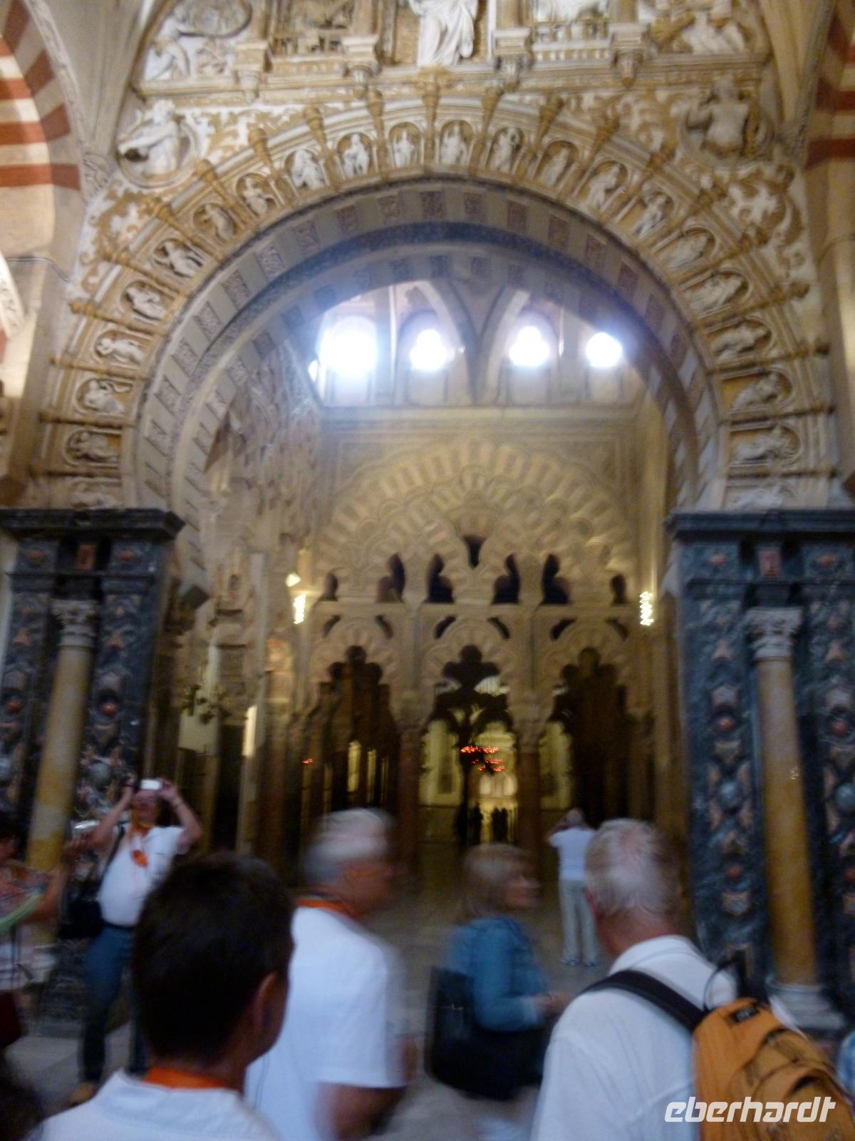 "So changierend zwischen grandioser und verbohrter Geschichte der letzten 500 Jahre musste jeder Andalusier gehen, der kreativ werden wollte" (Paul Ingendaay). Für Intoleranz und Gleichmacherei sorgte nicht zuletzt die „Heilige" Inquisition - das Bunte, Vielfältige ist weder spanische noch gar andalusische Sache. Mi Tierra (mein Land) bedeutet hier eher Familienzusammengehörigkeit, Stadtviertel, Region - eher das kleine Vaterland als das große. Die Spanier haben wenig zum Verständnis fremder Kulturen beigetragen, sie waren eher angewiesen auf Gäste für ein ungeschöntes Bild ihrer selbst. Und so hat Andalusien, entstanden aus enormer kultureller Fusion über zweitausend Jahre, in der Neuzeit keine große Übung im kulturellen Austausch. Es genügt sich selbst und kümmert sich ums Eigene. Solche Gedanken zogen möglicherweise durch unsere Köpfe beim Betrachten des Wunderwerks der Mezquita, die sich gegenüber von unserem Hotel befand.
