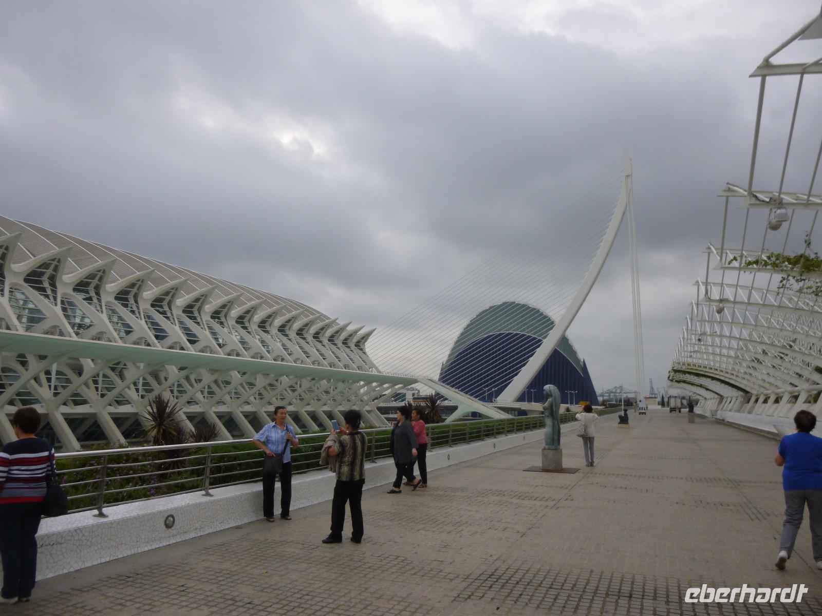 Spaniens drittgrößte Stadt liegt inmitten der Huerta, einer riesigen Ebene voller Obst- und Gemüseplantagen. Gesegnet mit warmem Küstenklima, lässt es sich hier gut leben, wie uns Stephanie versicherte auf unserer(m) Rundfahrt(Rundgang) durch die neue (Ciutat de les Arts i de les Ciéncies) und alte Stadt (elegante Seidenbörse mit Börsensaal, mittelalterliche Kathedrale mit Wassergericht, Markthalle und Horchería aus dem 19. Jahrhundert, Stadtmauer mit Serranos-Tor). Das futuristische Calatrava-Ensemble mit Oper, Kino und mehr versprühte eher kühlen Charme, während die Altstadt inmitten des begrünten alten Flussbettes des Turia von der Blütezeit des 14. und 15. Jahrhunderts kündet. Wir endeten mit der Führung am altehrwürdigen Botanischen Garten, der für die Freizeit Entspannung im Grünen bot.