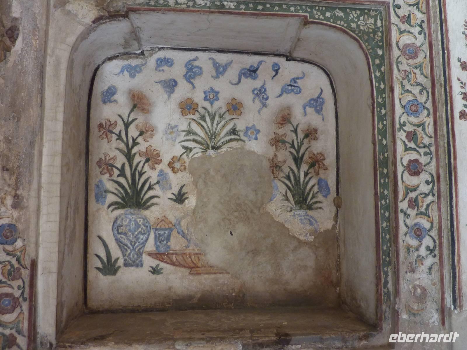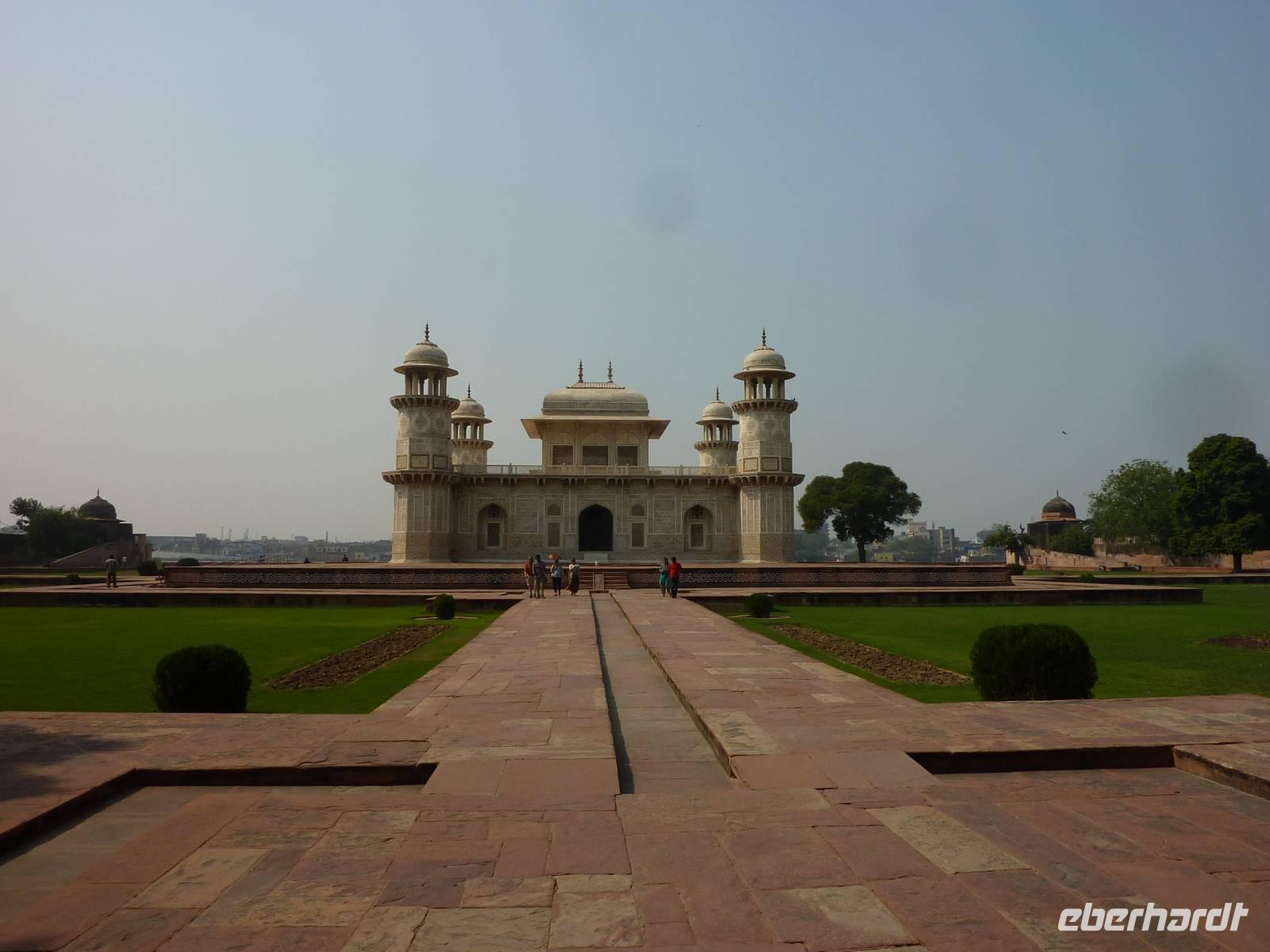 Gut ausgeruht stärkten wir uns abermals am reichhaltigen Frühstücksbuffet und um 09.00 Uhr starteten wir dann mit Amit und Bus nach Agra, unser nächstes Ziel. Wir passierten schöne Agrarlandschaften, viel schöner und vor allem gepflegter als von mir erwartet, legten 2 Hygienestopps mit akzeptablen Einrichtungen ein, probierten einen Patti (Teigtasche mit Gemüsefüllung) und erreichten gegen Mittag Agra, wo wir dem Baby Taj Mahal einen Besuch abstatteten, upps.. das stand garnicht im Programm.. hat Amit ganz fix dazugezaubert. Toll. Am frühen Nachmittag bezogen wir dann unser neues 5-Sterne Hotel der Jaypee-Kette, ein wahrer Palast mit Gängen zum Irren und Wirren. Wir hatten Zeit für ein Päuschen am Pool und genossen dies sehr. Das Abendessen gab es wieder von einem gut bestückten Buffet. Leider gab es außerhalb des Hotels nirgends eine Möglichkeit, wo man sich nett zusammensetzen konnte, nur klimatisierte Räume, schade.