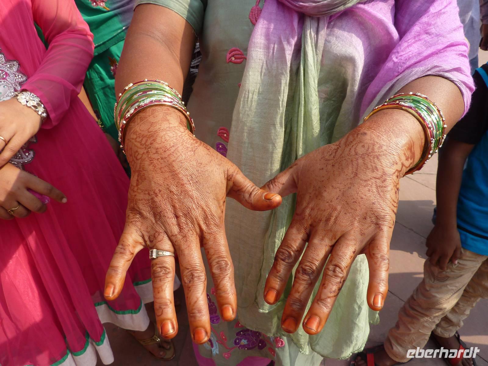 Um 08.30 Uhr trafen wir uns dann wieder zum Frühstück, etwas ausgeruht. Das Frühstück war außerordentlich reichhaltig und schmackhaft. Und um 10.00 Uhr starteten wir unsere Stadtrundfahrt durch Dehli. Wir begannen mit einem Spaziergang durch die Altstadt, ein wirkliches Abenteuer. Wir schoben uns durch die engen Gassen vorbei an hunderten von Menschen, heiligen Kühen, links und rechts hupte es von Rikschas, Tuk Tuks, Autos ... wow .. welch eine andere Welt, aber wir genossen es in vollen Zügen. Am Nachmittag besuchten wir die Jama Masjid Moschee, die größte Moschee Indiens, den Sikhim Tempel und den Qutb Komplex mit Minarett. Langsam ermüdeten wir ob der vielen Eindrücke und so fuhren wir schließlich zu unserem 5-Sterne-Hotel zurück. Das Abendessen vom Buffet war grandios und anschließend fanden wir ein schönes Plätzchen am Pool, um unsere schon traditionelle Vorstellungsrunde zu machen.