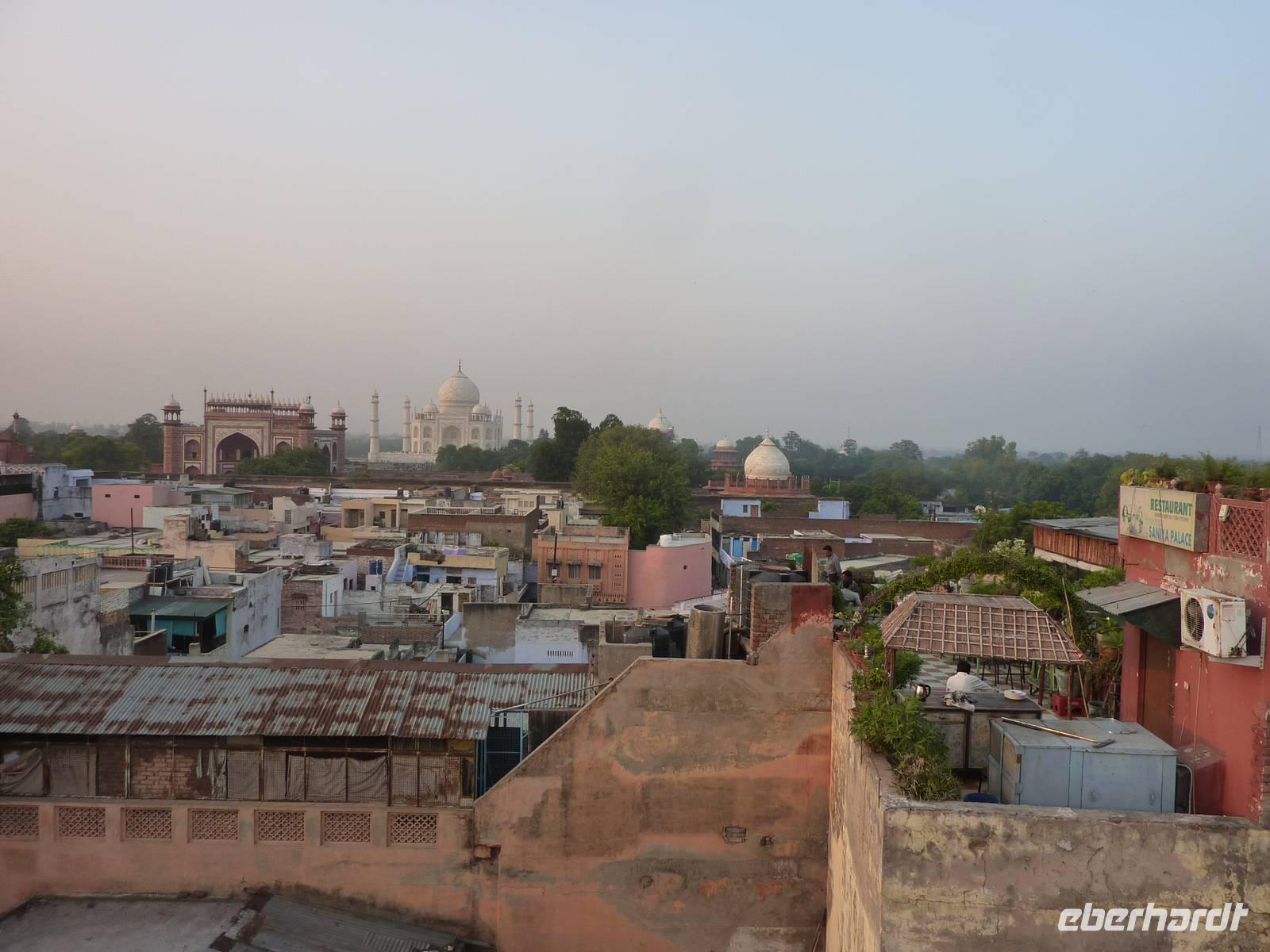 Nach dem Frühstück besichtigten wir heute zunächst das Rote Fort, sehr imposant. Mit uns zusammen taten dies noch ungefähr 1000 kleinere Schulkinder, alle in Uniform und ganz situiert. Wir waren beinahe faszinierter von der folgsamen Kindermenge als von dem Fort, was diesem allerdings Unrecht tut. Und nun stand ein weiterer Höhepunkt auf dem Plan .. das berühmte und hochgelobte Taj Mahal, ein Liebesbeweis eines Ehegatten an seine geliebte verstorbene Frau, den es seines Gleichen sucht. Nach einem geführten Rundgang mit Amit hatten wir noch Zeit, dieses imposante Werk auf uns wirken zu lassen. Am Nachmittag spazierten wir noch kurz durch Agra und kehrten in ein Geschäft alle zusammen ein. Hier kauften wir Gewürze, Tee und auch Kleidung, alles ganz in Ruhe und ohne lästigen Verkäufern. Am späten Nachmittag nach einer kleinen Pause im Hotel waren wir abermals mit Amit verabredet. Er spazierte mit uns durch die Altstadt von Agra, ein turbulentes Unterfangen, alle Inder waren im Kaufrausch, denn dieser Tage wurde das große Familienfest "Happy Diwali" gefeiert, gleichzusetzen mit unserem Weihnachtsfest. Wir genossen es abermals und endeten schließlich auf einer Terrasse hoch über den Dächern von Agra, bei Kingfischer Bier und Fingerfood mit Blick auf das Taj Mahal bei Sonnenuntergang.. incredible India (unglaubliches Indien) .. so der Werbeslogen Indiens, den ich so unterschreiben kann. Mit dem Tuk Tuk ging es dann abenteuerlich zurück zu unserem Hotel, wow, war das gut..