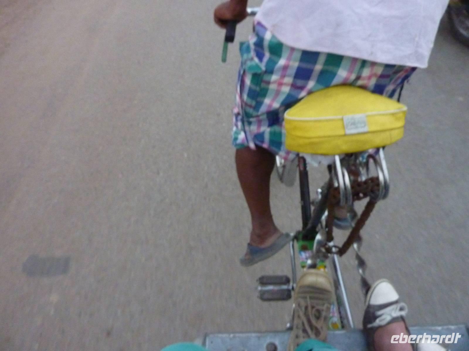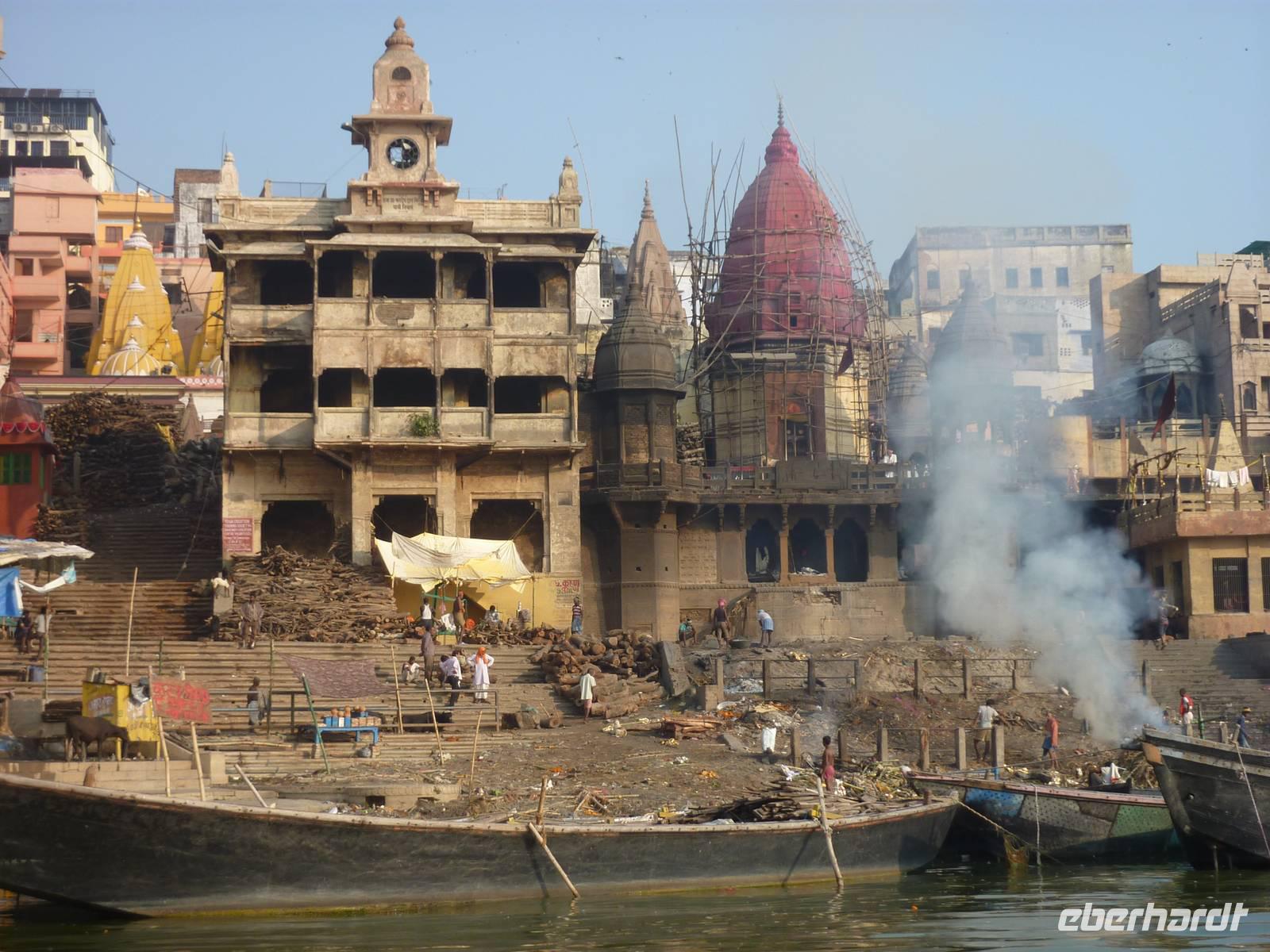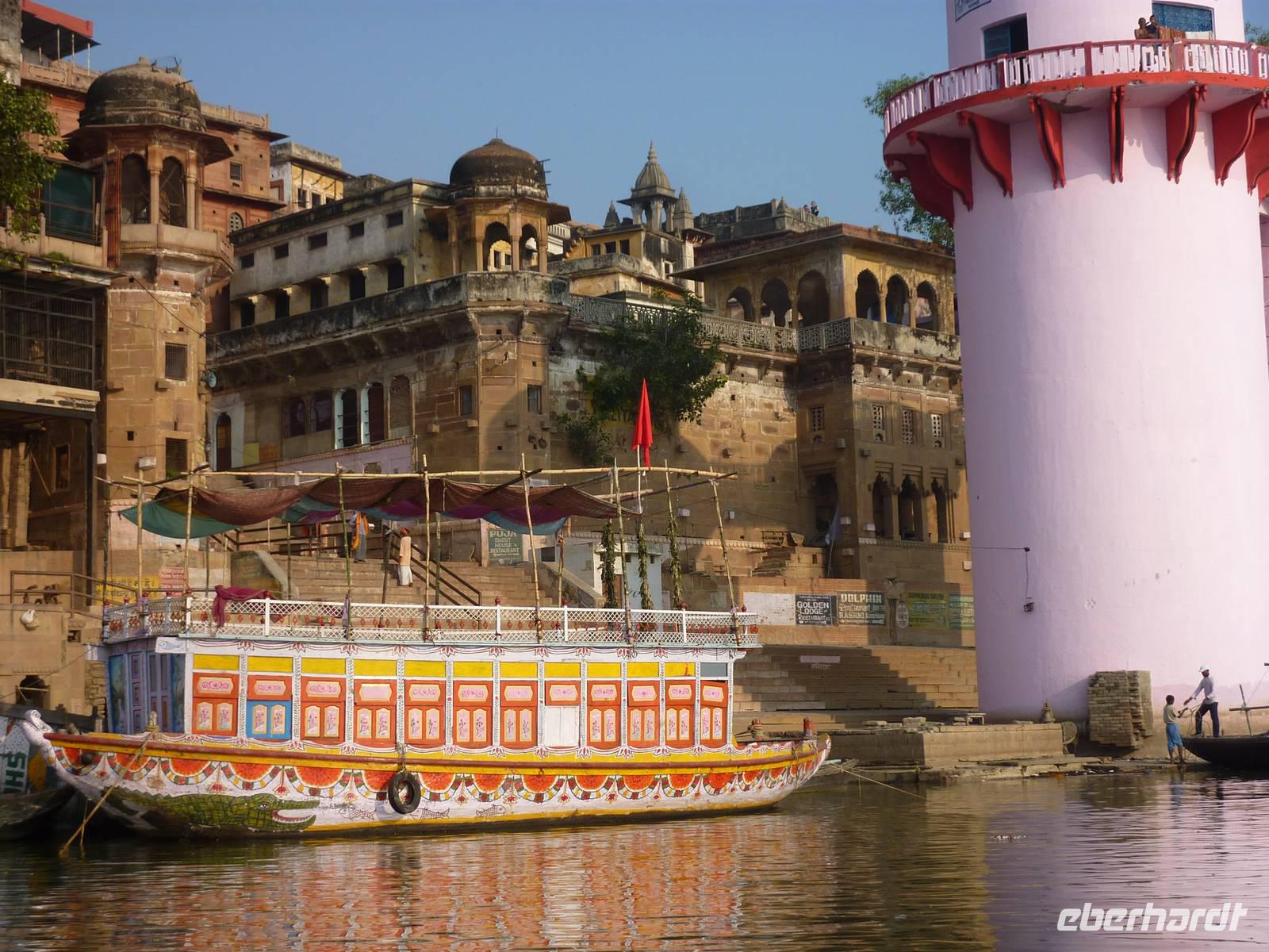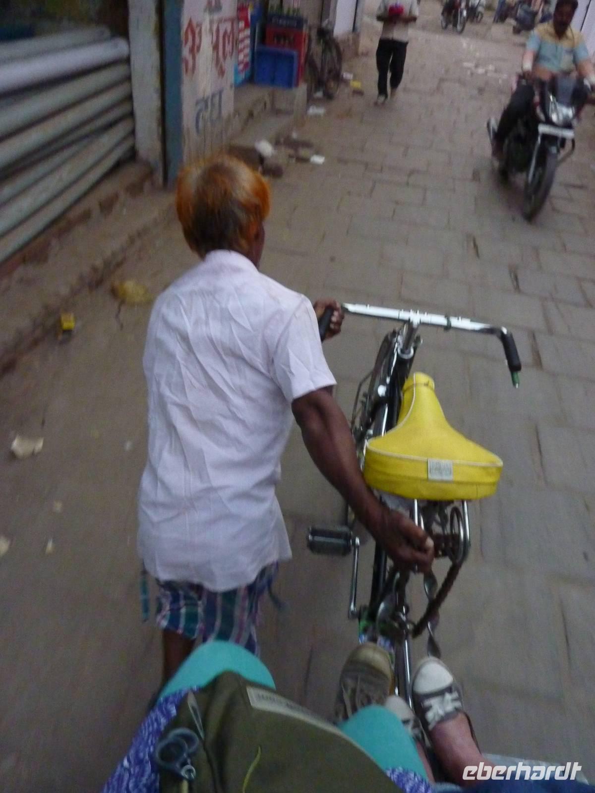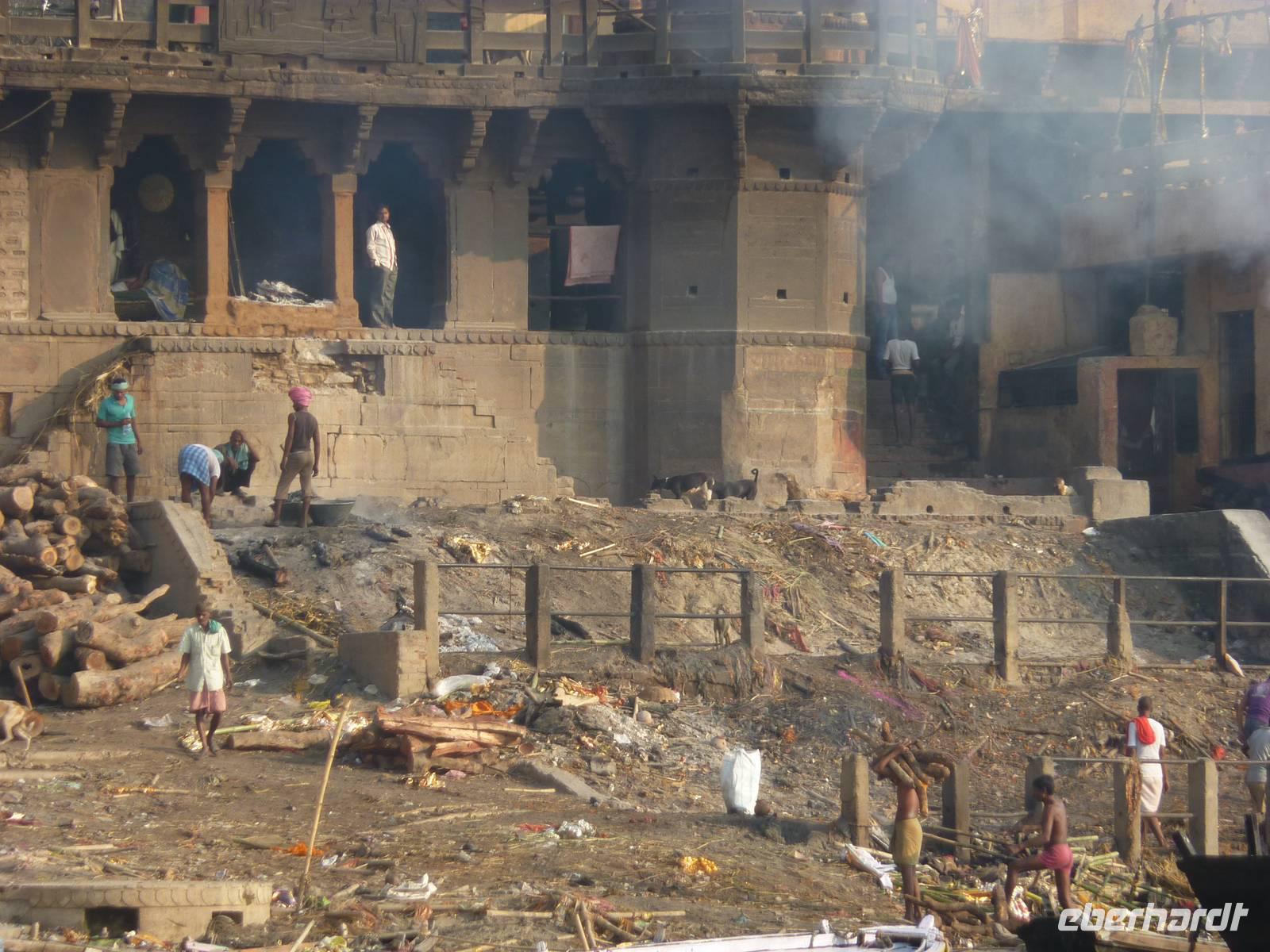 Bereits um 05.45 Uhr klingelte der Wecker, 6.15 Uhr Frühstück, naja was man zu solch nachtschlafender Zeit eben so frühstücken kann und auf zum Flughafen nach Dehli. Nach ca. 5 Stunden Busfahrt errreichten wir den Flughafen und somit unseren Flug nach Varanasi. Wir hatten alle gut gepackt, denn die Vorgabe waren 15 Kilo Aufgabegepäck, am Ende hatten wir gar noch 1 Kilo Reserve, super .. Am Nachmittag landeten wir planmäßig in Varanasi, bezogen zunächst unser 4-Sterne Radisson Hotel und gegen 17.00 Uhr machten wir uns dann auf zur Aarti Zeremonie, für mich sollte dies der bewegendste Moment dieser Reise werden. Diesmal nutzen wir eine Rikscha um ins Getümmel des Geschehens zu gelangen, abermals ein Vergnügen und zugleich Abenteuer. Im Sonnenuntergang rauschten wir so durch das Straßentreiben, welches man hier nicht in Worte zu fassen vermag.. Schließlich fanden wir uns unter Tausenden von Pilgerern wieder, die dieser allabendlichen Zeremonie beiwohnten.. und was es um so faszinierender macht, es ist nicht nur für den Touristen GEMACHTES .. es ist verdammt noch mal einfach echt.. und was das dann mit einem machte, kann man nicht in Worte kleiden, das muss man fühlen.. Sorry!! Nur so viel.. es geht unter die Haut!