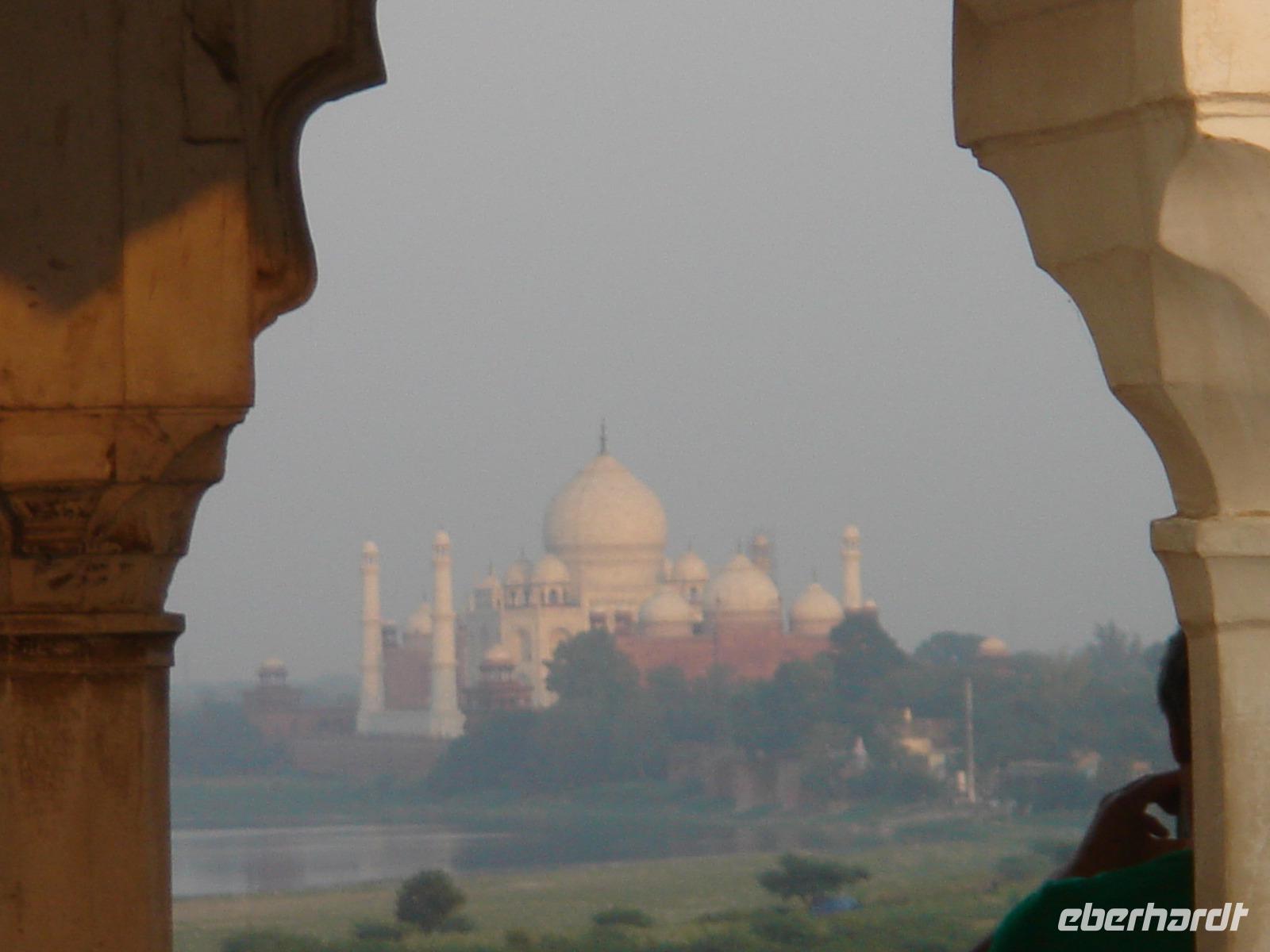 Am Nachmittag trafen wir in Agra ein, besuchten dort das Rote Fort, von dem sich uns ein erster Blick hinüber zum Mausoleum Taj Mahal bot. Dann checkten wir im Hotel ein und ließen den tag bei einem guten Abendessen ausklingen.