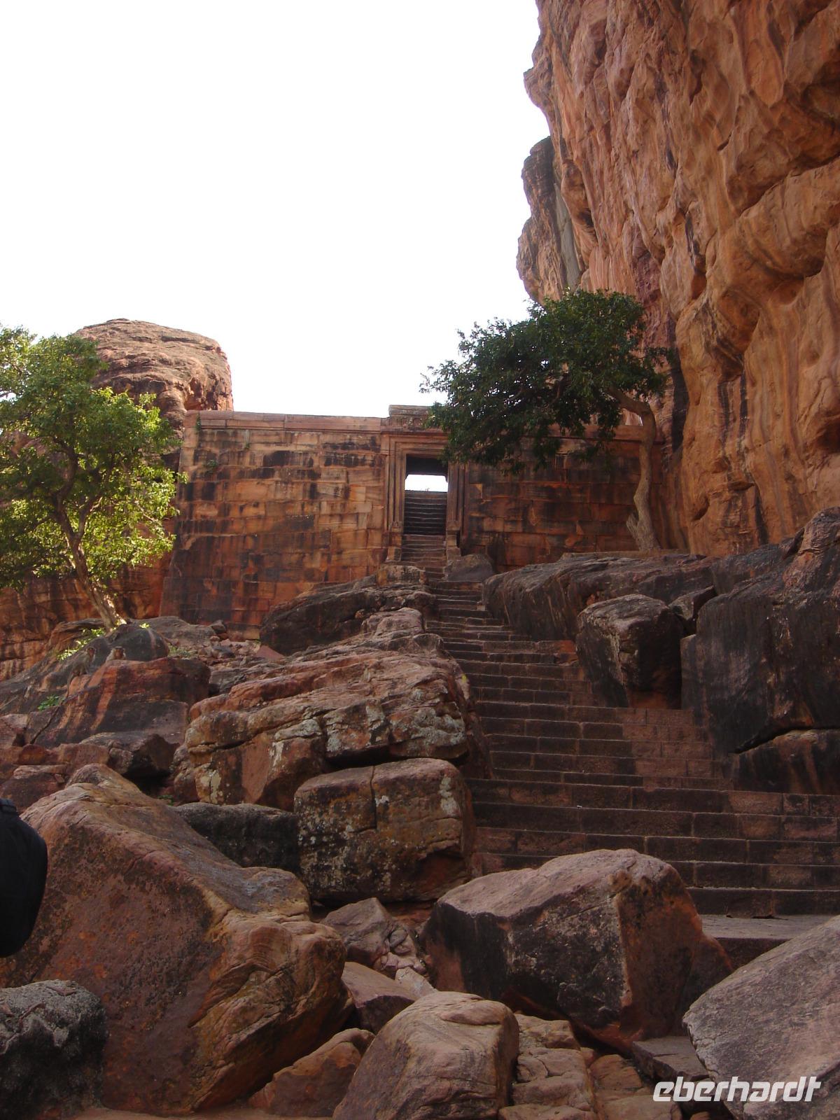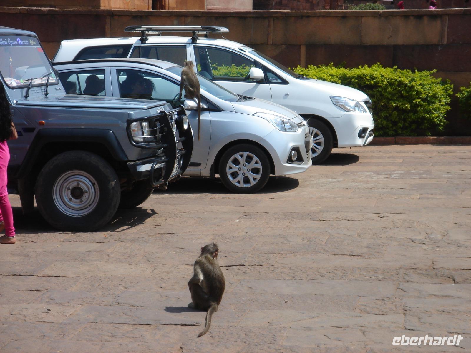 Es gibt Tage, da will man nicht aufstehen. Und es gibt Tage, da ist man schon zeitig munter. Nach dem Frühstück im Hotel starteten wir und fuhren gen Badami, wo wir uns am Vormittag die umfangreiche Tempelanlage anschauten, zusahen, wie Affen die Autos am Parkplatz eroberten, aus einem sogar eine Brieftasche stahlen, dazwischen ein schwarzes Schwein herumlief und die Armee den Zugang zur Tempelanlage überwache, dabei jedoch nichts gegen Menschen unternahm, außer die Eintrittskarten zu kontrollieren. Sie sorgten eher dafür, dass die Affen nur in kleiner Zahl in die Tempelanlage eindringen konnten. Nach dem Erlebnis der Buddhagrotten in Gwalior dachten wir, noch interessanter kann es kaum werden. Nun jedoch sahen wir direkt in den Felsen gehauene Tempel mit mehreren Räumen, Verzierungen und vielen Statuen. Zu Füßen des Berges der Tempel sahen wir den alten Palast und den davor angelegten künstlichen See. So viele Eindrücke machen Appetit und wir checkten schon einmal im Hotel ein, ruhten uns nach dem schnellen essen etwas aus und brachen zur Besichtigung der nächsten Tempelstadt in der Nähe auf, fotografierten gefühlt mehr als all die Tage vorher und kehrten am Abend voller neuer Eindrücke ins einfache, aber völlig ausreichende Hotel zurück.