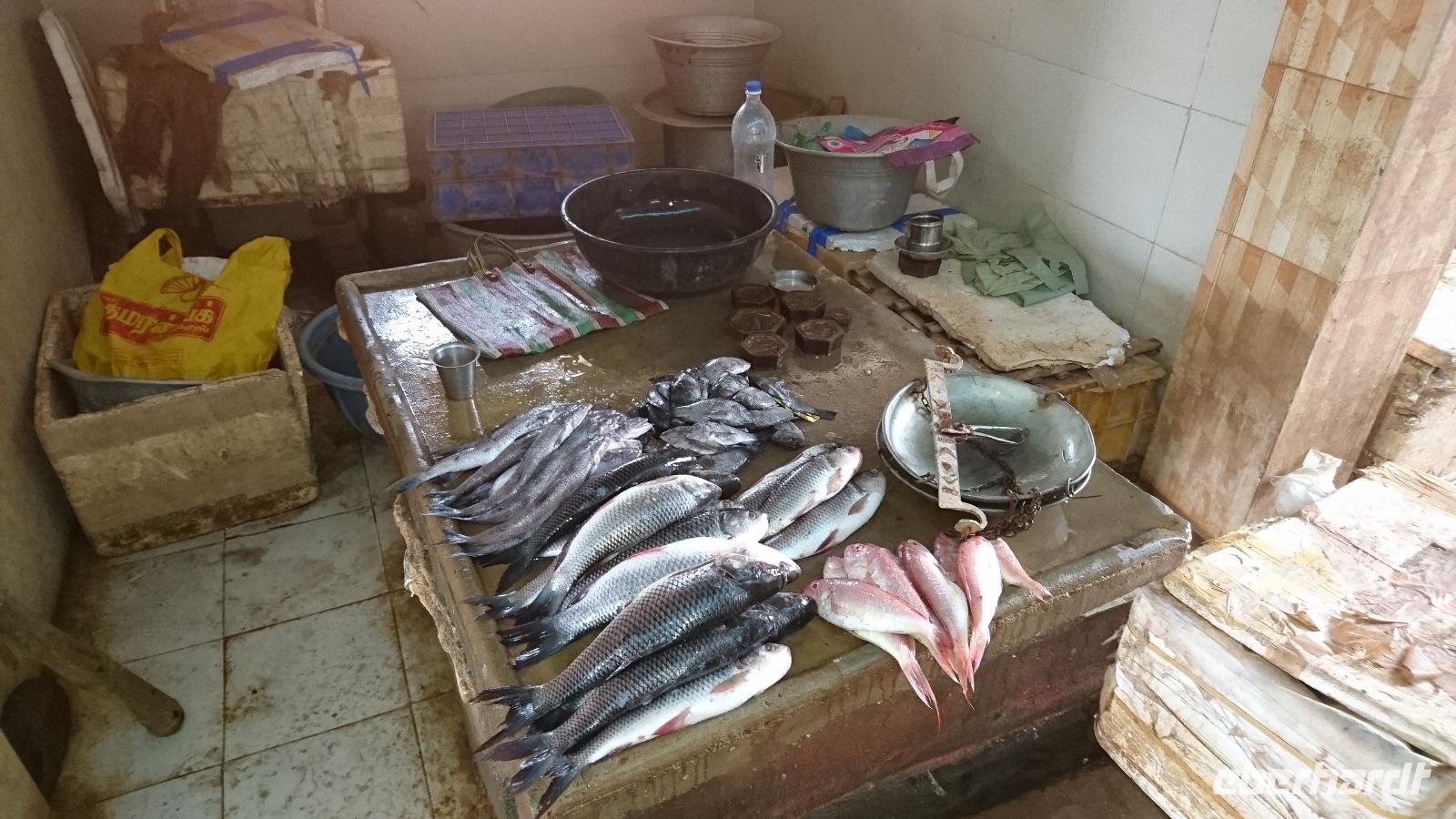 Bisher waren es 3,5 Stunden, die wir in Indien der deutschen Zeit voraus waren. Heute jedoch wurde in Deutschland mitten in der Nacht von Sommer auf Winterzeit umgestellt und nun waren wir eine ganze Stunde mehr voraus. Nicht schlimm eigentlich, denn da wir abends nie zu zeitig im Hotel eintrafen, dort oft auch WLAN zur Verfügung hatten, konnten wir in Deutschland so anrufen oder nach Hause schreiben, dass unsere Kommunikationsversuche am Nachmittag dort ankamen. Sieht man sich Indien auf einer Weltkarte an und erkennt seine Größe, stellt sich die Frage ein, wie all dies in nur einer Zeitzone machbar ist. Doch man gewöhnte sich in Indien über Jahrzehnte daran und kann aus dem Südosten im Nordwesten irgendwann zur Bürozeit anrufen und wird immer jemanden erreichen. Außer, es steht ein regionaler Feiertag an. Doch dem war derzeit nicht so. Das ganze Land feierte immer noch mit Umarmungen und Konsum das Diwali-Fest. Somit fuhren wir nach zeitigem Frühstück zum Flughafen und landeten am Vormittag in Kochi. Vier unserer Gäste haben ein Patenkind in der weiteren Nähe unseres heutigen Flugzieles und so hatten wir für sie organisiert, dass sie dieses Patenkind heute einmal besuchen können. Das klappte prima. Wir anderen besichtigten derweil die Franziskuskathedrale mit dem Grab Vasco da Gamas, danach den portugiesischen oder auch holländischen Palast, danach den Fischmarkt und die chinesischen Fischernetze, die so konzipiert wurden, dass sie im Gezeitenwechsel fast von allein Fische fangen können. Am Abend ging es zu einer mehr mit Gesten betriebenen Tanzvorführung in einem hiesigen Theater. Die Handlung war ein Kampf zwischen Göttern und wir wunderten uns nicht schlecht, dass am Ende gar einer der Götter starb. Dabei ist das ein ganz normaler Zustand, denn Götter werden wiedergeboren. Wenn dies nun einmal so ist, müssen sie auch irgendwann sterben. Dann ging es zum wohl verdienten Abendessen ins Hotel und ein weiterer langer und ereignisreicher Tag ging zu Ende.