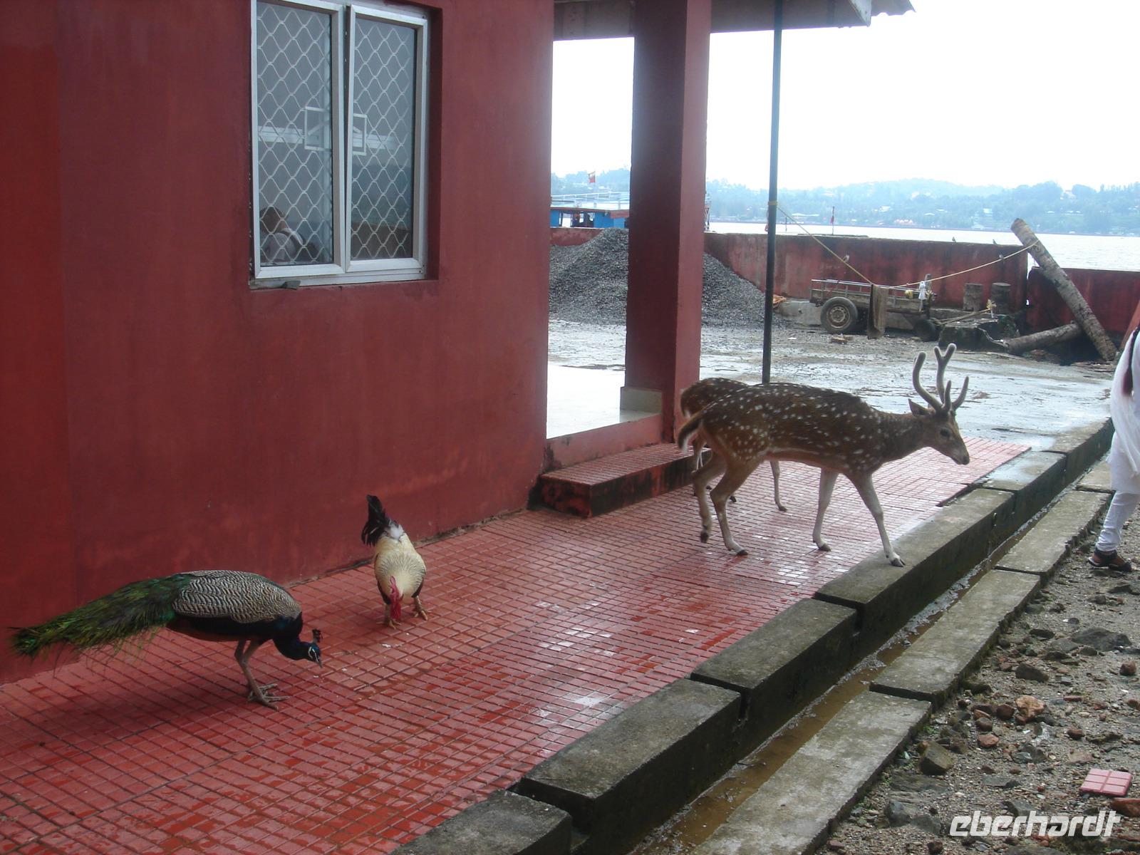 Die Engländer besetzten einst ebenso die Andamanen wie ganz Indien. Auf Ross Island, einer kleinen Insel inmitten der Andamanen, bauten sie sich ihre militärisch-zivile Residenz. Vorher streckten auch die Maharadschas die Hand nach den Inseln aus. Später kamen Japaner, heute ist alles demokratisch verwalte und Bestandteil Indiens. Einstige Gebäude der Engländer wurden nicht abgerissen und man sieht an ihnen sehr gut, wie sich die Natur alles zurück holt. Überwuchert vom Urwald steht all dies da und ist interessant anzuschauen. Hasen und Rotwild, Pfaue und viel anderes Getier lebt auf der Insel, die wir mit einem zweietagigen Holzboot erreichten. Von da ging es weiter nach North Island, wo einige von uns einen Unterwasserspaziergang wagten, während der Rest den kleinen Markt und die Essstände nutzten. Später fuhren wir alle wieder gemeinsam nach Port Blair, ins Hotel zum Abendessen und zum Ausruhen.