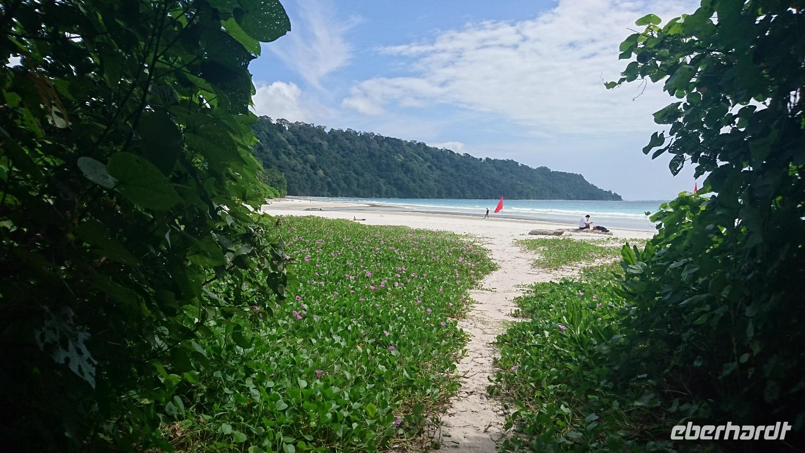 Der längste Strand der Welt? Man mag es vielleicht nicht glauben, aber wenn man ihn sah, ist man etwas offener für diese Aussage. Mit dem Schnellboot fuhren wir nach Havelock Island, durchquerten die Insel, sahen dabei die vielen Tsunamispuren von vor zwölf Jahren und erreichten schließlich den Strand, an dem man jedoch nicht lange liegen konnte. 80% Luftfeuchte und 35 °C verboten dies. Ein Sprung ins Indische Meer jedoch musste trotzdem sein. Dies war ein richtiger Tag zum Entspannen und wir kamen nicht zu spät im Hotel an. Vor dem Abendessen ging es noch ins Gefängnis, um dort die versprochene Light- & Sound-Show zu erleben. Darin wurde die Geschichte des Gefängnisses und des Widerstandes der Inder gegen ihre jahrhundertelange Besetzung durch verschiedene Volksgruppen interessant dargestellt und kommentiert. Gerade wieder munter ging es nun zurück zum Hotel und zum Abendessen, das uns wieder müde machte. Zwar saßen wir am Abend noch ein paar Minuten beisammen, aber wir mussten trotzdem schnell ins Bett.