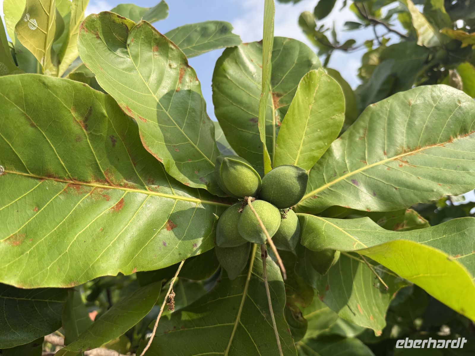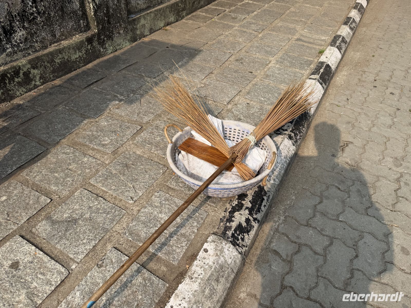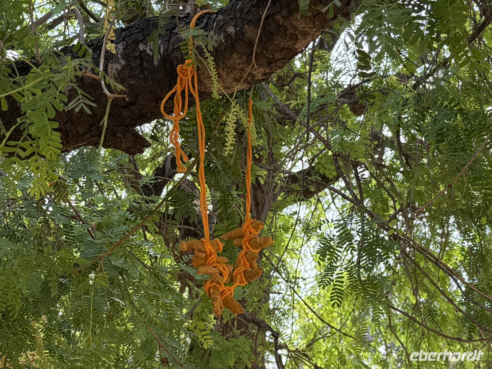 Heraus laufen wir durch den Gopuram an einem riesigen Seidenbaum vorbei ins Dorf. Eberhardt Travel spendiert eine frische Kokosnuss und unsere Tour geht weiter.