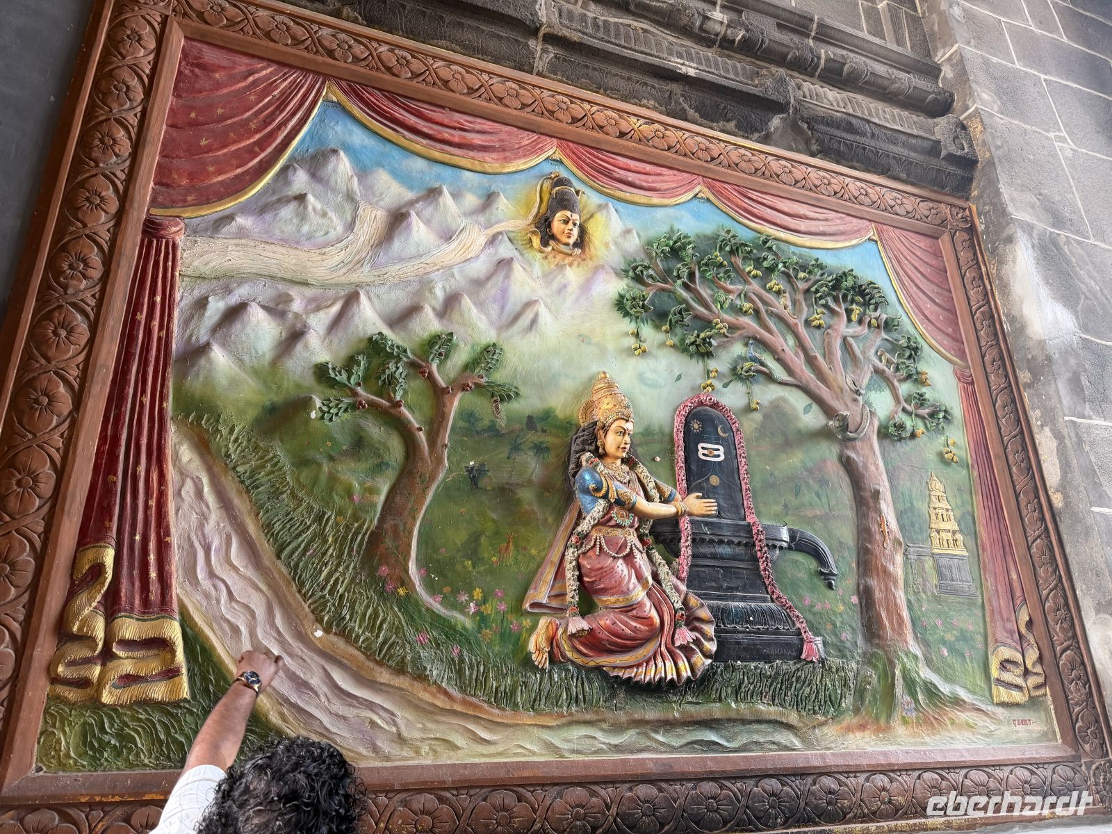 Laut der Legende formte Parvati unter einem alten Mangobaum ein Lingam aus Sand, um Shiva zu verehren. Shiva jedoch prüfte Parvati und schickte Feuer und eine Flut. Parvati jedoch schützte das Lingam durch eine Umarmung. Shiva daraufhin segnete Parvati.