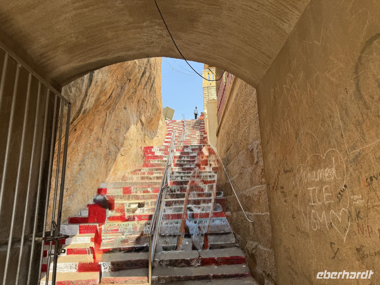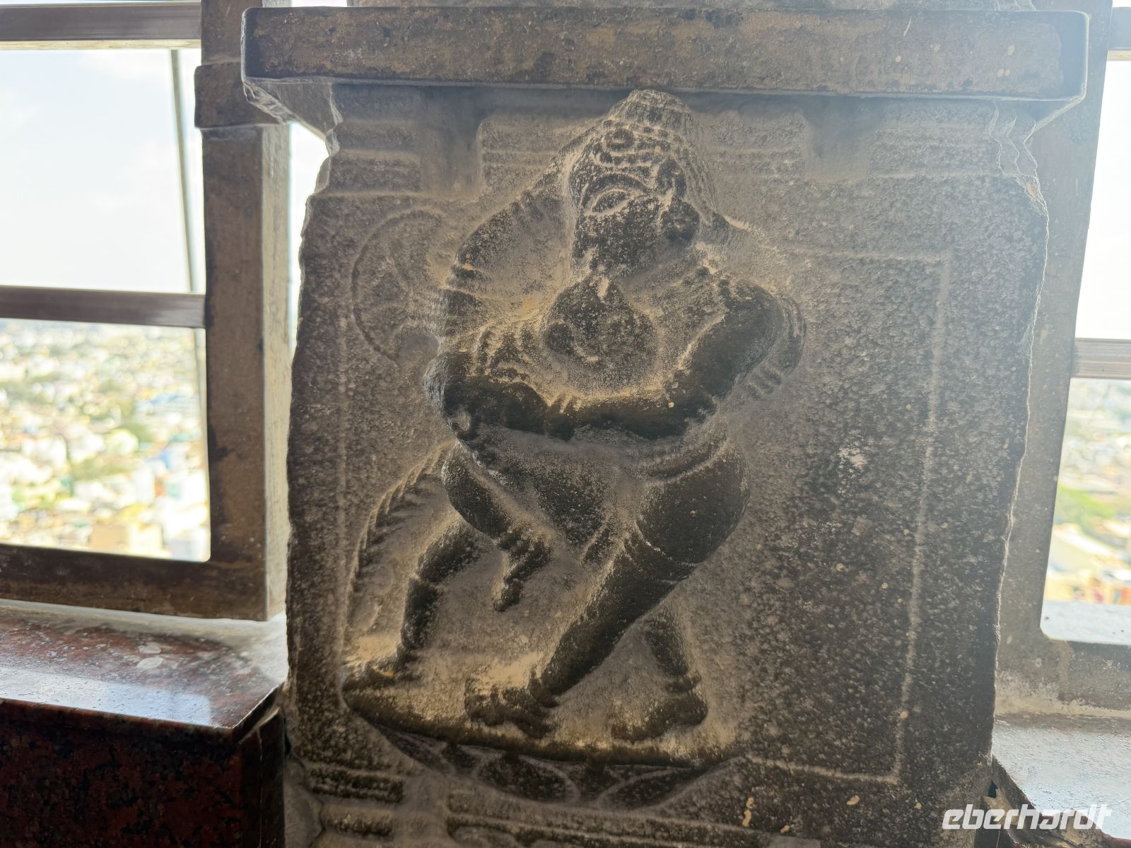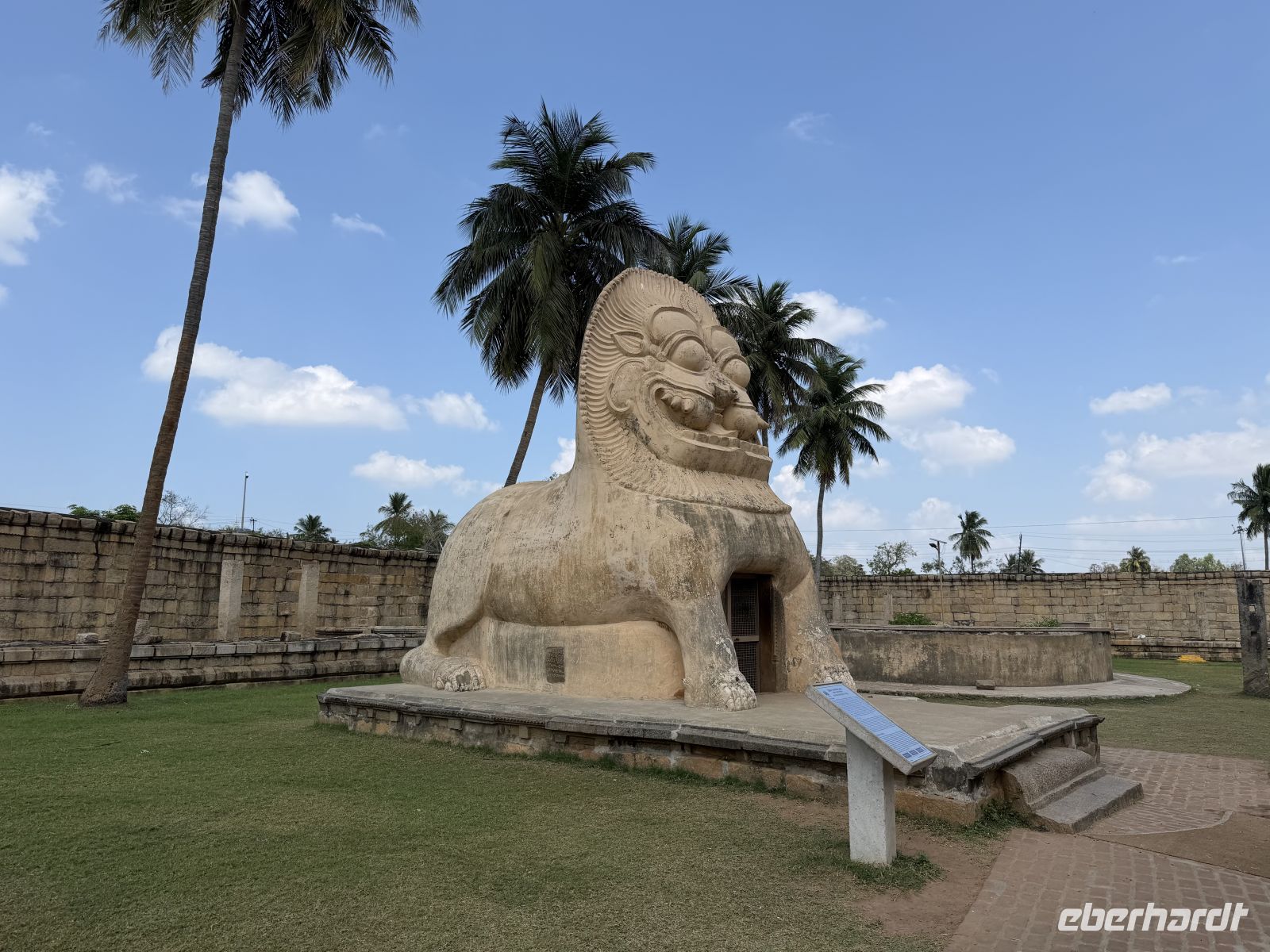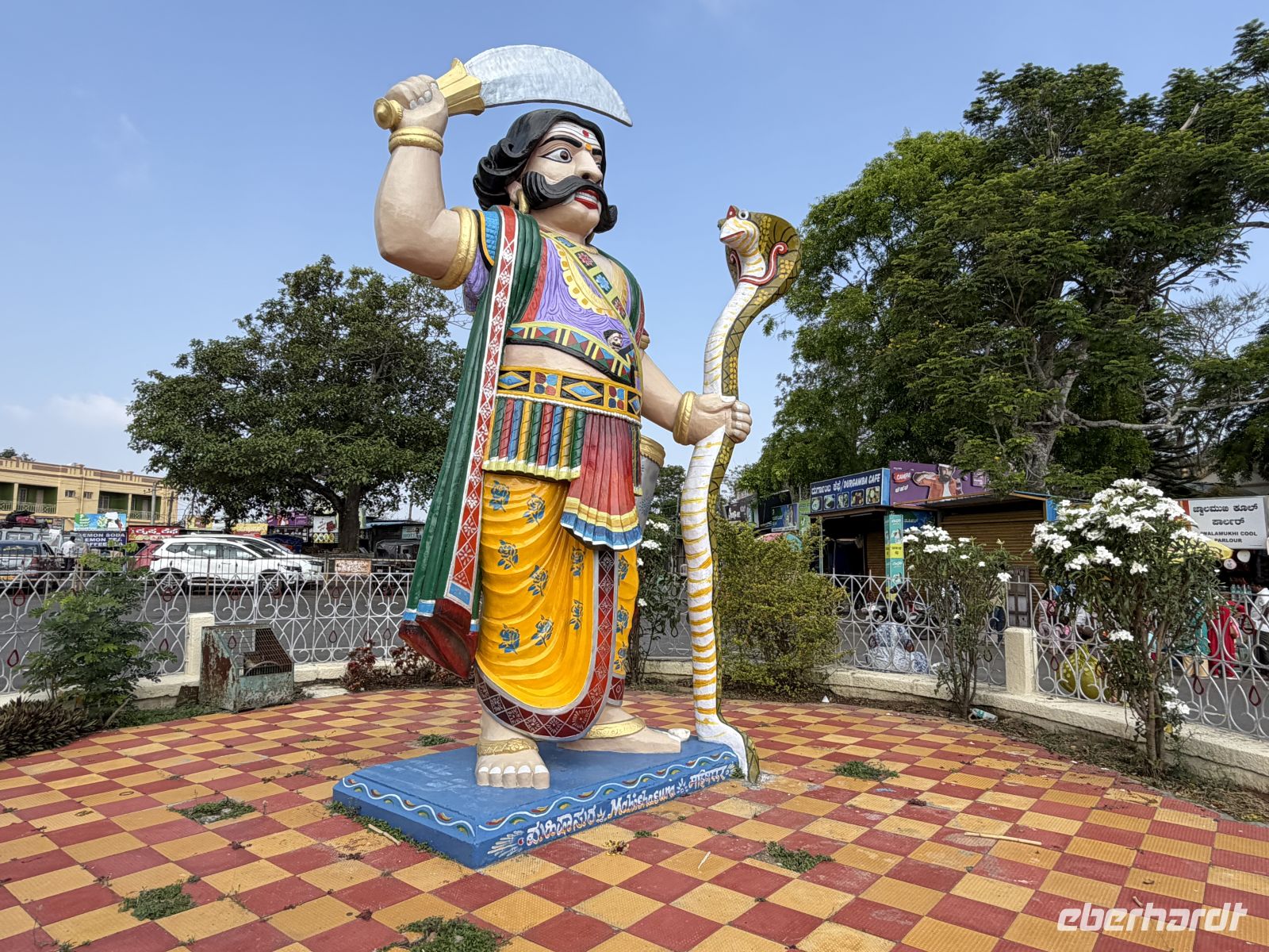 Check-out im Hotel und los geht es auf den Chamundi-Hügel (1063 m) am heutigen Tag. Die Fahrt hinauf auf den Berg ist mit einer großartigen Aussicht auf die Stadt Mysuru verbunden. Uns begrüßt am Eingang des Geländes Bhawani als besiegter Dämon, Mahishasura. Die Statur sieht aus wie unser Reiseleiter, rundes Gesicht und Schnurrbart. Was soll uns das wohl sagen..:)))