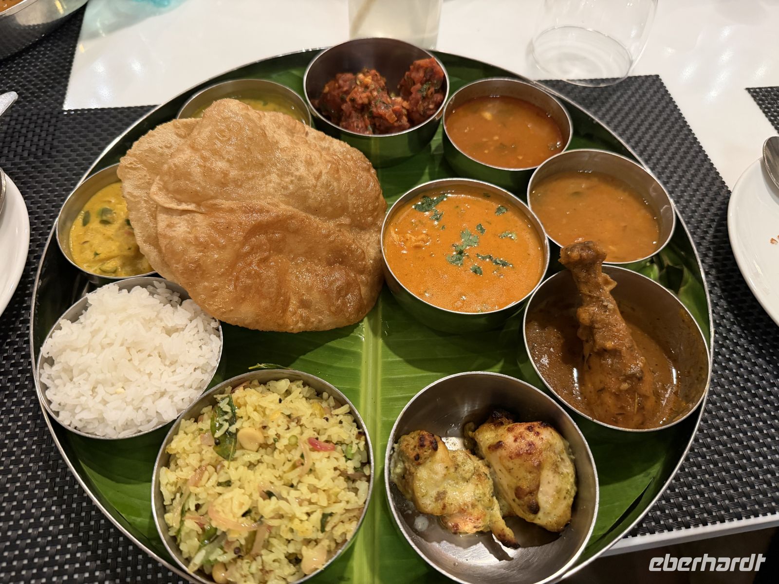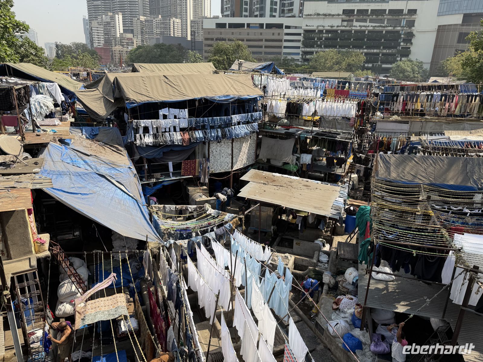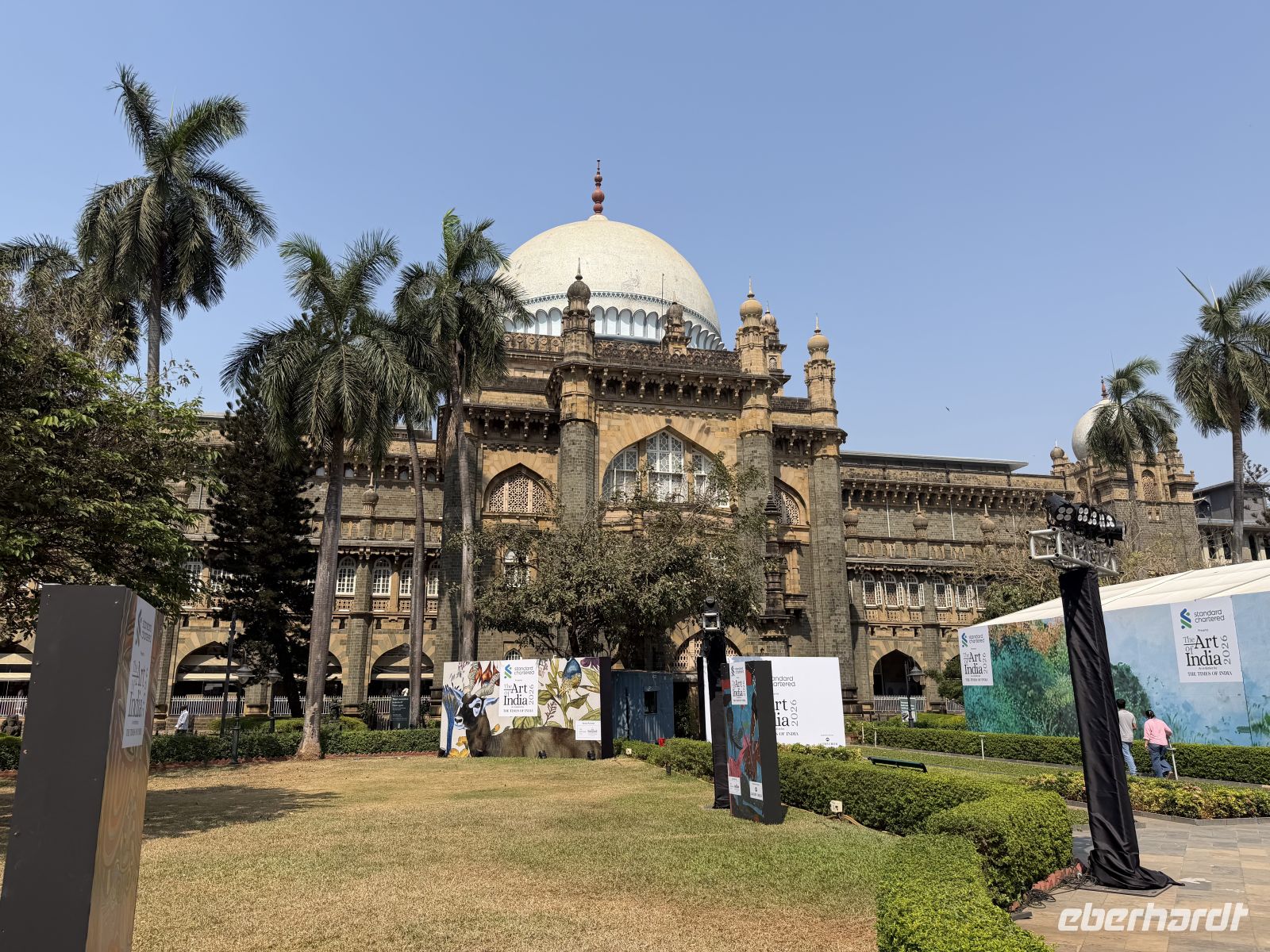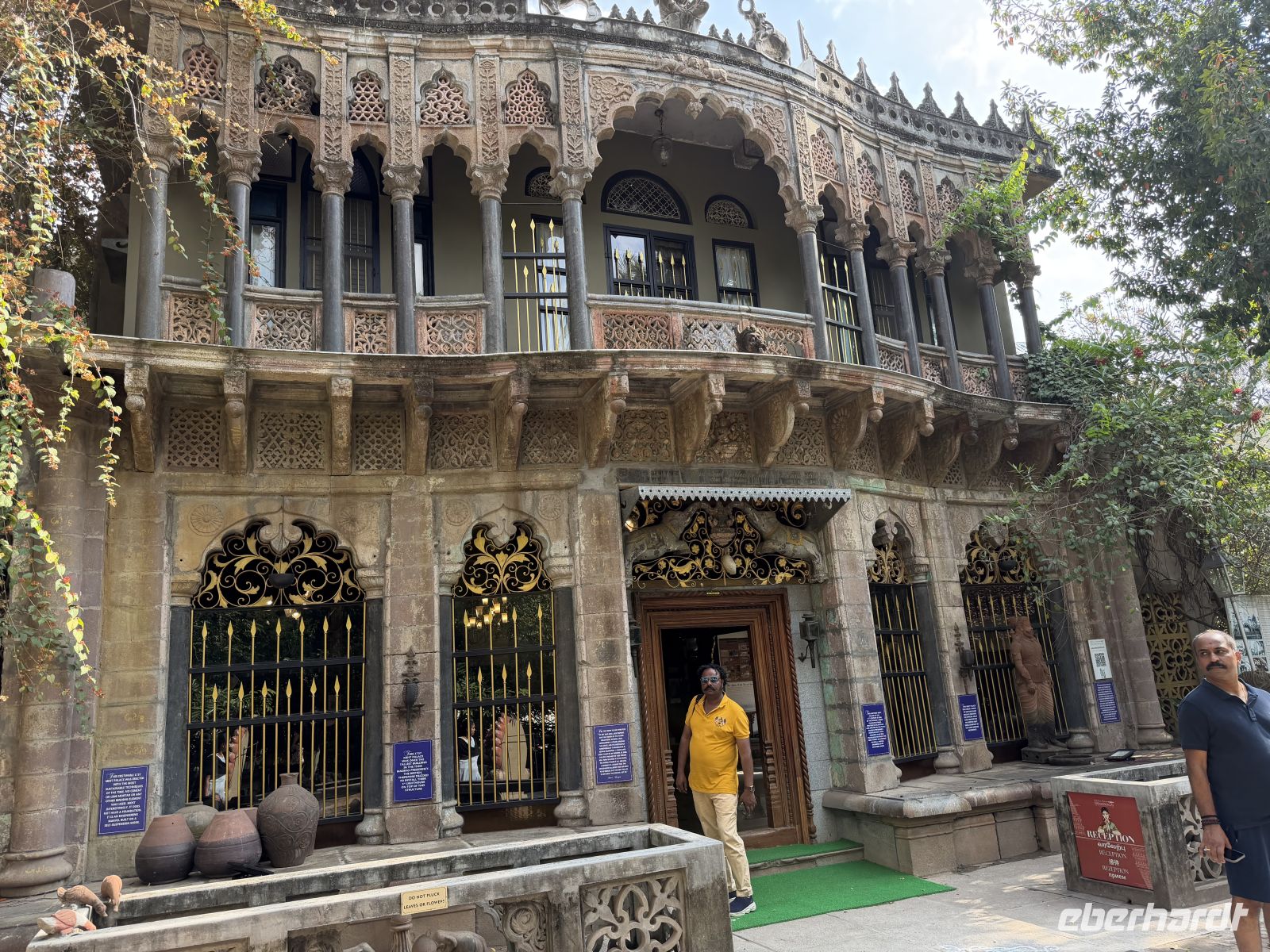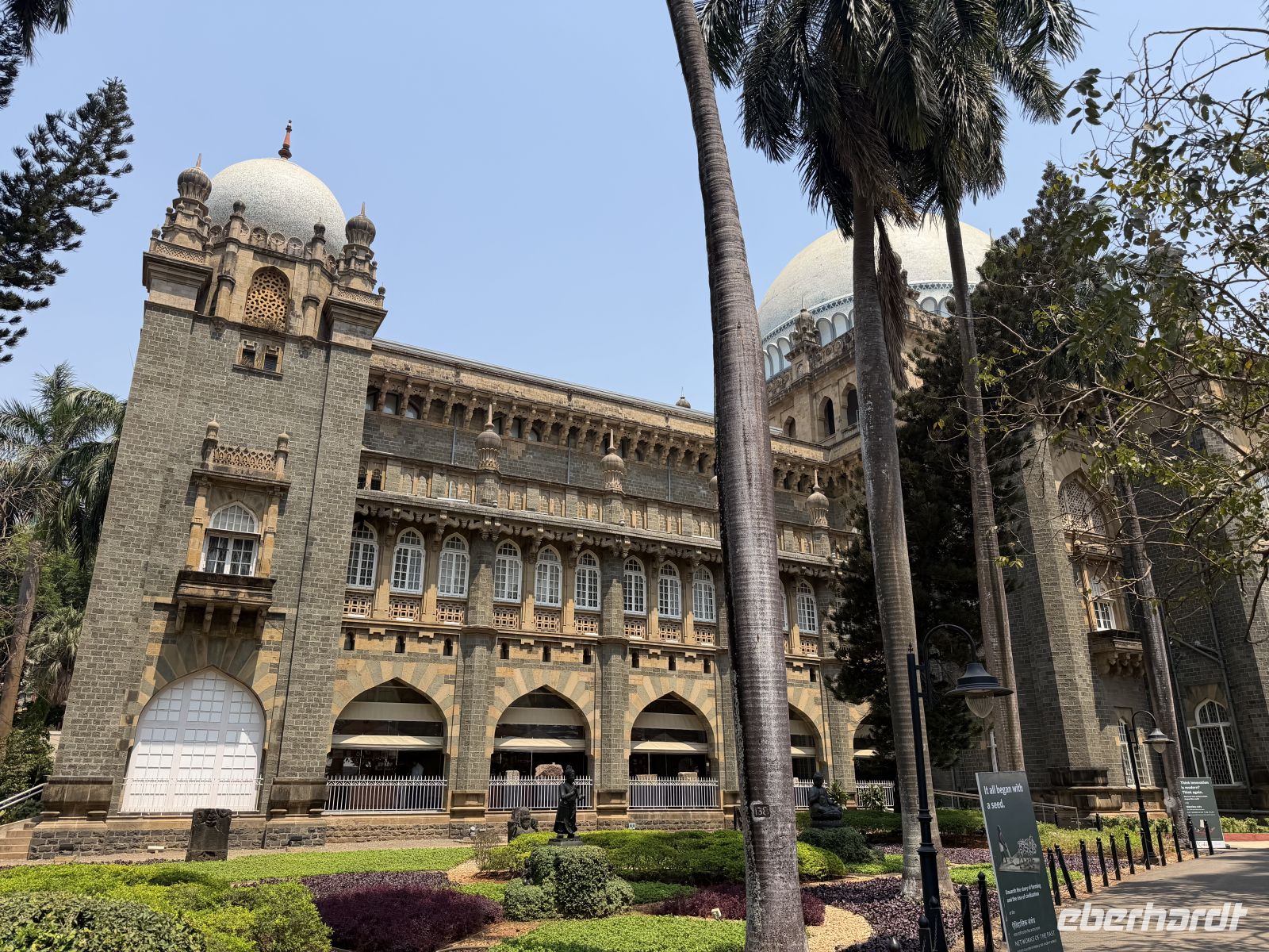 Der Morgen beginnt mit einem leckeren Frühstück. Entspannt, beginnen wir gegen 9:00 Uhr unsere Sightseeingtour durch die Metropole Mumbai. 12,5 Mio Menschen leben im Stadtgebiet und über 22 Mio. in der Metropolregion. Eine Mischung aus Kolonialarchitektur, Meerespromenade, Tempel, Märkte, Bollywood und moderner Skyeline umgibt den südlichen Teil der Stadt mit den Sehenswürdigkeiten unseres Programms. Im Bundesstaat Maharahtra ist die Stadt „City of Dreams“ 1996 von Bombay, (Ableitung des Namens von der Götting Mumba Devi) in Mumbai geändert worden. Über den Marine Drive geht es zum Malabar Hill. Wir spazieren durch den Park und sehen die Schwarzmilane über dem Parsi Tower of Silence kreisen. Hier dürfen wir leider nicht näher ran. Die Aussicht auf die Stadt Mumbai vom Jains (Händler) Viertel ist ein wenig vom Dunst verdeckt. Die Fahrt stoppt als nächstes an den Dhobi Gahts, dem größten open air Waschplatz der Welt. Fasziniert vom Einblick in Mumbais Arbeitswelt schießen wir unzählige Fotos. Weiter geht es an Slams vorbei zum Treffpunkt der Dabbawala am Churchgate. Wir schauen zu, wie Taschen mit guten Kennzeichnungen, gefüllt mit Henkelmännern und Restaurantspeisen sortiert werden, um sie dann dem Empfänger zukommen zu lassen. Wir besteigen unseren Bus wieder und fahren vorbei am Gerichtshof zum Fotopoint der viktoriansch-gotischen Gebäude - dem Rathaus und der Victoria Station. Mitten im Straßenverkehr ist eine Insel für die Touris gebaut, um die Gebäude zu bestaunen. Nächster Stopp ist die alte Residenz von Mahatma Gandhi. Das Haus ist ein Museum und zeigt Etappen aus seinem Leben. An der verkehrsreichen Straße vor dem Prince of Wales Museum gegenüber der Uni lässt der Bus uns raus. Wir haben nun 1,5 Stunden Zeit uns das Museum genauer anzuschauen, aber auch der Bau selbst ist wunderschön. Puh, wir brauchen mal ne Pause.