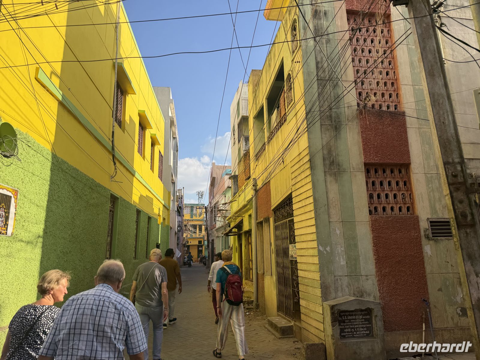Pondicherry, Altstadt mit französichem Charm– Yogi– Meditationszentrum– Aurobindo Ashram – Rikschafahrt