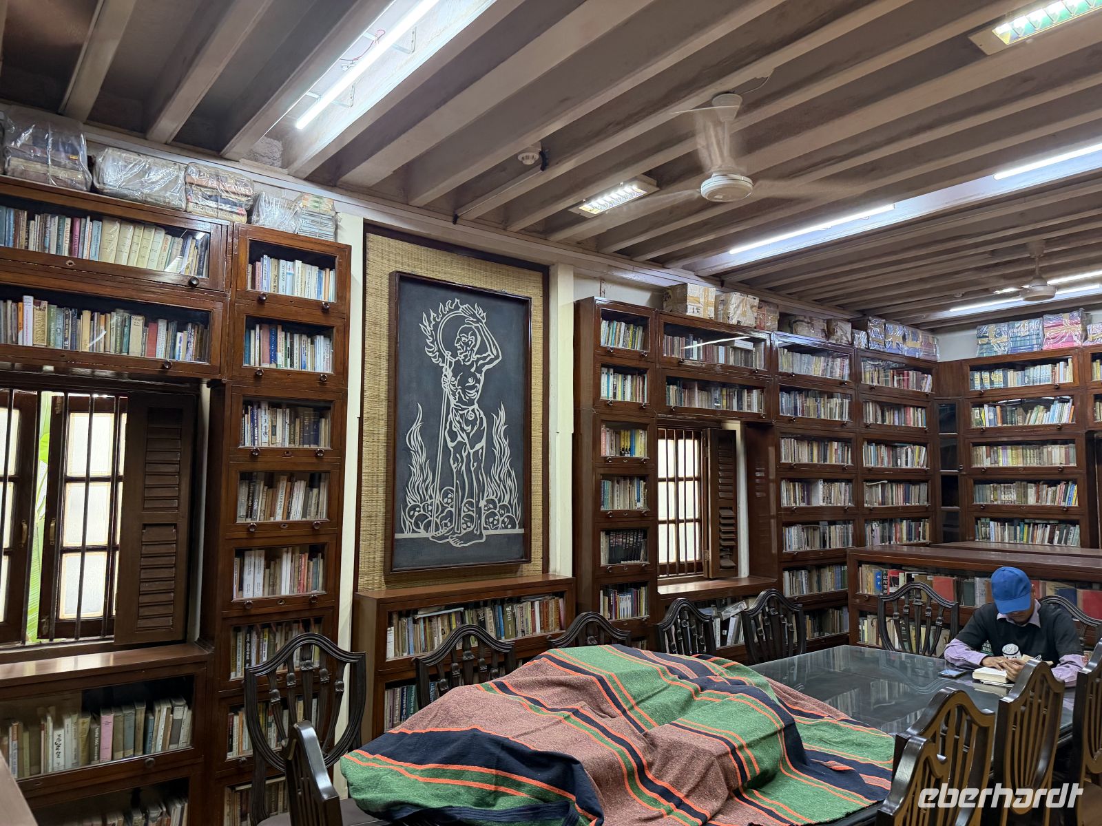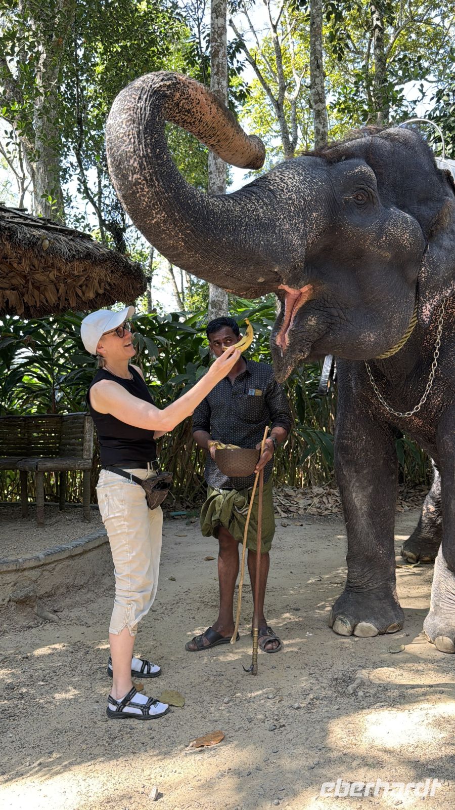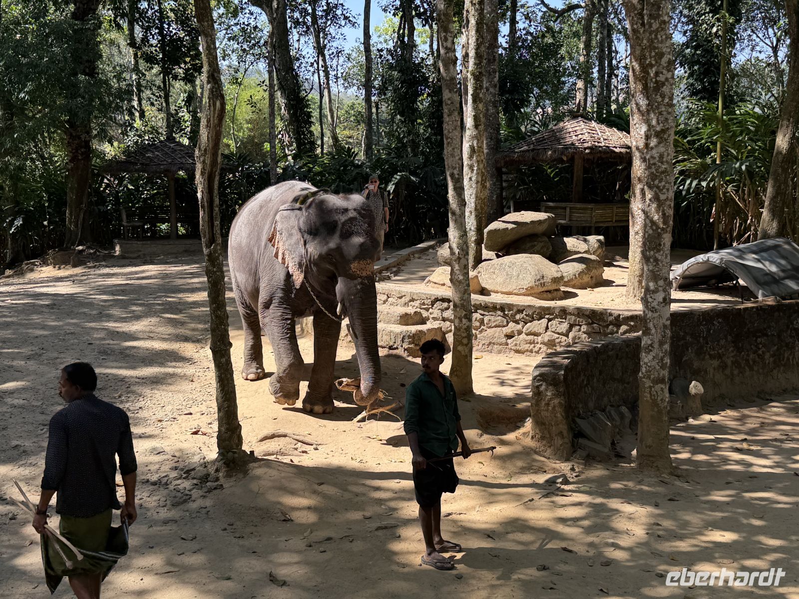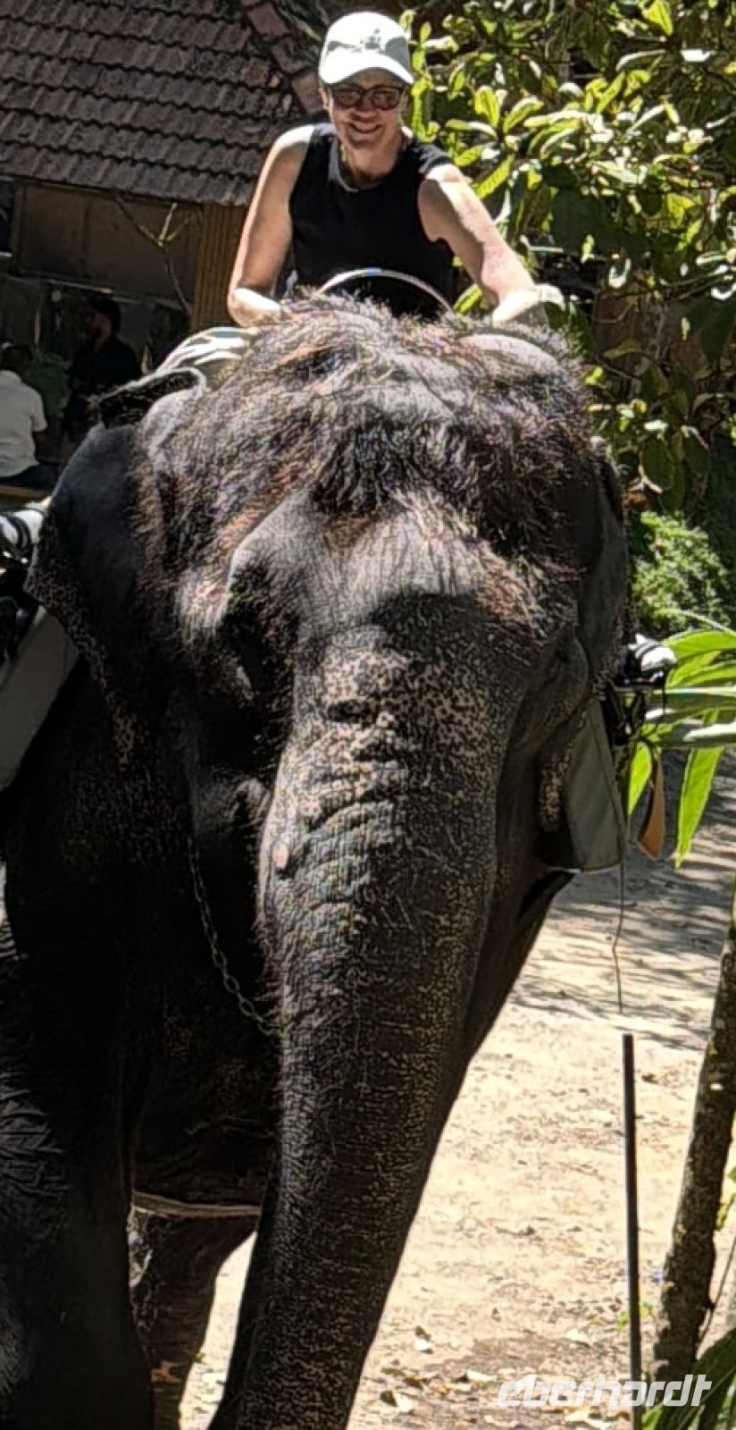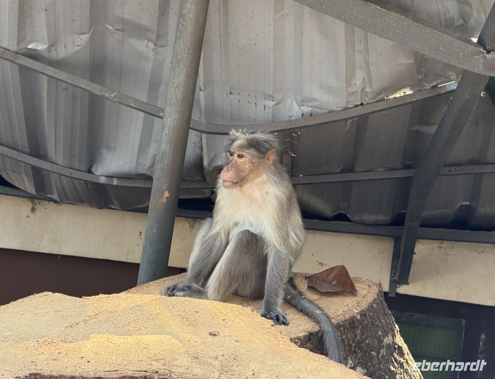 Berge, wir fahren in die Berge! Die Western Gaths ist eine Gebirgskette an der Westküste Indiens und vor Millionen von Jahren durch das Abspalten von Gondwana-Superkontinent entstanden. Unser Ziel ist der Periyar Wildlife Park in den Kardamom Hills mit seinem künstlich angelegten See durch die Briten 1895 als Wasserreservat. Heute leben viele geschützte Wildtiere dort auf 777 qkm. Die Fahrt ist lang und wir verlassen Tamil Nadu und begrüßen Kerala. Erst haben einige von uns eine Elefanten Tour gebucht. Wir fahren mit dem Jeep zur Elefant Junction. Meenakshi heißt die große 22-jährige Elefantendame, die uns auf ihrem Rücken durch die Station trägt. Zur Belohnung bekommt sie nachher Bananen von uns zugesteckt. Ruhig und gelassen darf sie nach unserem Ritt in die Pause gehen. Wir haben allerdings nun noch den Termin im Park zur Bootsfahrt. Mit dem Sammelbus geht’s zum Anleger. Wir haben feste Plätze auf dem Boot und zeihen brav die Schwimmwesten an. Die Boote legen ab und gleiten über den See. Rechts und links erblicken wir Hirche, wild Rinder, verschiedenste Vogelarten und da, ein Elefantenbulle, weitere Tiere und weitere Elefanten. Die Ranger machen mit ihren Ferngläsern wunderbare Fotos mit unseren Kameras. Zufrieden mit den Beobachtungen fahren wir nach 1,5 Stunden wieder ins Hotel. Im Nachgang, unser bestes Hotel, superfreundliches Personal, Top Buffet und freche Affen, die uns ein lächeln ins Gesicht zaubern.