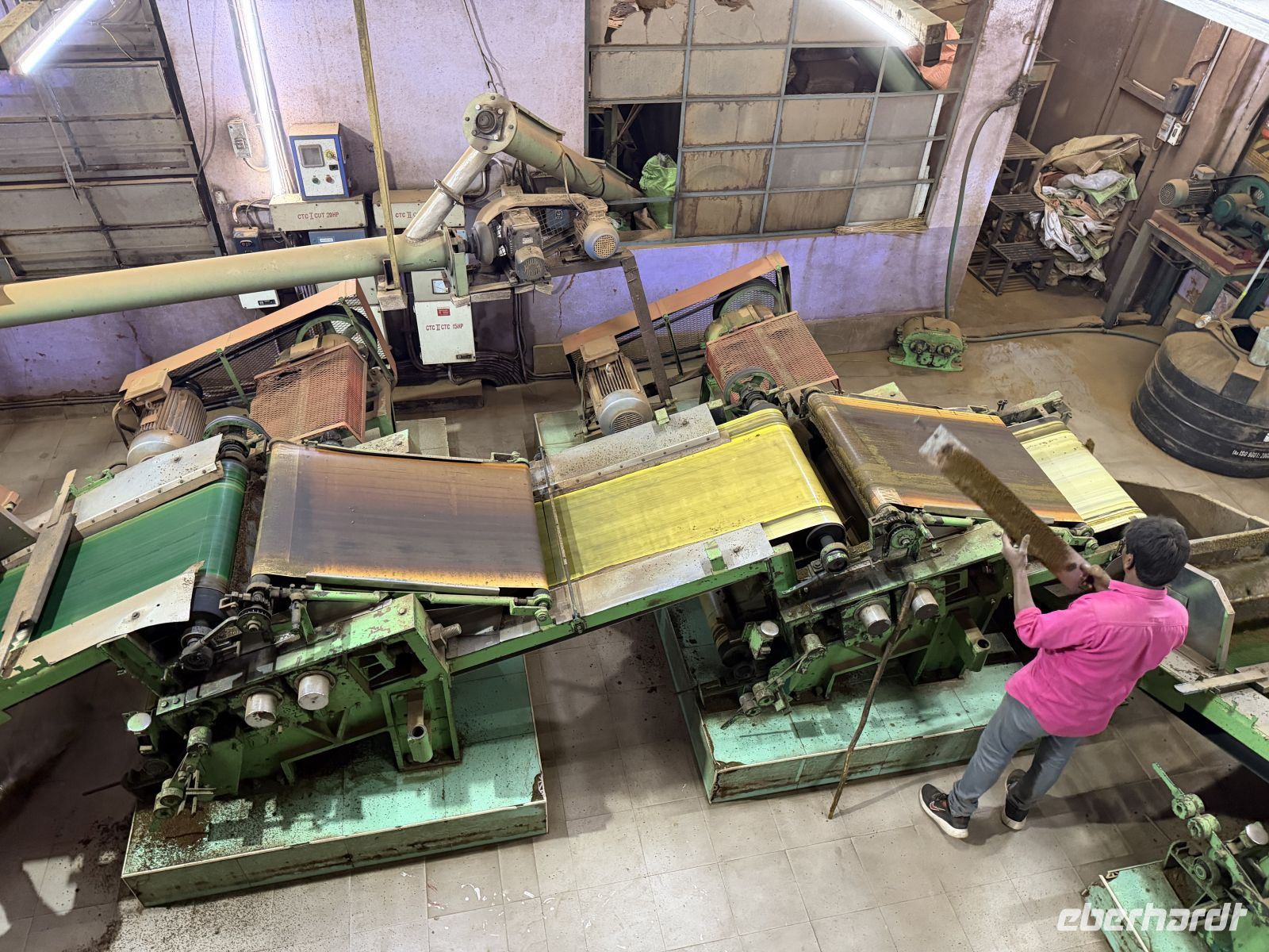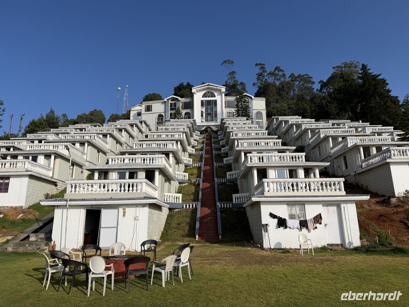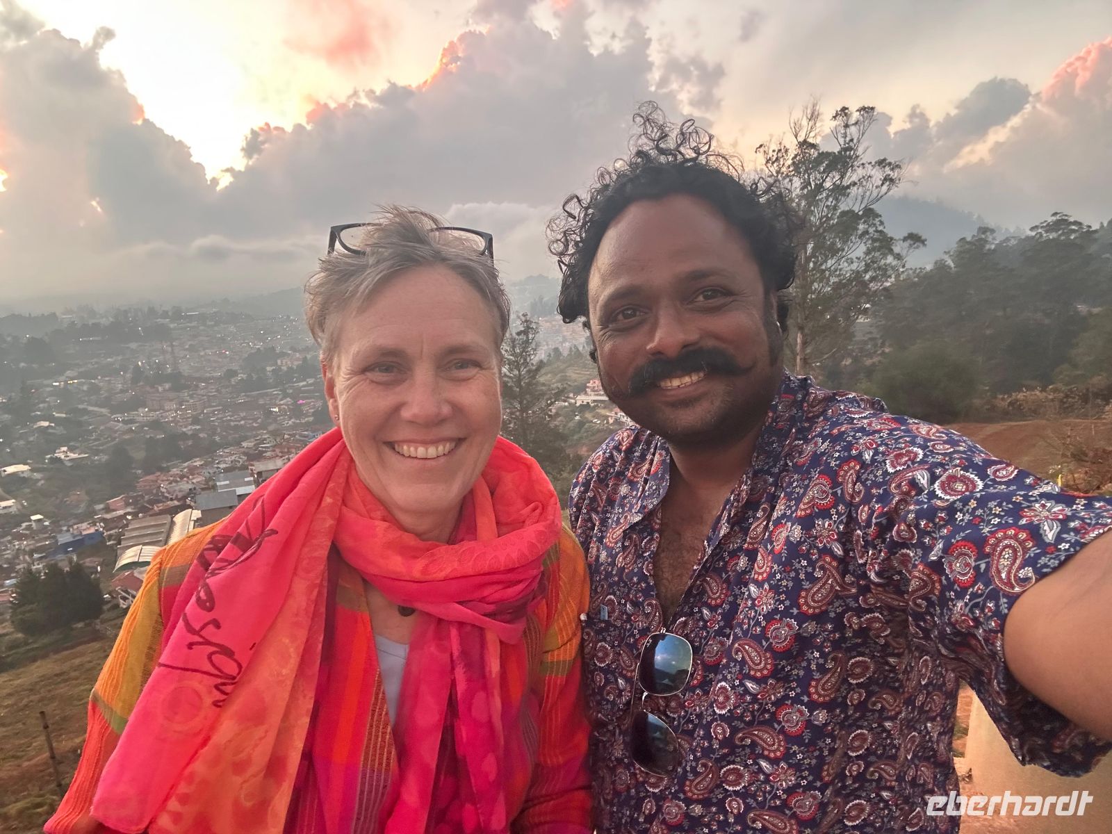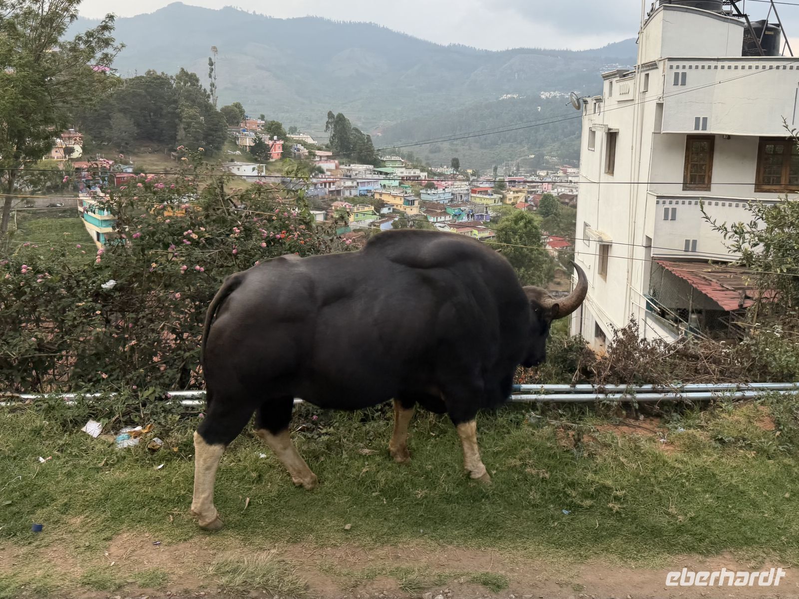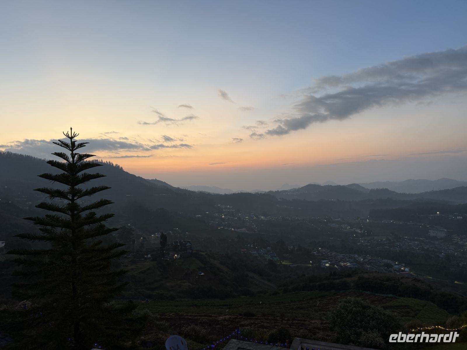 275 km ist die Tagesstrecke nach Ooty heute lang. 7 Stunden wird es wohl dauern. Uns wird noch einmal bewusst, als wir über viele Brücken Kochi verlassen, wie zerklüftet die Hafenregion ist. Bhawani erzählt uns, wie der indische Verkehr rollt und welche Regeln es eigentlich gibt. Prompt wird unser Bus von der Polizei angehalten. Der Fahrer wird kontrolliert. Es geht ohne Beanstandung weiter. Wir sehen, viele Baustellen im Land rund um den Straßenbau. Hier kann man den Aufschwung in Indien deutlicher nicht merken. Nach kurzen Pausen unterwegs, geht es endlich in die Nilgiri Berge. Wir sind erstaunt, dass Plastikflaschen verboten sind. Alle unsere Vorräte werden unsichtbar, da die Kontrolleure schauen. Teeplantagen gibt es auch hier an den Hängen. Die Gegend ist für ihre Schokolade bekannt. Bei einer Pause kaufe ich gleich mal eine Kostprobe für alle. Es wird bereits dunkel, als wir Ooty erreichen. Die Teeproduktion wollen wir aber trotzdem noch sehen. Über schmale Gerüste werden wir zu den einzelnen Herstellungsprozessen geführt. Bhawani erklärt die Schritte bis zur fertigen Tasse Tee. Nah klar kaufen wir für daheim Marsalla Chai oder White Tips. Das La Montana Hotel liegt gediegen an einem Hang mit einer großartigen Aussicht auf das Tal und die Stadt Ooty. Wir sind hungrig und marschieren auch zügig nach dem Check-in zum Restaurant. Hier gibt es keine alkoholischen Getränke, denn dafür benötigen Restaurants in Indien eine Lizenz. Müde von der langen Fahrt fallen wir auch bald schon in unsere Betten.
