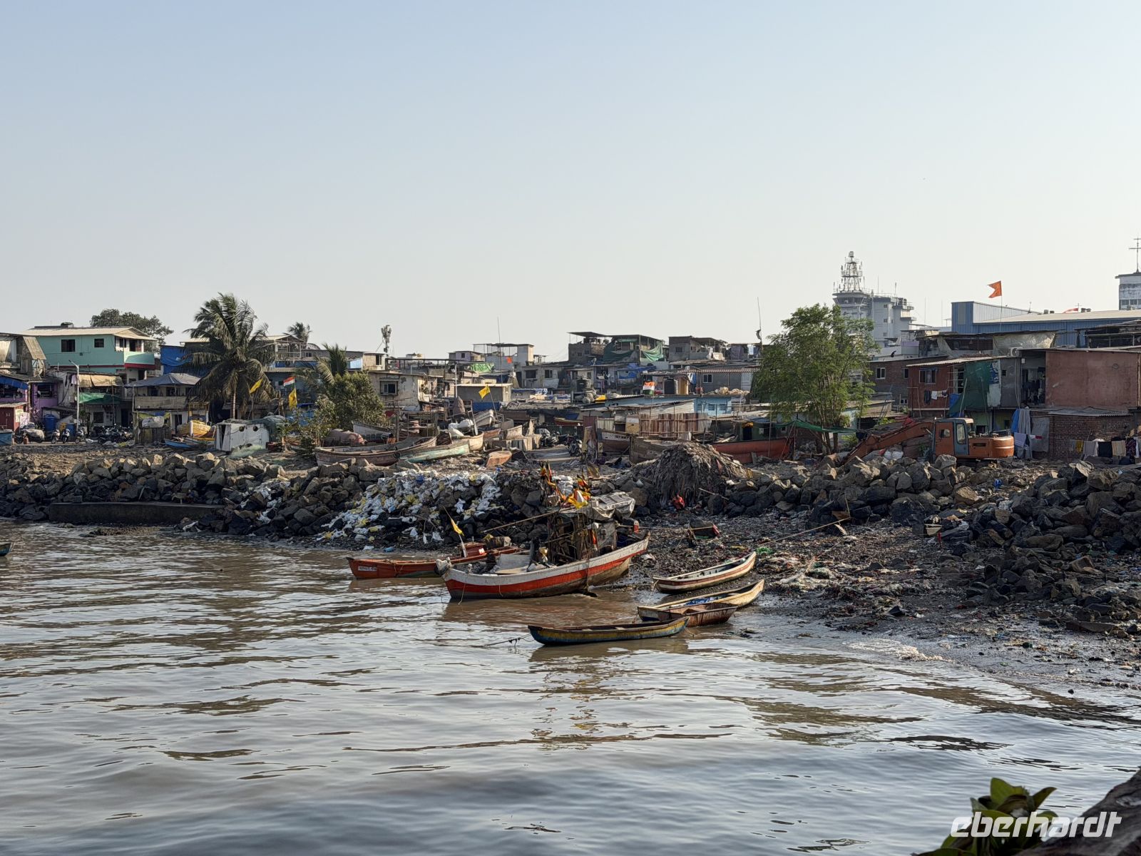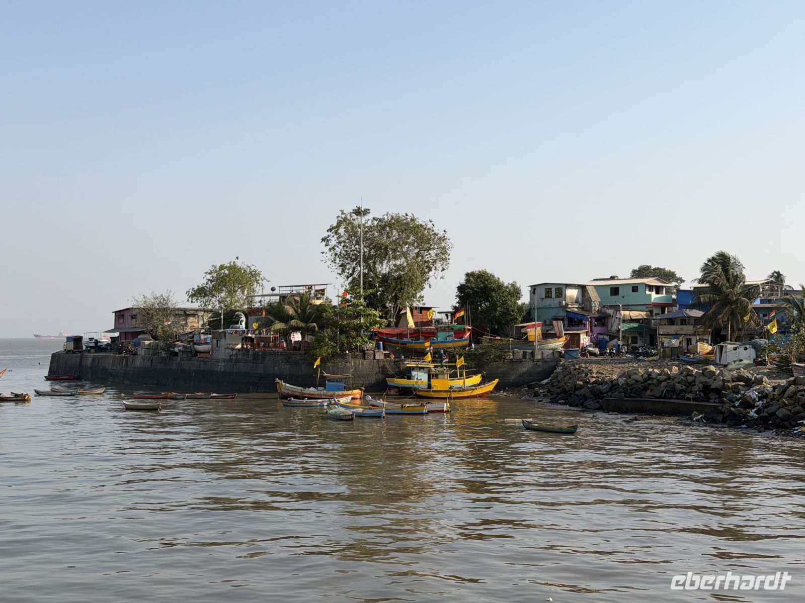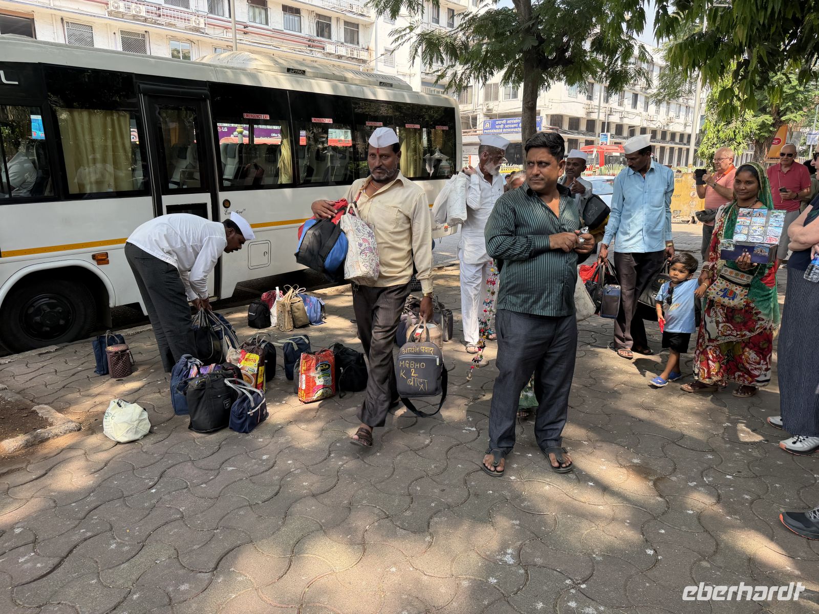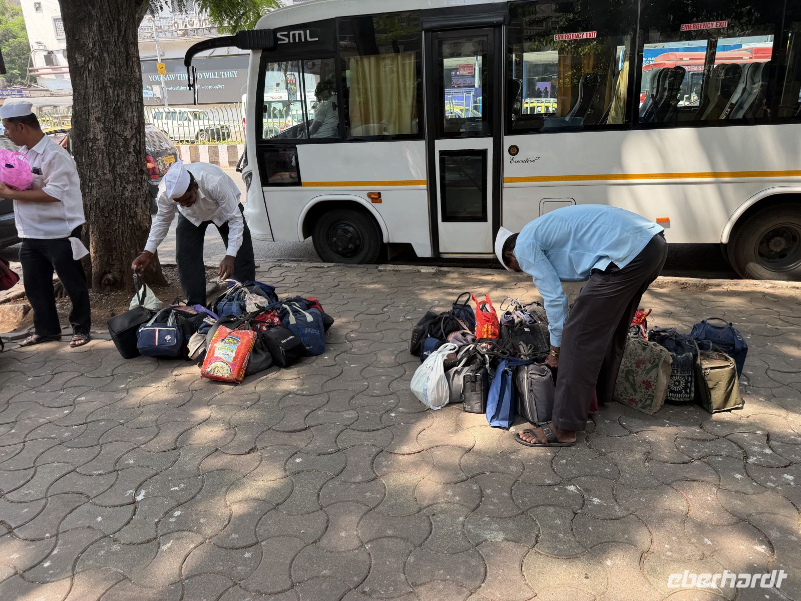 Unsere letzte Etappe steht an. Die Verabschiedung vom Busteam am Flughafen ist kurz und knapp. Die Sicherheitsvorkehrungen im Flughafen sind streng und dauern länger als gedacht, so dass wir direkt in den Flieger steigen. Zwei Stunden später sind wir bereits in Mumbai und das neue Busfahrerteam bringt uns gekoppelt mit einer kleinen Stadtrundfahrt zum Hotel. Wir beziehen unsere Zimmer. Als die Hitze ein wenig nachlässt, laufen wir mit Bhawani am Fischerhafen entlang zum Gateway of India. Je näher wir kommen, desto mehr Menschen drängeln sich vor und auf dem Platz zum Gateway. Wir hören die Geschichten zum Taj Mahal Hotel und Tower von Bhawani. Auch die Geschichte zum monomentalen Torbogen, erbaut von dem Briten 1924 ist sehr interessant. Gut, dass die Gruppe so übersichtlich ist, und wir schaffen es zusammen den Platz wieder zu verlassen. Überwältigt von den Massen freuen wir uns im Hotel wieder Ruhe zu finden und genießen das Buffet im Stadthotel.