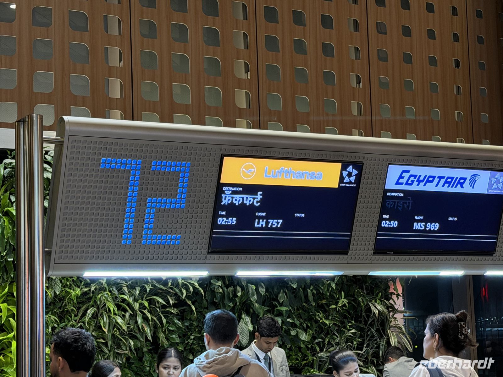 Die Lufthansa fliegt uns von unseren Heimatflughäfen über Frankfurt nach Chennai. Die Mini-Gruppe trifft sich zum ersten Mal im Frankfurter Flughafen mit der Reisebegleitung, Sabine. Wir alle sind ganz aufgeregt und freuen uns auf die bevorstehenden Erlebnisse. Gute 9 Stunden geht es non-stop nach Chennai, wo wir gegen Mitternacht landen.