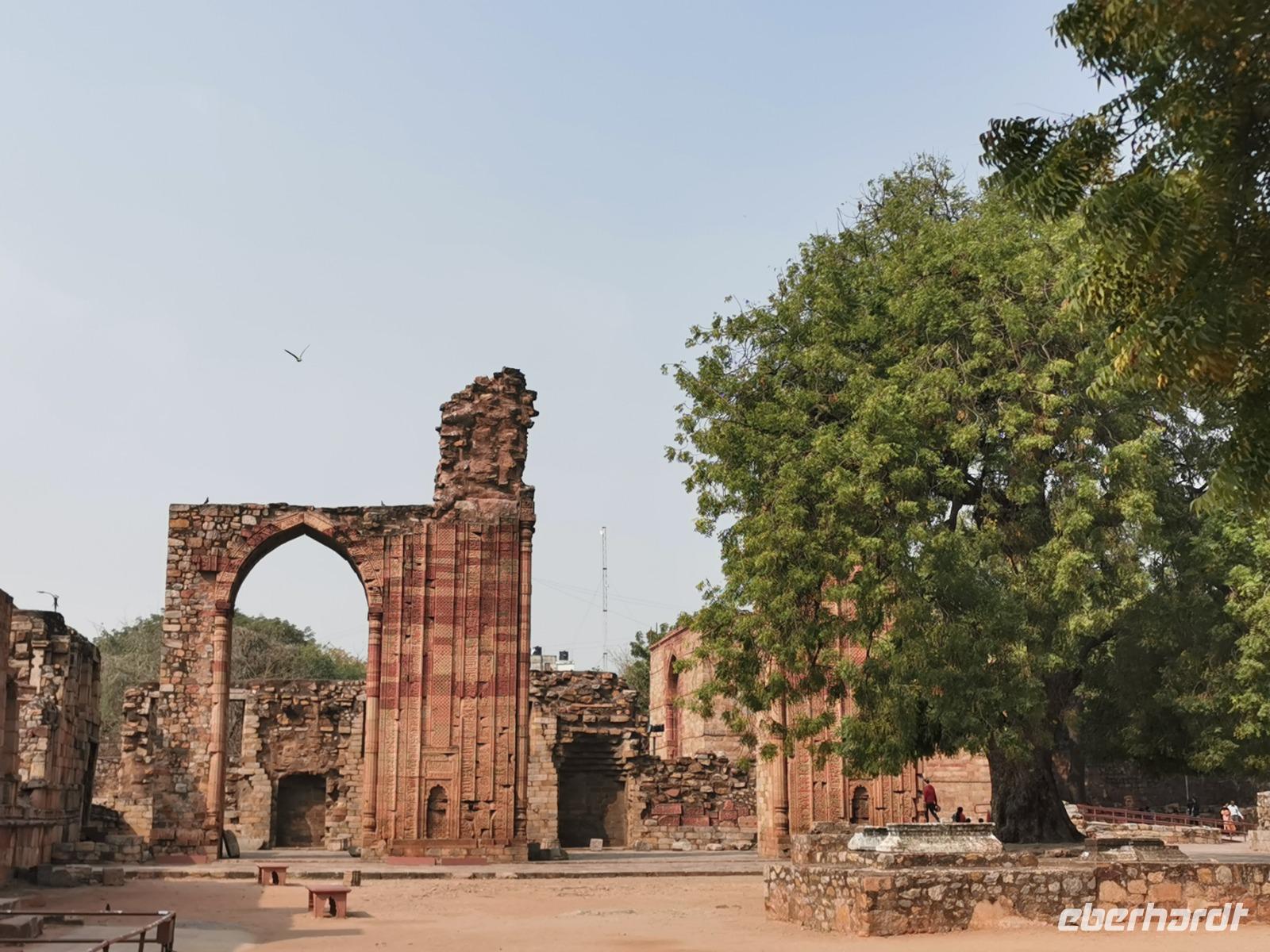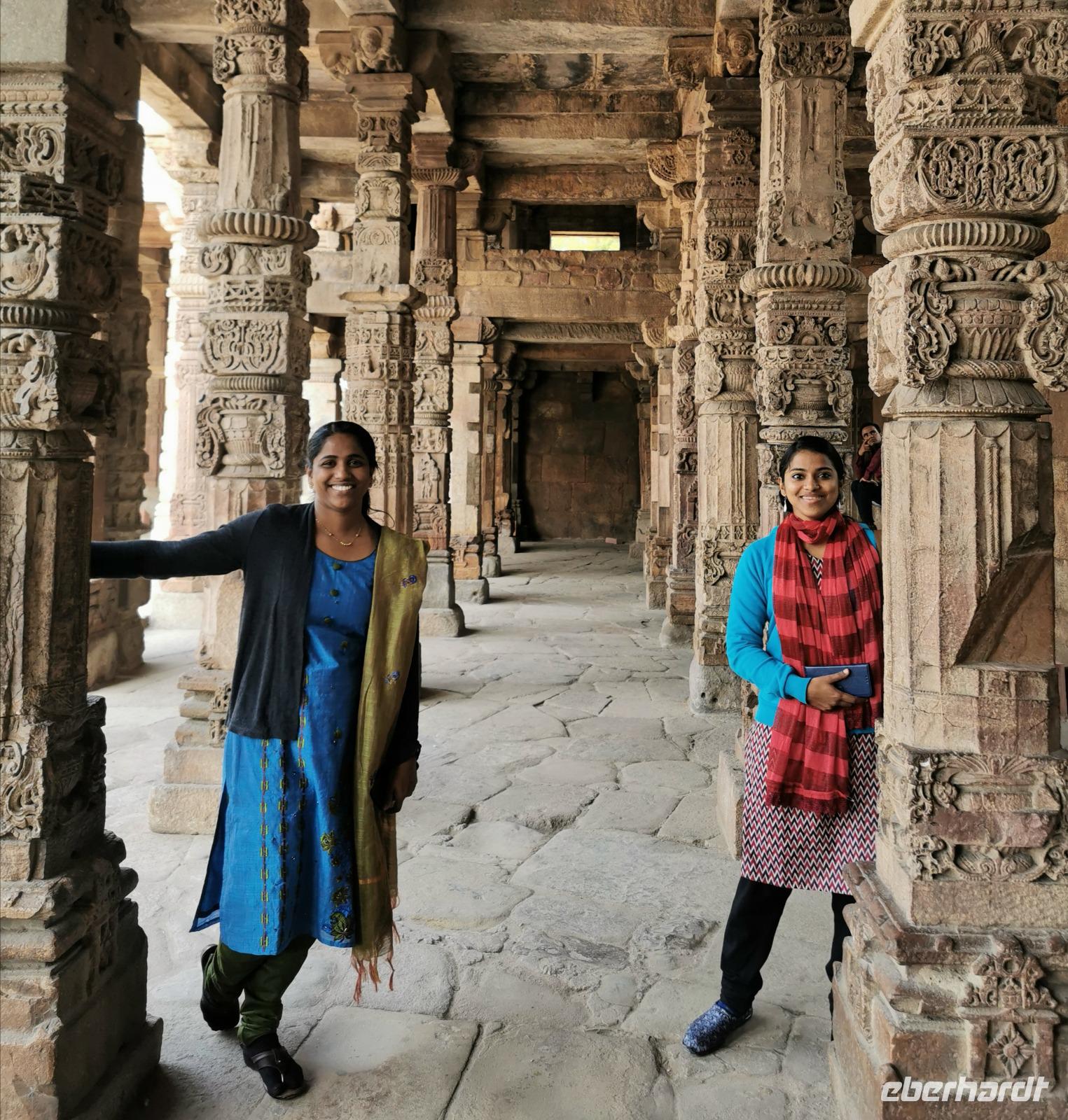 Unsere ersten Eindrücke sammeln wir heute am Qutub Minar, einem Sieges- und Wachturm mitten in Delhi. Dieses Bauwerk ist ein Meisterwerk der indo-islamischen Architektur und etwa im 13. Jahrhundert entstanden. Der Turm zählt seit 1993 zum Weltkulturerbe der UNESCO. Seinen Namen hat er von seinem Erbauer: Qutb-ud-Din-Aibak, der ihn nach dem Sieg der Moslems über die Hindus im Norden Indiens errichten ließ.