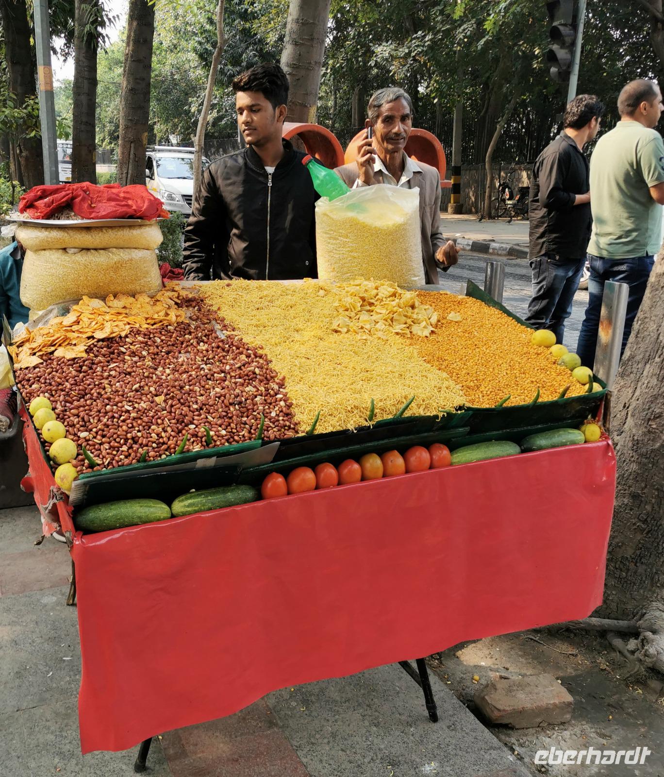 Ein toller Nebeneffekt sind die handzahmen Streifenhörnchen, man nimmt ein paar Kekskrümel in die Hand und schon kommen die Hörnchen angelaufen und fressen aus unseren Händen. Das müssen wir natürlich fotografieren. Zum Mittag laben wir uns an Samosas (mit Gemüse gefüllten Teigtaschen) und Masalachai (indischem Gewürztee).