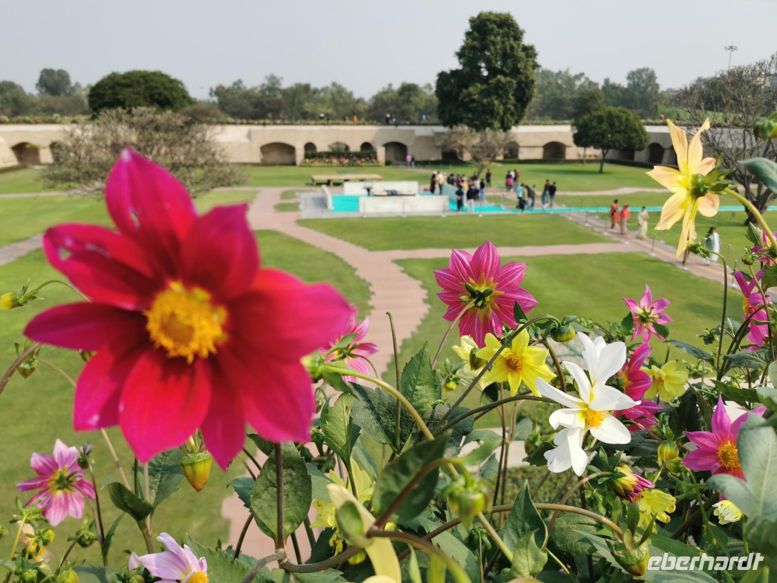 Mahatma Gandhi, der Mann, der viel dazu beigetragen hat, daß Indien am 17. August 1947 von Großbritannien unabhängig wurde, ist nach seiner Ermordung in Delhi verbrannt worden. Diese Zeremonie haben damals hunderttausende Inder begleitet, und am Memorial spürt man heute noch den großen Respekt, der diesem Mann entgegen gebracht wurde. Wir umschreiten den Verbrennungsplatz andächtig und bewundern die schönen Bepflanzungen rund um die Anlage.