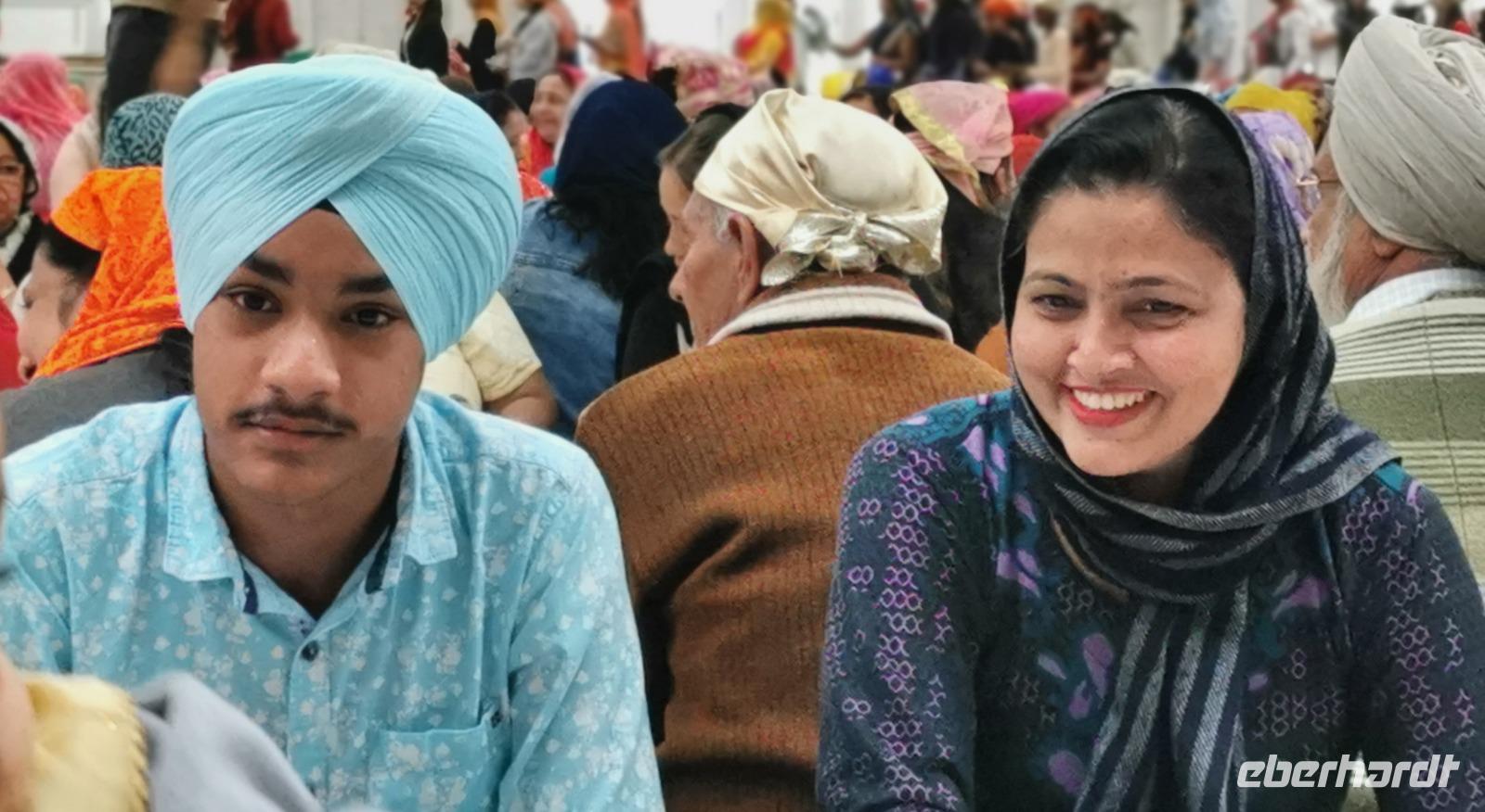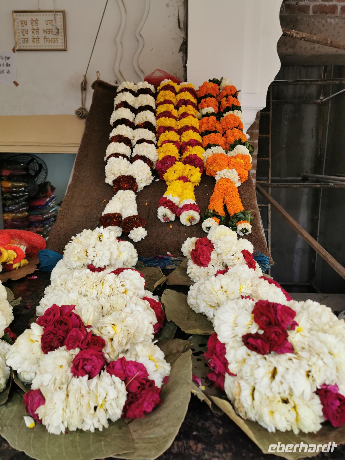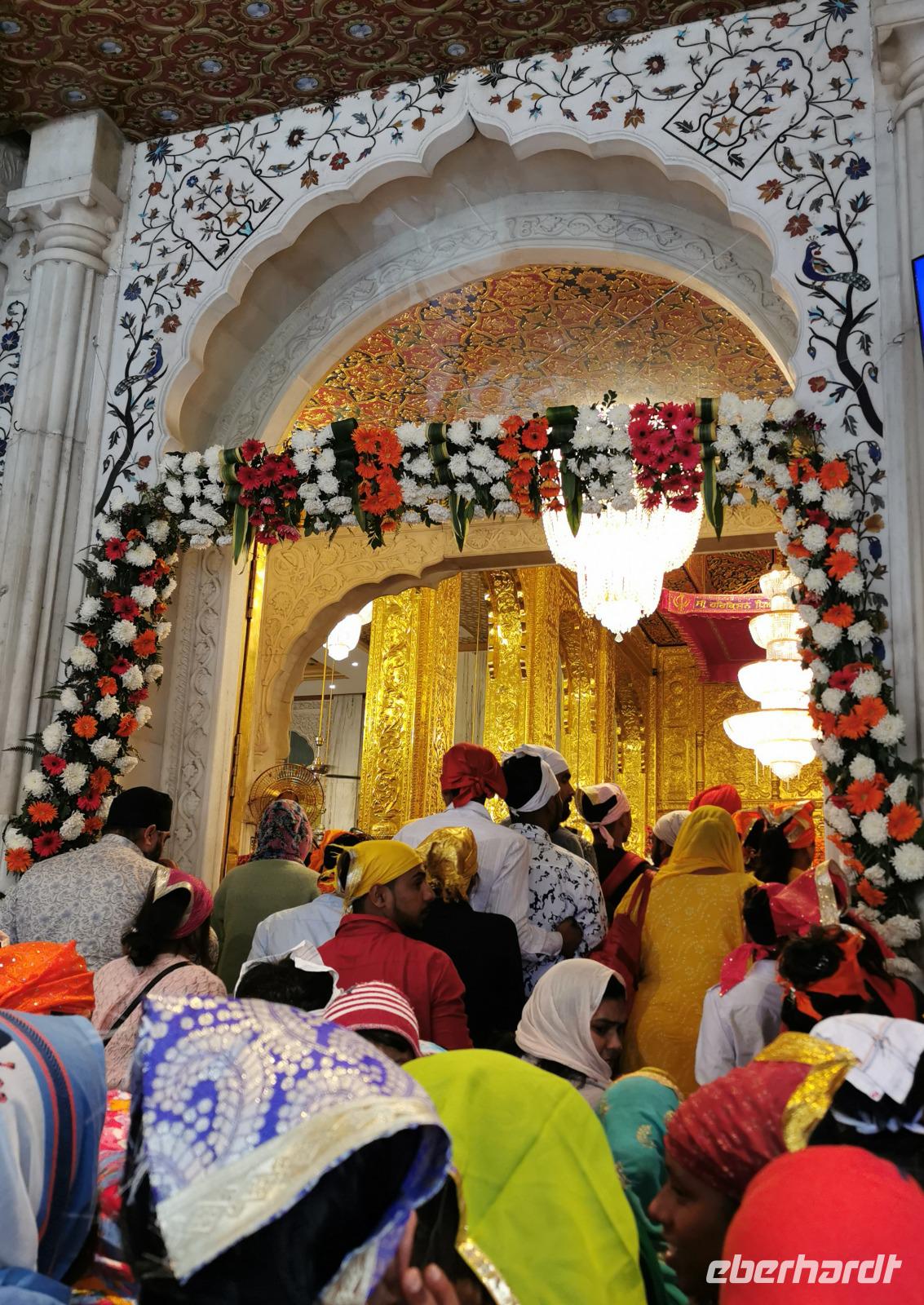 Wir kommen zur richtigen Zeit im Tempel an, am Sonntag essen alle Sikhs hier gemeinsam und wir dürfen zusehen, wie in riesigen Pfannen mit langen Metallstangen Essen für derart viele Gläubige zubereitet wird. Brot wird wie am Fließband gebacken und wir schauen gespannt den imposanten Erscheinungen mit ihren bunten Turbanen beim gemeinsamen Mahl zu. Und wieder werden wir überall freundlich empfangen, alle lächeln uns an und präsentieren uns ihre Kinder. Mit diesen schönen Eindrücken geht unser erster Tag auch schon zu Ende, morgen werden wir die Hauptstadt verlassen und nach Jaipur fahren ...