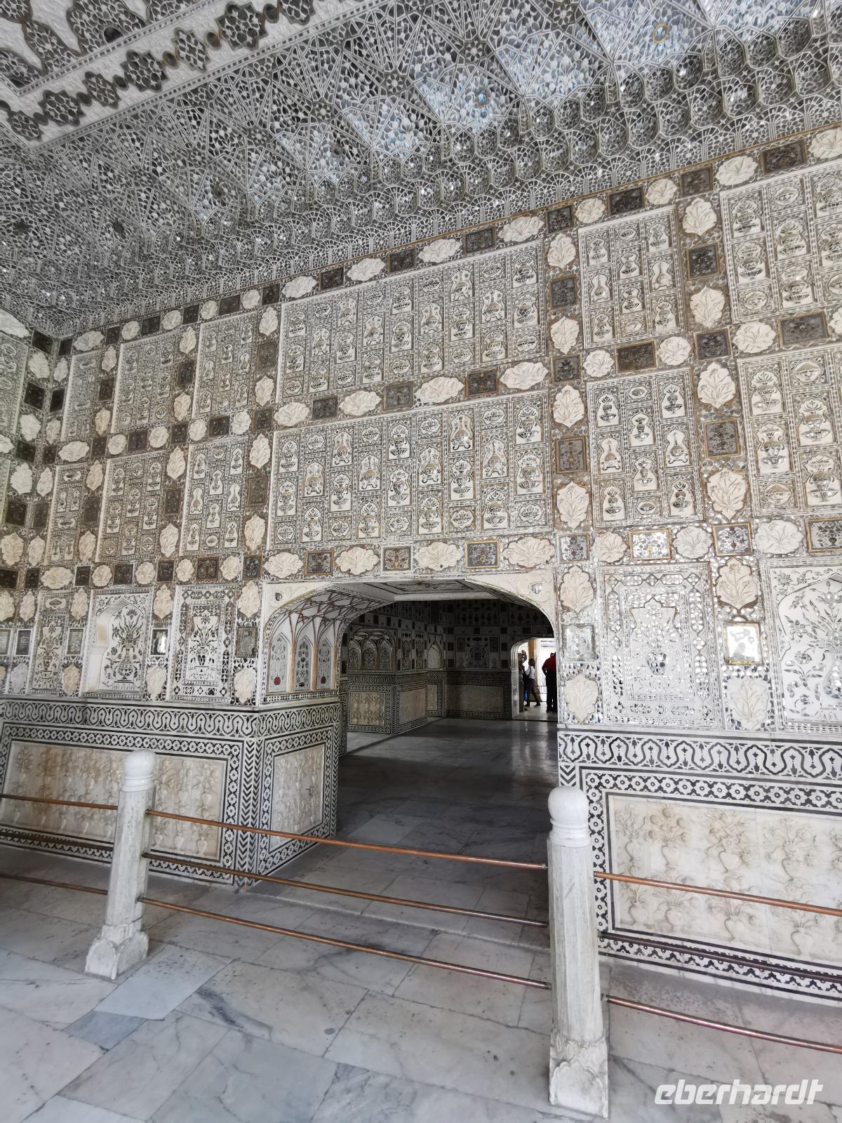 Das Amber Fort wurde von Raja Man Singh I. 1590 begonnen und später von seinem Enkel weiter ausgebaut. Zu dieser Zeit war die Festung die Hauptstadt der Kachwaha-Dynastie. Der eindeutige Besuchermagnet ist natürlich der Spiegelsaal mit einer Vielzahl von kleinen Spiegeln, die vom Boden bis über die Decke eine ganze Halle überziehen. Sehr beeindruckend.