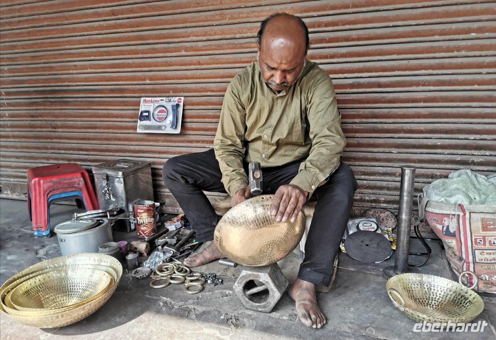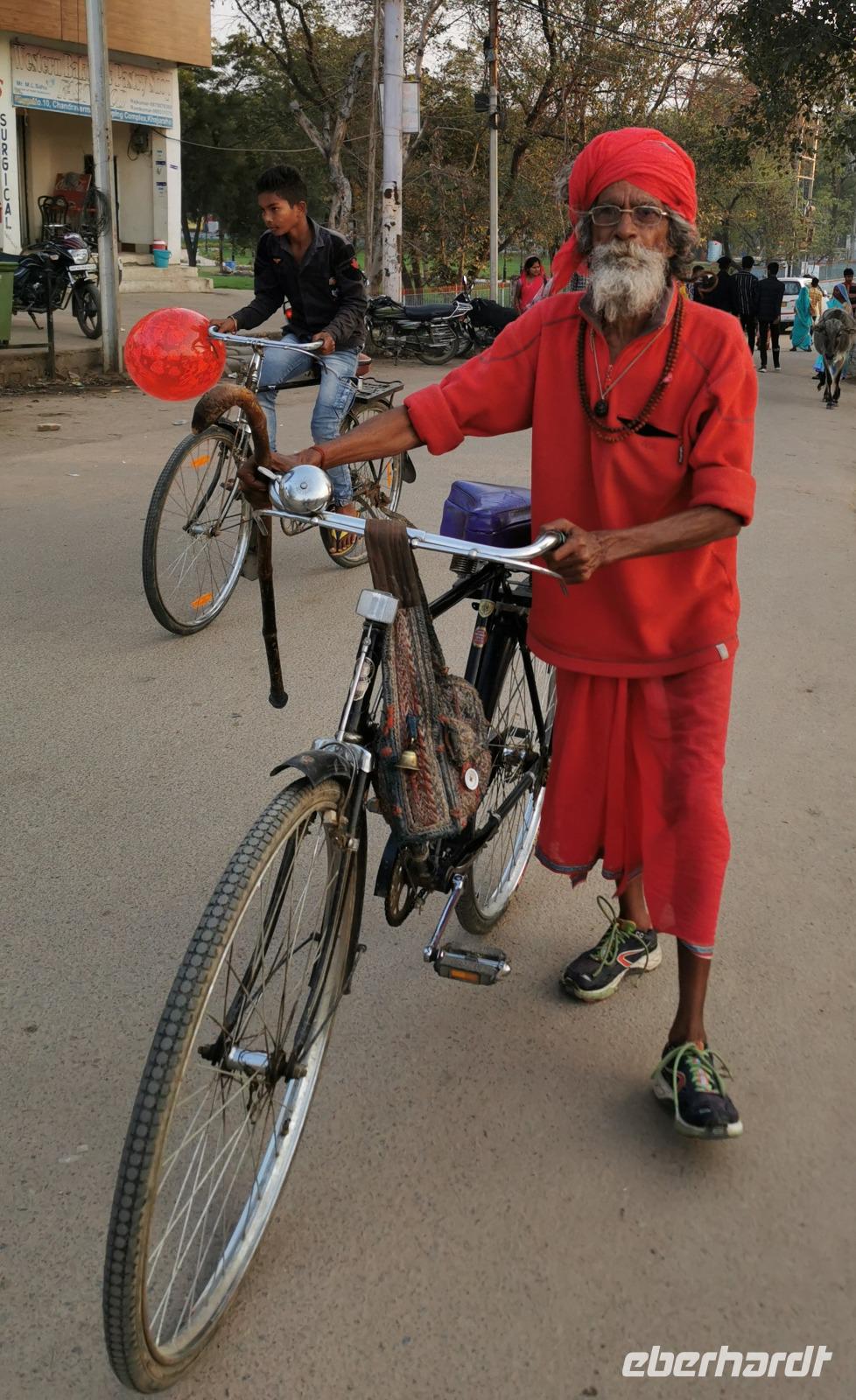 Nach dieser Besichtigung stürzen wir uns wieder ins Getümmel, diesmal im wahrsten Sinne des Wortes: Simone spendiert eine Fahrt durch die Altstadt mit der Fahrradrikscha, einem Gefährt, welches in Indien immer seltener wird. So werden wir auf drei Rädern durch enge Gassen mit allerlei Krämerlädchen geradelt, die wirr durcheinander hängenden Stromleitungen lassen so manchem Gast die Haare zu Berge stehen. Es hupt laut genau neben uns und die Schlaglöcher der Straße lassen uns auf unseren Sitzen nach oben schnellen. Aber ein Erlebnis ist es allemal.