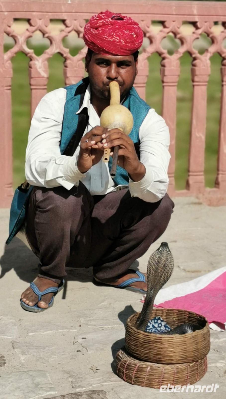 Heute können wir uns den ganzen Tag der Hauptstadt Rajasthans widmen und wir beginnen mit der Fahrt zum Amber Fort. Schon beim Fotostop unterhalb dieser riesigen Anlage sehen wir Affen, buntes Treiben auf den Straßen, Schlangenbeschwörer, fliegende Händler und alles wird vom laut hupenden vorbeirauschenden Verkehrsstrom begleitet. Ein Angriff auf all unsere Sinne :-)