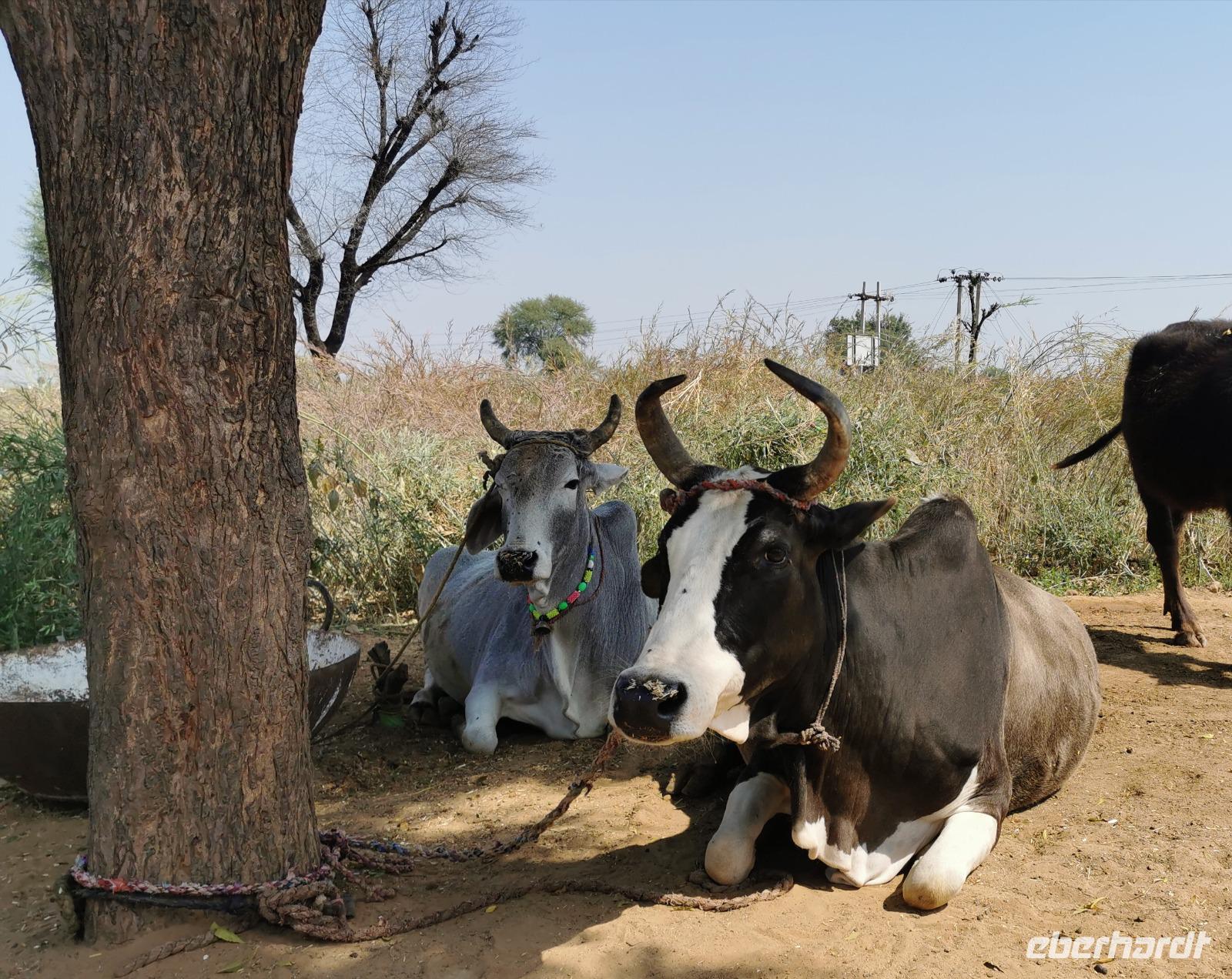 Wir sehen immer wieder, daß die landwirtschaftlichen Flächen direkt an die Nationalparks heran reichen und auch unzählige Kühe dort weiden. Es wundert uns und wir fragen, ob die Tiger das nicht als leichte Beutequelle nutzen. Die Parkranger erklären uns, daß jeder Bauer, dem eine Kuh durch einen Tigerangriff abhanden kommt, vom Staat eine Ausgleichszahlung bekommt, damit er das Tier ersetzen kann. So schützt man den Park vor Wilderei.